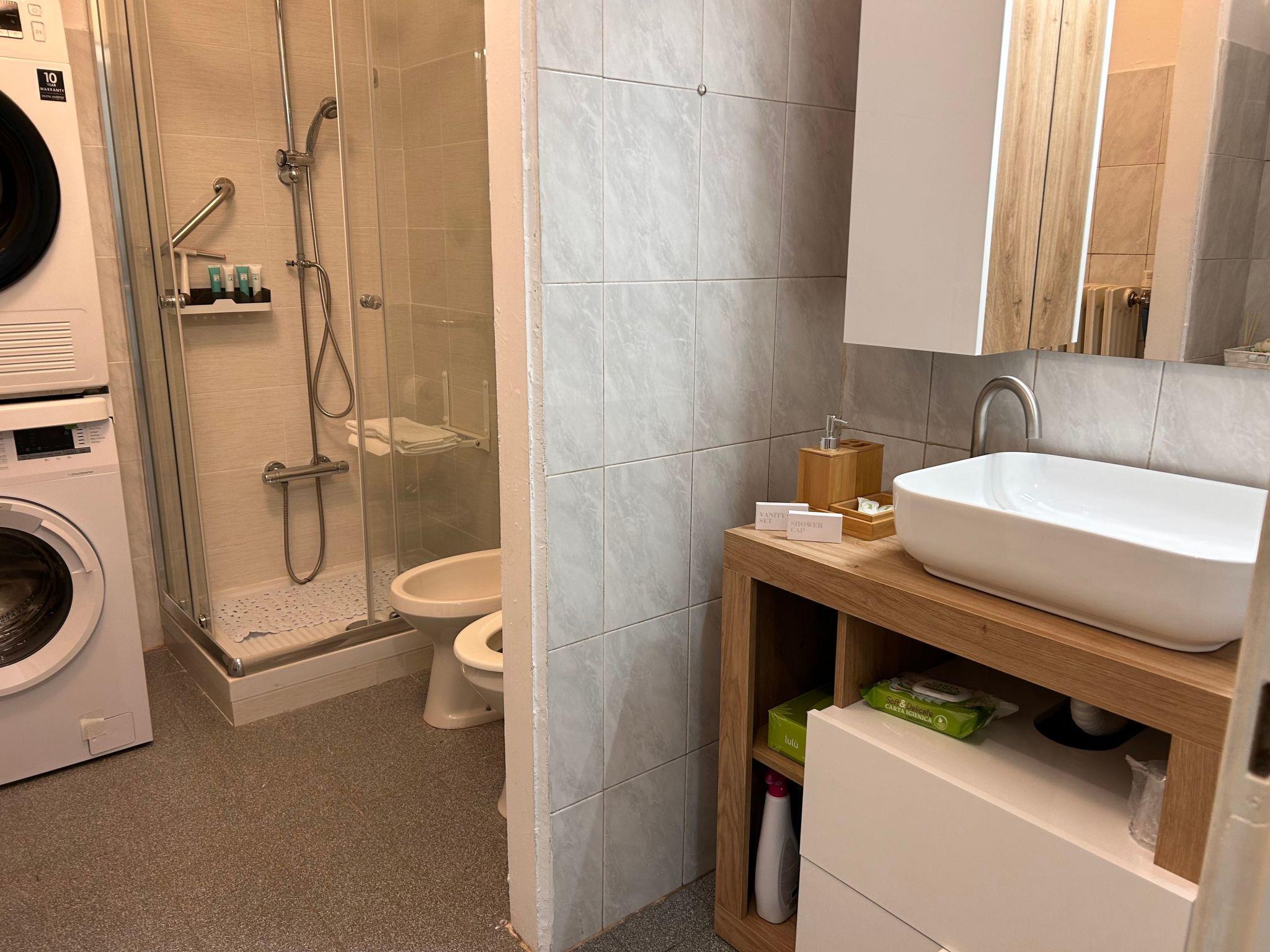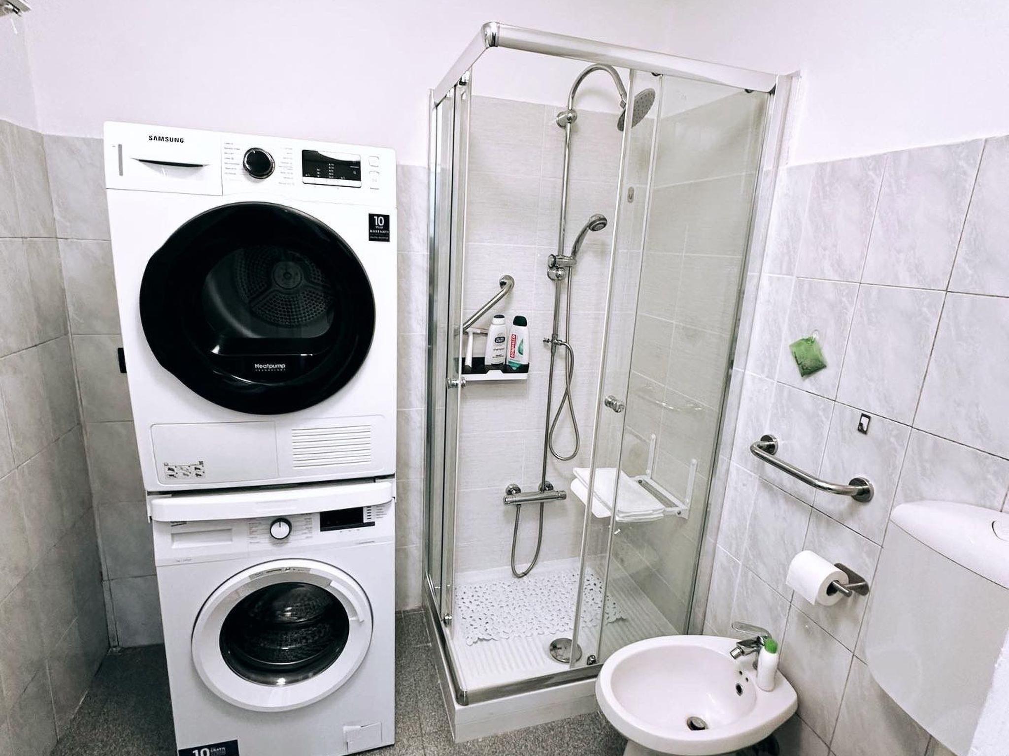 The interior of the flat is organised to offer practicality and comfort. In addition to a cosy bedroom, it has a spacious entrance hall with a double sofa bed, providing adequate space for all guests. The mezzanine with an armchair bed adds a touch of originality and additional space. Practicality is ensured by the presence of a fully equipped kitchen, complete with dishwasher, coffee machine with pods and an electric kettle for water, ideal for starting your day with a home-made breakfast. The washing machine and tumble dryer for your exclusive use make your stay even more comfortable, allowing you to better manage your laundry.