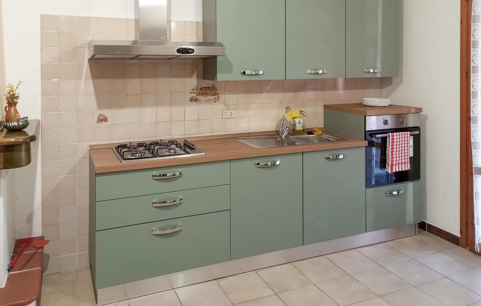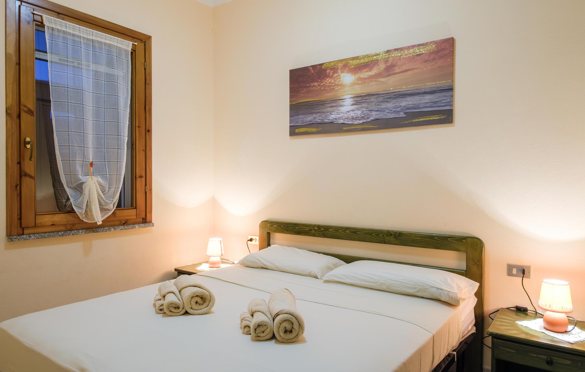 Tilbring en avslappende tid i dette feriehuset, som ønsker gjestene velkommen i en idyllisk beliggenhet bare noen få skritt fra stranden. Det består av to leiligheter som er forbundet med en utvendig trapp, og er ideelt for flere familier eller en vennegjeng som ønsker å bo helt separat og uavhengig av hverandre, men likevel nyte en ferie sammen. De tiltalende fargene og den hjemmekoselige innredningen gjør at du vil føle deg som hjemme fra første dag. Ved det lange spisebordet kan dere sammen legge planer for de kommende dagene over et måltid.