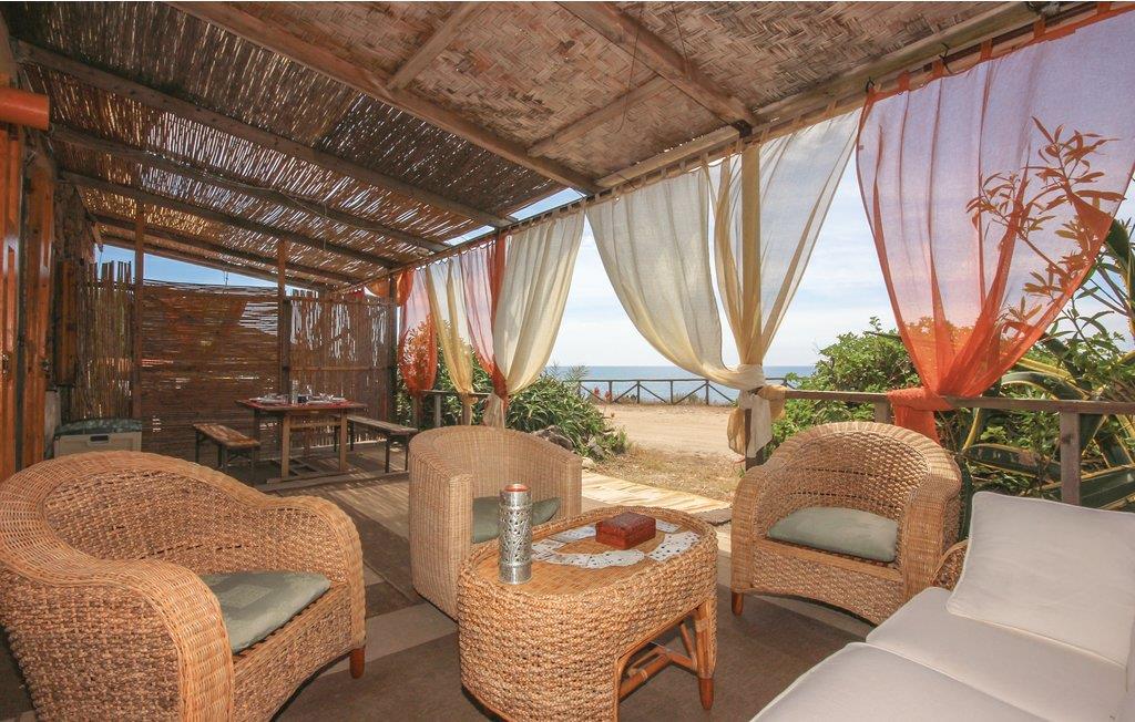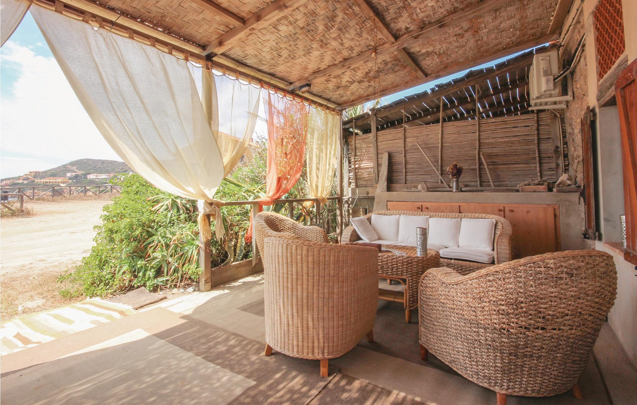 Midt i uberørt natur ligger dette feriehuset, et tidligere tunfiskested fra 1500-tallet, bare 16 meter fra stranden. Det ligger bare 16 meter fra stranden. På 2 km kan du nå Torre dei Corsari, en livlig turistlandsby med stranden Pistis, hvor du kan finne de høyeste sanddynene i Europa. Den rike middelhavsvegetasjonen fyller luften med karakteristiske dufter. Huset har en stue med vedovn og et beboelig kjøkken med steinvask. Ned noen få trinn kommer du til det første soverommet med dobbeltseng og bad med åpen dusj. Fra stuen fører en tretrapp til en høyere etasje med et annet soverom med dobbeltseng og et bad med halvt badekar og inn i et mindre soverom med lite bad med åpen dusj. Soverommene har klimaanlegg, og stuen med to åpne sider er alltid behagelig kjølig. Foran huset er et privat område med bord og stoler, lenestoler og sofaer, bak huset er en asfaltert terrasse med trerekkverk. Feriehuset grenser til ISD844.