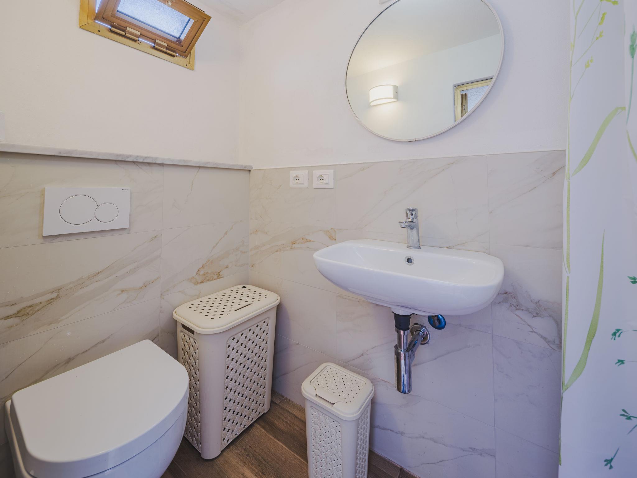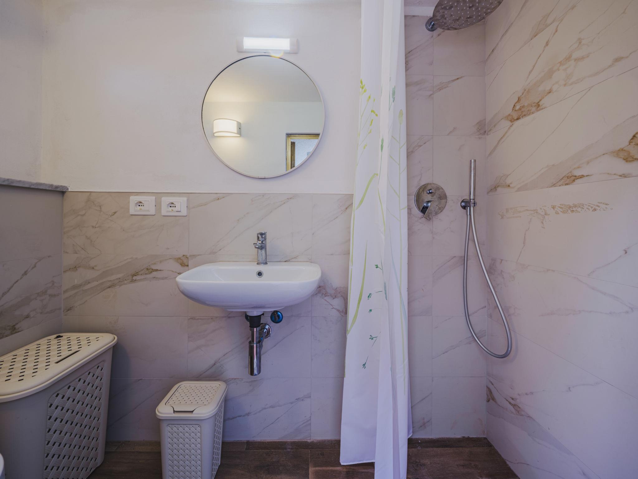 "Venezia", 4-room semi-detached house 96 m2 on 2 levels, on the ground floor. Spacious and bright, very practical and comfortable furnishings: living/dining room with TV (flat screen), air conditioning. Exit to the garden. Kitchen-/living room (oven, dishwasher, Gas stove, 4 gas rings, toaster, kettle, microwave, freezer). Exit to the garden. Shower/bidet/WC. Gas heating, air-conditioning. Upper floor: 1 room with 1 bed, 1 double bed and air conditioning. 1 room with 1 french bed. 1 room with 2 beds. Shower/bidet/WC. Heating available only from 01.11. to 07.04. Small patio, small garden. Terrace furniture, sitting area, box-room. Distant view of the mountains. Facilities: washing machine, iron, hair dryer. Internet (WiFi, free). Please note: suitable for families. Maximum 1 pet/ dog allowed. TV only IT. Please note: the bathroom with shower on the ground floor is located in a separate room from the house, in the private patio. IT046033C2DFMZLBVN