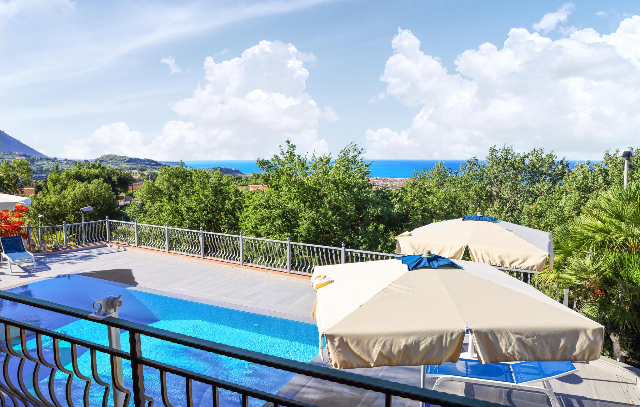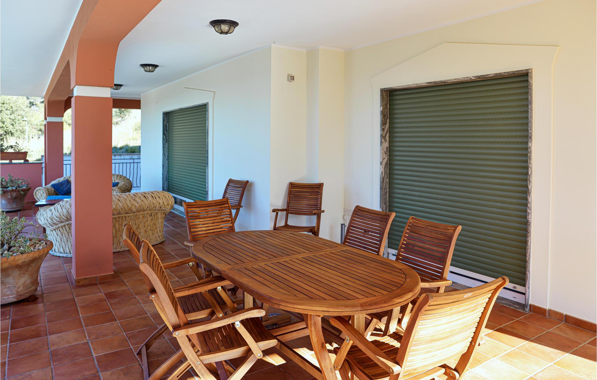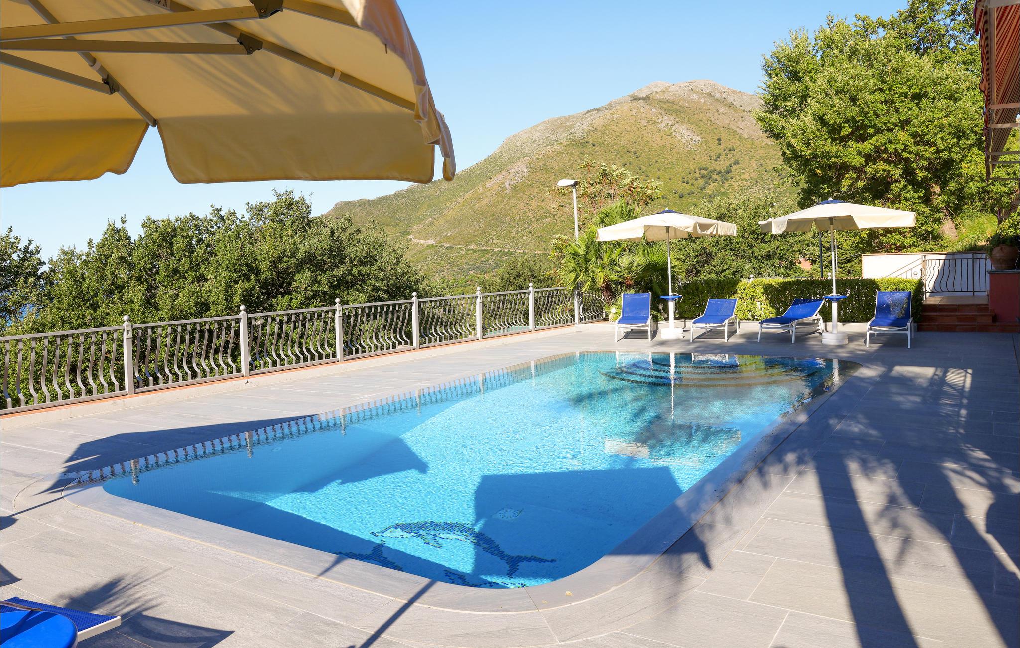 Vakkert feriehus med basseng, noen få kilometer fra Tortora Marina i en dominerende panoramaposisjon (ca. 130 m.o.h.) på en bred kyststripe som strekker seg fra øya Dino i sør til de steinete utpostene på kysten av Maratea i nord. Huset har tre nivåer og består av en romslig stue, kjøkken, fire soverom, fire bad og en stor, delvis overbygd terrasse hvor du kan nyte måltidene dine ute. Fra bassenget og terrassen kan du beundre fargene i den typiske middelhavsskogen. I nærliggende Tortora Marina finner du alle nødvendige tjenester, barer, restauranter og den lange sandstranden som strekker seg 10 km til øya Dino. Denne øya er spesielt sjarmerende, en ekte perle på den kalabriske kysten, hvor det er fantastiske havgrotter som kan besøkes av små båter. Det er 5 km til den steinete kysten av Maratea med idylliske viker og rullesteinstrender.