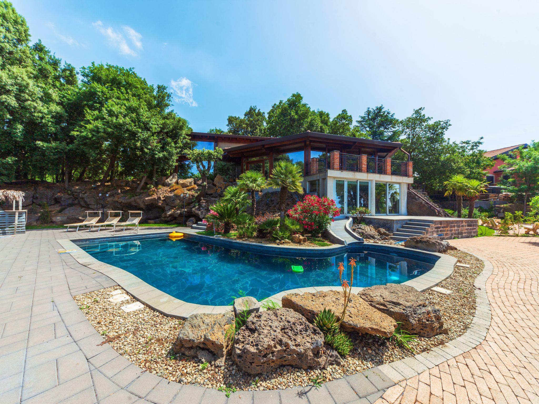 Beautiful house, renovated in 2019, surrounded by a forest of 25,000 sqm but at the same time not isolated and extremely prestigious. The villa has a beautiful pool area with the characteristic lava stone from which a waterfall gushes out. The view of Mount Etna is wonderful. The villa is about 2 kilometres from the centre of Trecastagni, one of the most famous and refined towns in the area.