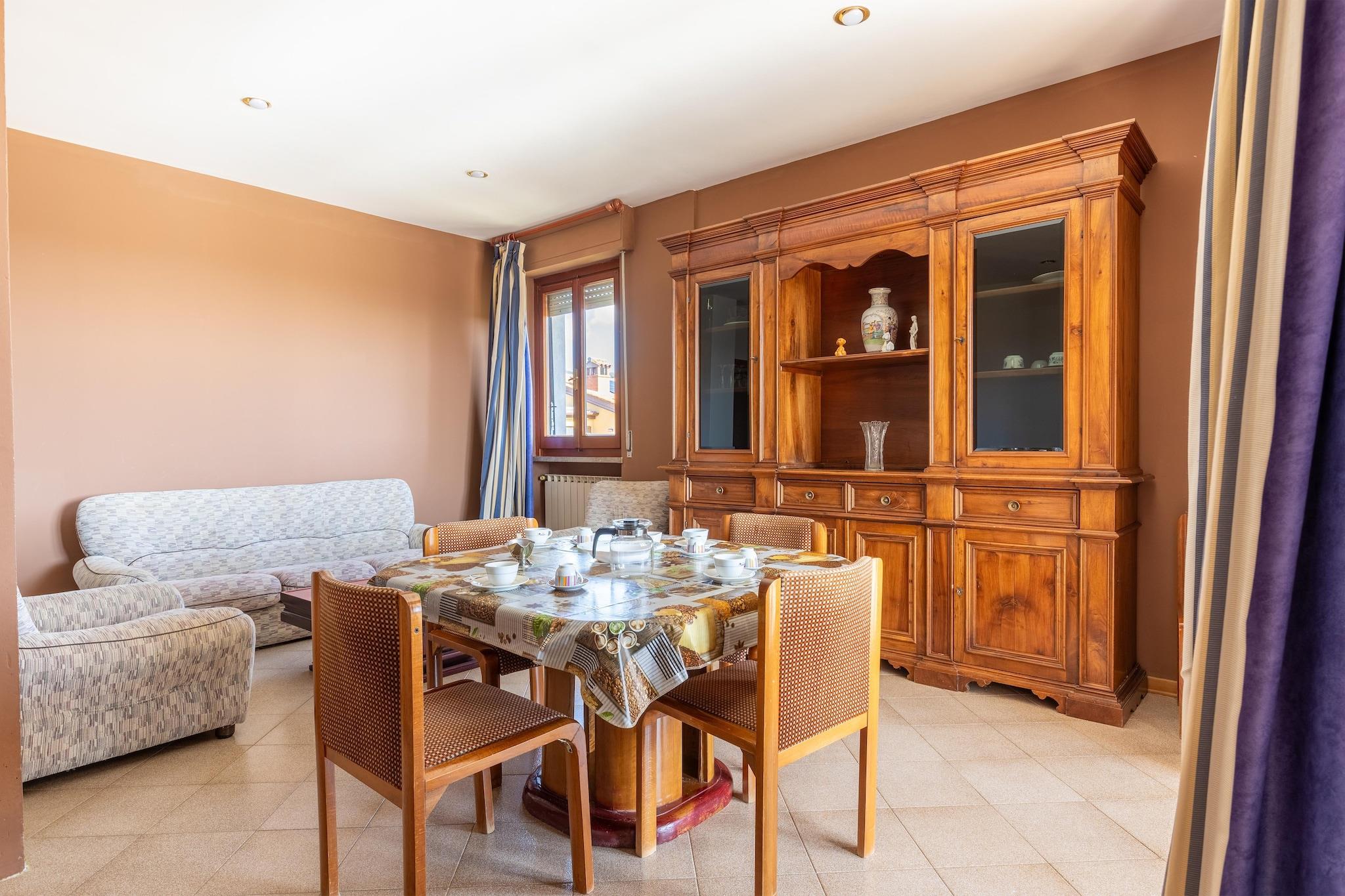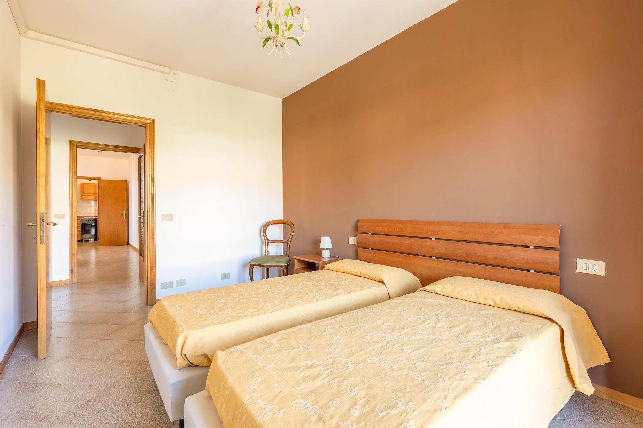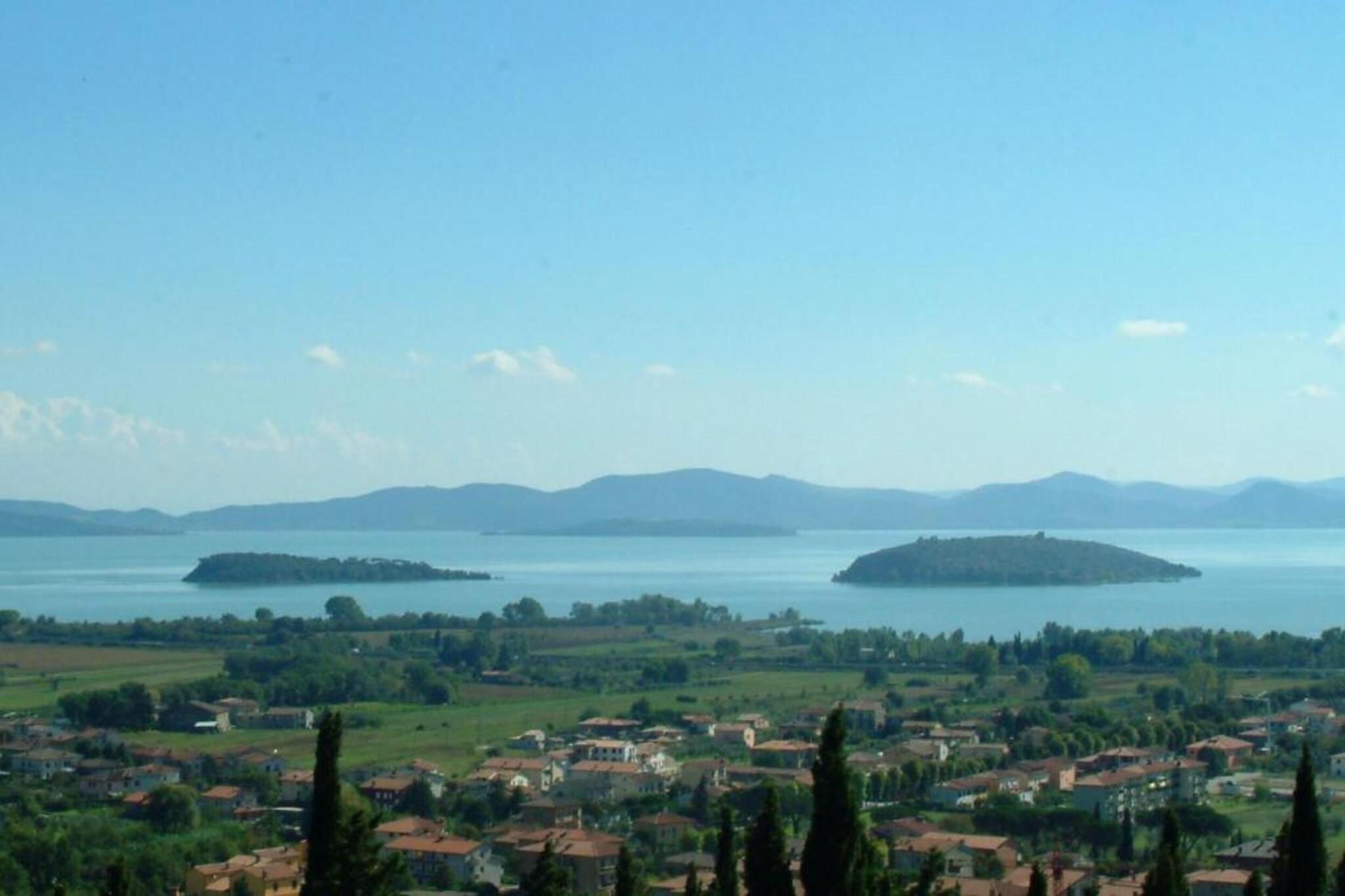 Denne kjæledyrvennlige leiligheten ligger i den sjarmerende byen Tuoro sul Trasimeno, og tilbyr et komfortabelt tilfluktssted for opptil seks gjester. Første etasje har en romslig stue og spisestue med dobbel sovesofa, noe som skaper et avslappende sted å slappe av. Et fullt utstyrt kjøkken – inkludert komfyr, kaffemaskin, stekeovn og kjøleskap med fryser, gir alt som trengs for enkel tilberedning av måltider. To koselige soverom – ett med dobbeltseng og et annet med fleksibelt oppsett av enten en dobbeltseng eller to enkeltsenger, sørger for avslappende netter. Det moderne badet, komplett med dusj, servant, toalett og bidet, legger til bekvemmelighet, mens et separat vaskerom med vaskerom gjør lange opphold sømløse. Gå ut på den private terrassen, perfekt for å nyte frisk luft og naturskjønne omgivelser. Den felles hagen, møblert med uteservering, inviterer gjestene til å sole seg, mens svømmebassenget (åpent mai til september) tilbyr en forfriskende tilflukt. For trening og underholdning inkluderer leiligheten et lekerom og treningsrom, ideelt for å holde seg aktiv. Lago Trasimeno ligger bare 1 km unna, og tilbyr sandstrender og fantastisk utsikt over innsjøen, hvor gjestene kan nyte bading, båtliv og bespisning ved vannet. For eventyrelskere er sykkelutleie tilgjengelig 300 meter unna, og et ridesenter ligger bare 800 meter fra eiendommen. Tennisentusiaster kan benytte seg av nærliggende baner kun 100 meter unna. Lokale smaker er bare en kort spasertur unna, med restauranter kun 300 meter fra leiligheten som serverer autentisk toskansk mat. Gjestene kan også utforske den rike kulturarven til nærliggende destinasjoner som Siena, Assisi, Cortona og Arezzo, hver innen en times kjøring. Enten du nyter fine italienske retter, legger ut på utendørseventyr eller slapper av ved bassenget, er denne leiligheten den perfekte blandingen av fritid og oppdagelse.
