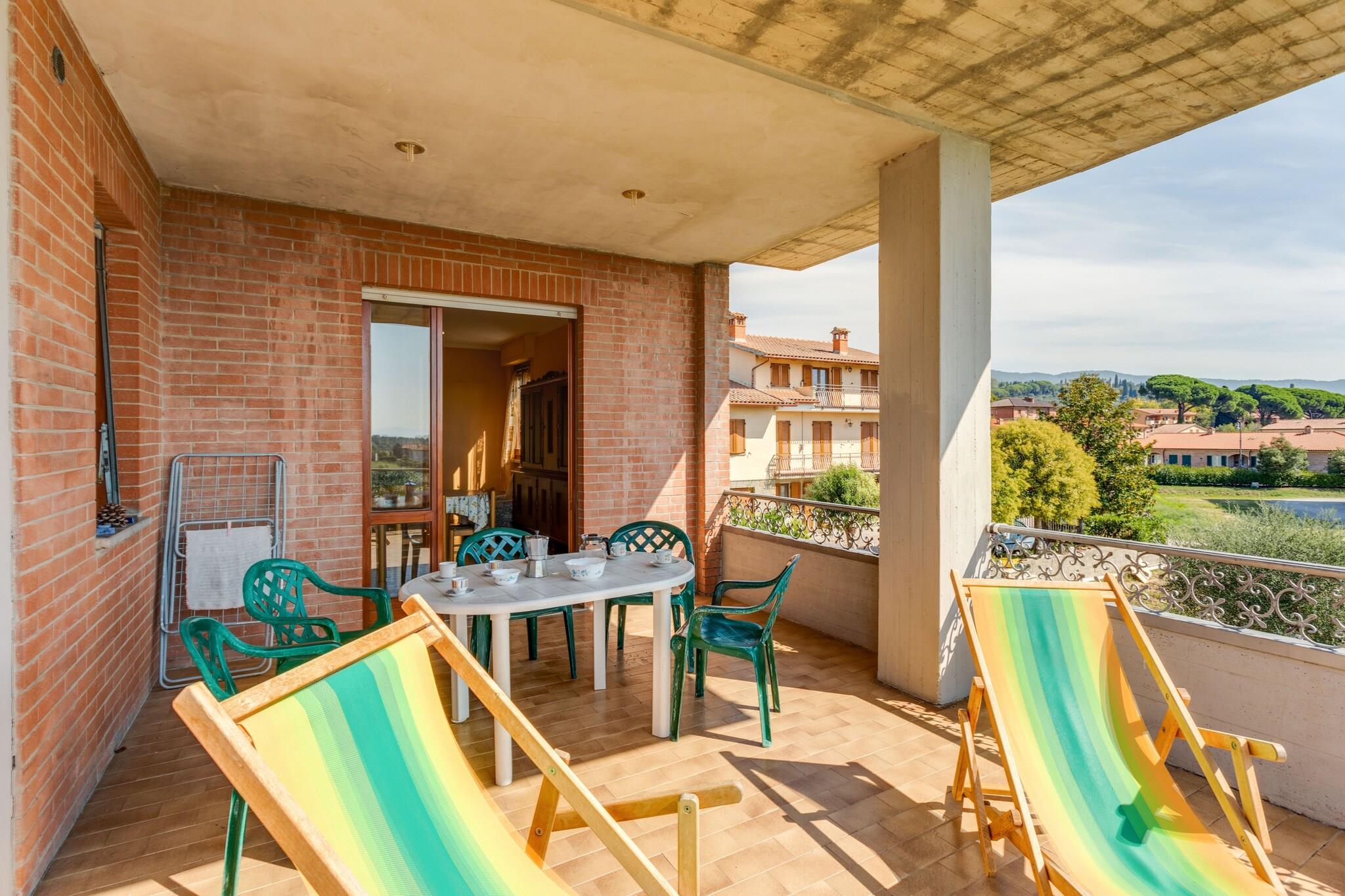 Denne herlige leiligheten ligger i den naturskjønne byen Tuoro sul Trasimeno, og tilbyr en fredelig tilflukt for opptil seks gjester. Kjæledyrvennlig og utstyrt med gratis Wi-Fi, sikrer den et komfortabelt og sammenhengende opphold. Besøkende ligger bare 1 km fra den fengslende bredden av Trasimenosjøen, hvor de kan sole seg i de rolige strendene og de fascinerende solnedgangene. Overnattingsstedet kan skilte med et fullt utstyrt kjøkken med kokeplate, vannkoker, kaffetrakter, stekeovn og kjøleskap med fryser. Den romslige stuen og spisestuen er møblert med to enkeltsenger, TV, spisebord og en koselig sittegruppe. Hovedsoverommet har en koselig dobbeltseng, mens det andre soverommet har to enkeltsenger. Badet er utstyrt med badekar, dusj, servant, toalett og bidet. Ytterligere fasiliteter inkluderer et vaskerom med vaskemaskin, et lekerom, et treningsområde og en privat terrasse. Gjestene kan også nyte den felles hagen med sitteplasser og et svømmebasseng, som er åpent fra mai til september. Tuoro sul Trasimeno er omgitt av det fortryllende landskapet i Toscana, og tilbyr en harmonisk blanding av naturlig skjønnhet og kulturell rikdom. Gjestene kan nyte utsøkt italiensk mat på nærliggende spisesteder som Cortona Bistrot, La Fett"Unta, Trattoria Toscana, Ristorante La Loggetta, Ristorante Il Cacciatore, Trattoria Dardano, Ristorante Ambrosia og Ristorante Tonino. Enten du utforsker historiske landemerker eller nyter lokale smaker, fungerer dette feriehuset som en ideell base for et uforglemmelig toskansk tilfluktssted.
