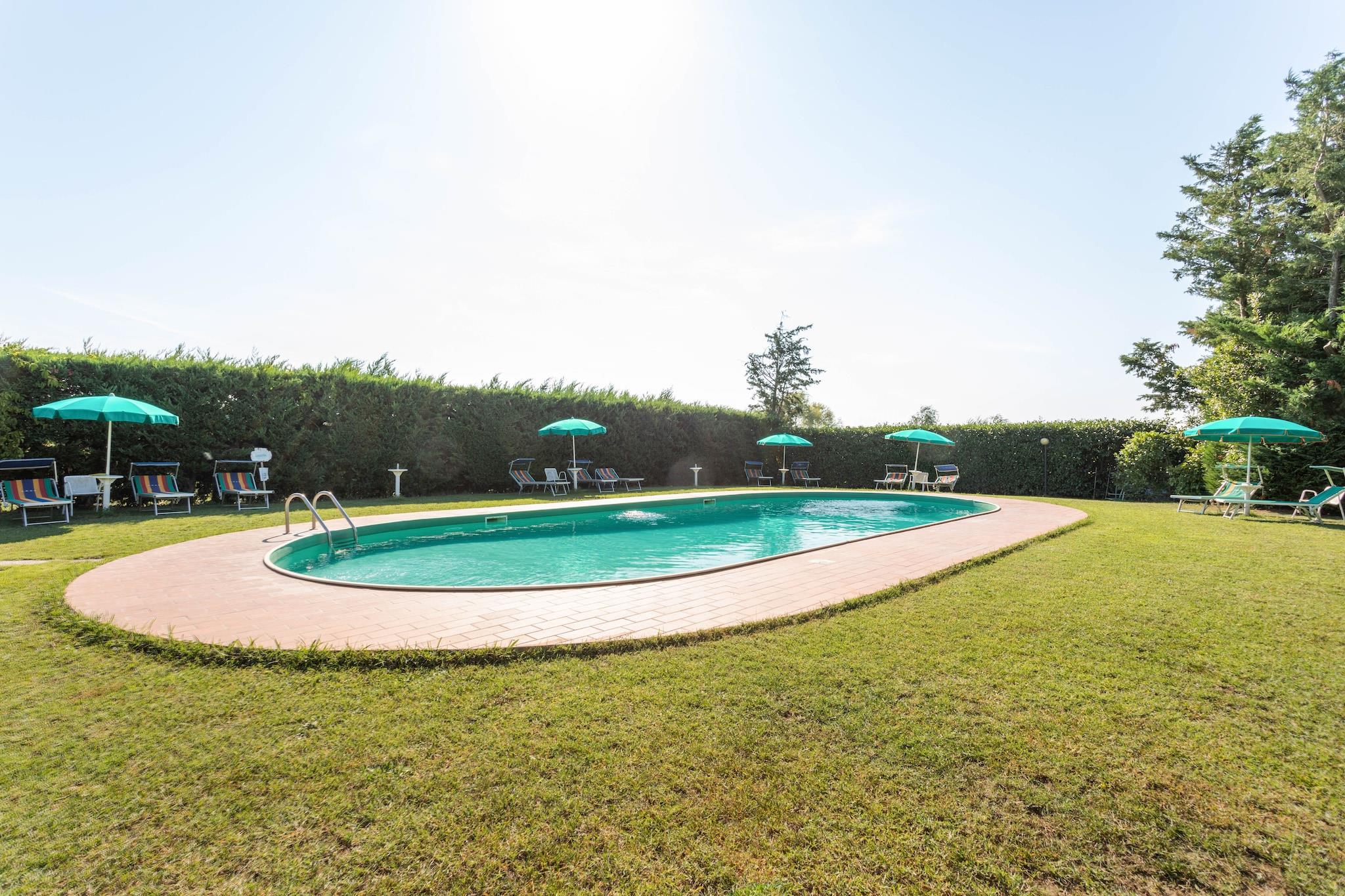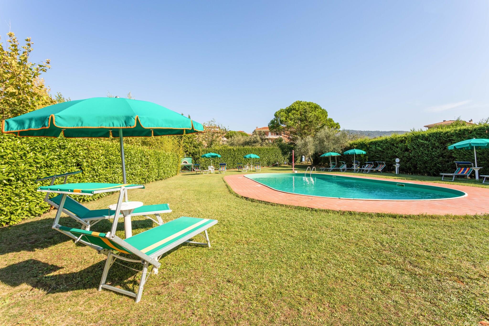Denne sjarmerende leiligheten ligger i den pittoreske landsbyen Tuoro sul Trasimeno, og har plass til seks gjester. Den tilbyr en rolig blanding av komfort og eventyr. Kjæledyrvennlig og med gratis Wi-Fi sikrer den et avslappende opphold. Bare en kilometer unna ligger den fantastiske Lago Trasimeno, hvor gjestene kan slappe av på fredelige kyster og beundre fantastiske solnedganger. Historieelskere vil sette pris på det nærliggende Museo di Annibale, som bringer slaget ved Trasimeno til live, samt den friluftslige skulpturparken Campo del Sole. For et enda dypere dykk i lokal kulturarv venter den middelalderske prakten til Guglielmi slott på Isola Maggiore. Villaen har et fullt utstyrt kjøkken med kokeplate, vannkoker, kaffetrakter, stekeovn og kjøleskap med fryser. Den romslige stuen og spisestuen har en dobbel sovesofa, TV og spisebord. Hovedsoverommet har en koselig dobbeltseng, mens det andre rommet har to komfortable enkeltsenger. Et velutstyrt bad har dusj, vask, toalett og bidet. Ytterligere fasiliteter inkluderer et vaskerom med vaskemaskin, et treningsområde utstyrt med utstyr og et oppholdsrom med bordtennis og fotballspill. Utendørs kan gjestene nyte en privat terrasse, en felles hage møblert for avslapning og tilgang til et sesongbasert basseng (tilgjengelig mai–september). Tuoro sul Trasimeno er omgitt av Toscanas sjarm og lover en idyllisk blanding av naturlig skjønnhet og kulturell rikdom. Prøv utsøkt italiensk mat på nærliggende spisesteder som Cortona Bistrot, La Fett’Unta, Trattoria Toscana, La Loggetta, Il Cacciatore, Trattoria Dardano, Ambrosia og Tonino.