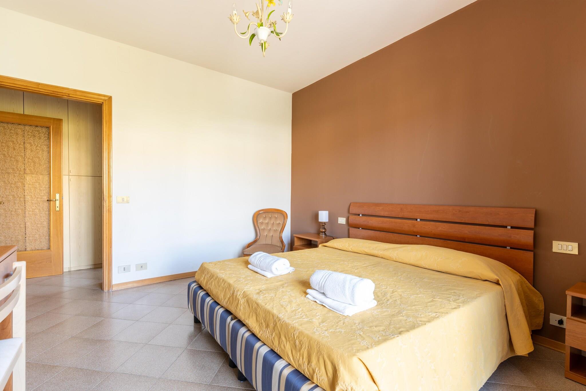 Dette herlige hjemmet ligger i den pittoreske landsbyen Tuoro sul Trasimeno, og har plass til opptil seks gjester. Det tilbyr den perfekte blandingen av avslapning og utforskning. Med kjæledyrvennlige regler og gratis Wi-Fi sikrer det et komfortabelt og praktisk opphold. Bare 1 km unna ligger den rolige Lago Trasimeno, et ideelt sted for å slappe av ved bredden og nyte en fantastisk solnedgang. Historieelskere kan fordype seg i fortiden på Museo di Annibale, som levende forteller om det berømte slaget ved Trasimeno. Den slående utendørskunsten på Campo del Sole og det historiske Guglielmi-slottet på Isola Maggiore beriker den kulturelle opplevelsen ytterligere. Innvendig har hjemmet et moderne kjøkken utstyrt med komfyrtopp, vannkoker, kaffetrakter, stekeovn og kjøleskap med fryser. Den åpne stue- og spisestueplanen har to enkeltsenger, TV, spisebord og innbydende sitteplasser. Gjestene finner en dobbeltseng på hovedsoverommet og to enkeltsenger på det andre soverommet. Badet er utstyrt med både badekar og dusj, samt toalett, bidet og servant. Andre høydepunkter inkluderer et vaskerom med vaskemaskin, et lekeområde, et treningsområde og en privat terrasse for utendørs stunder. Utendørs kan du slappe av i den felles hagen som er møblert for avslapning, eller ta en dukkert i det sesongbaserte bassenget som er åpent fra mai til september. Tuoro sul Trasimeno er omgitt av det fengslende landskapet i Toscana, og tilbyr en unik blanding av naturlig skjønnhet og kulturell rikdom. Nærliggende spisesteder som Cortona Bistrot, Trattoria Toscana, Ristorante Tonino og andre serverer deilig lokal mat.