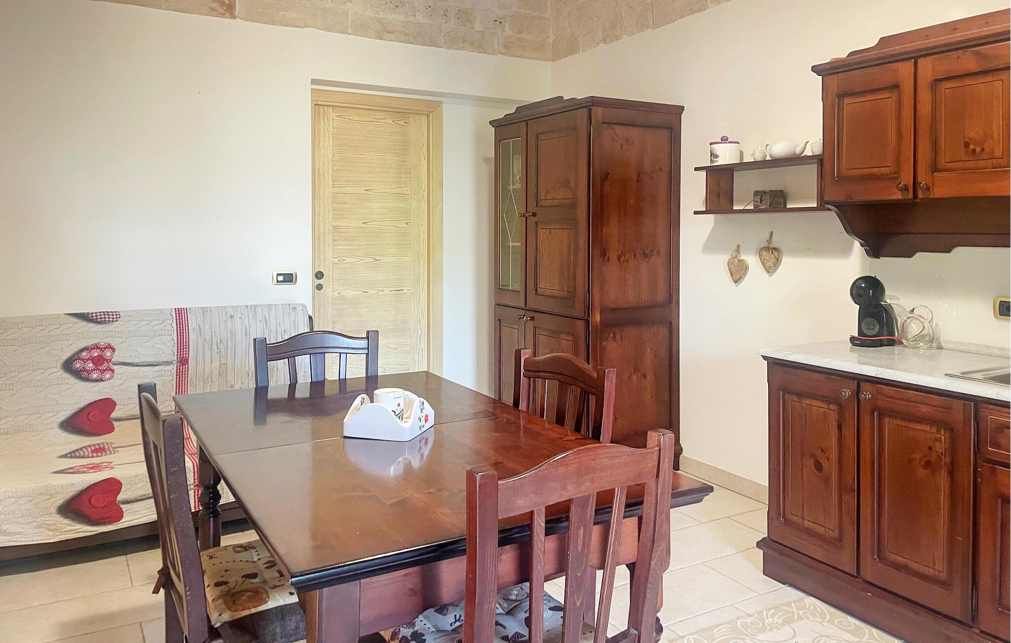 Slapp av i det vakkert beliggende steinhuset i kystens innland, hvor du kan tilbringe en avslappende stund med familien i en koselig og autentisk atmosfære. Sjarmerende hvelvede tak og synlig murverk vitner om husets lange historie og harmonerer med den stilfulle innredningen.