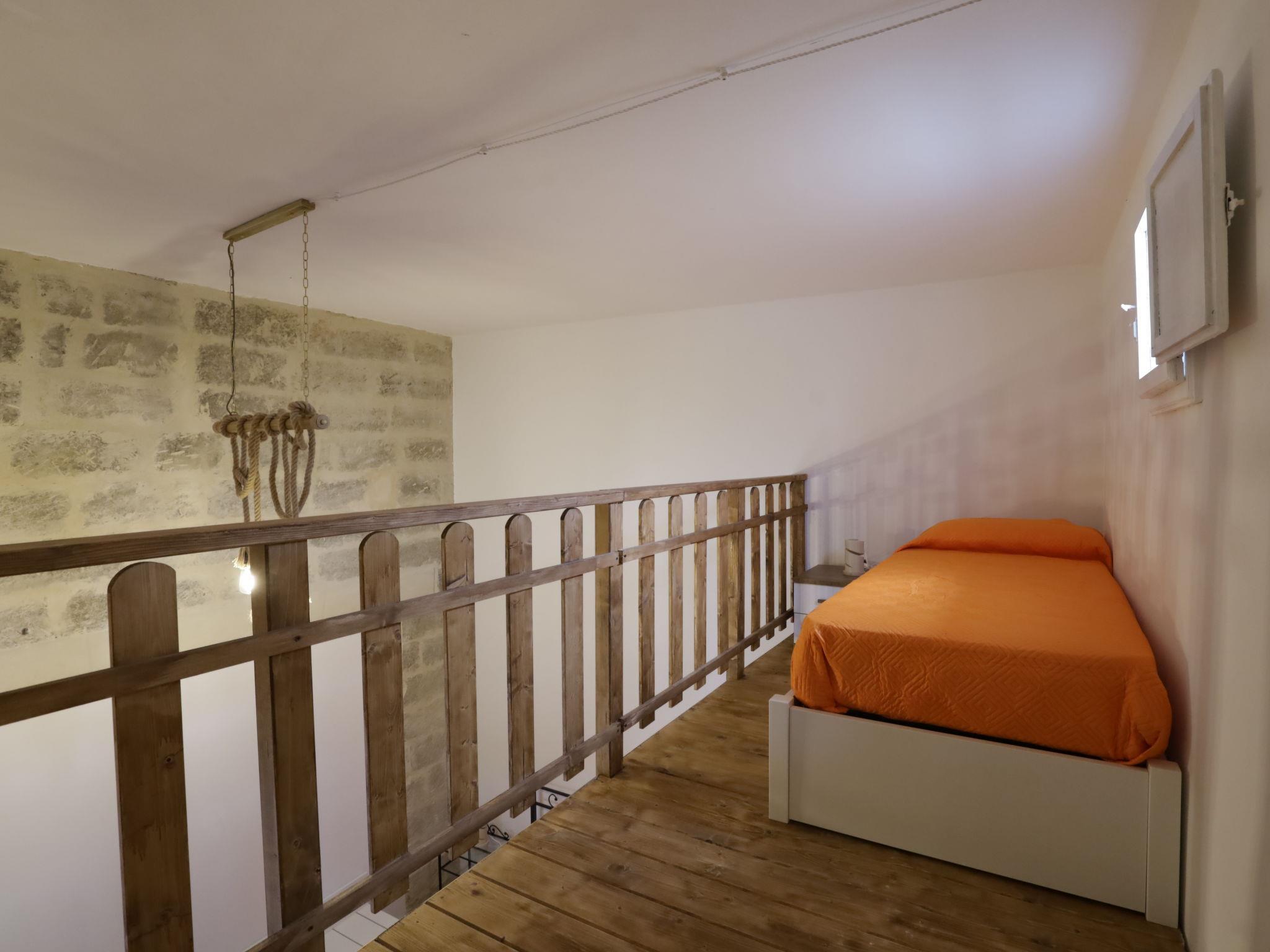 "Spicchi di Salento - Arancio", 2-room apartment 50 m2, on the ground floor. Fully renovated in 2023, beautiful and stylish furnishings: living/dining room 21 m2 with dining table, kitchen corner, international TV channels, air conditioning and forced-air heating. 1 double bedroom with shower/bidet/WC, air conditioning and forced-air heating. Open gallery with 1 bed. Kitchenette (4 hot plates, dishwasher, toaster, kettle, microwave). Heating, air-conditioning, forced-air heating, boiler (80 litres). Heating available only from 15.11. to 31.03, Solar power. Garden 27 m2. Terrace furniture. Facilities: iron, mosquito net, children's high chair, baby cot for up to 2 year olds (extra), hair dryer. Internet (WiFi, free). Please note: non-smoking house. Maximum 1 pet/ dog allowed. Private entrance, fire extinguisher. For stays longer than 3 nights, linen change is included. Instead of an enclosed bedroom, some sleeping areas are located in an open-plan area (gallery, alcove, etc.). IT075093C200079971
