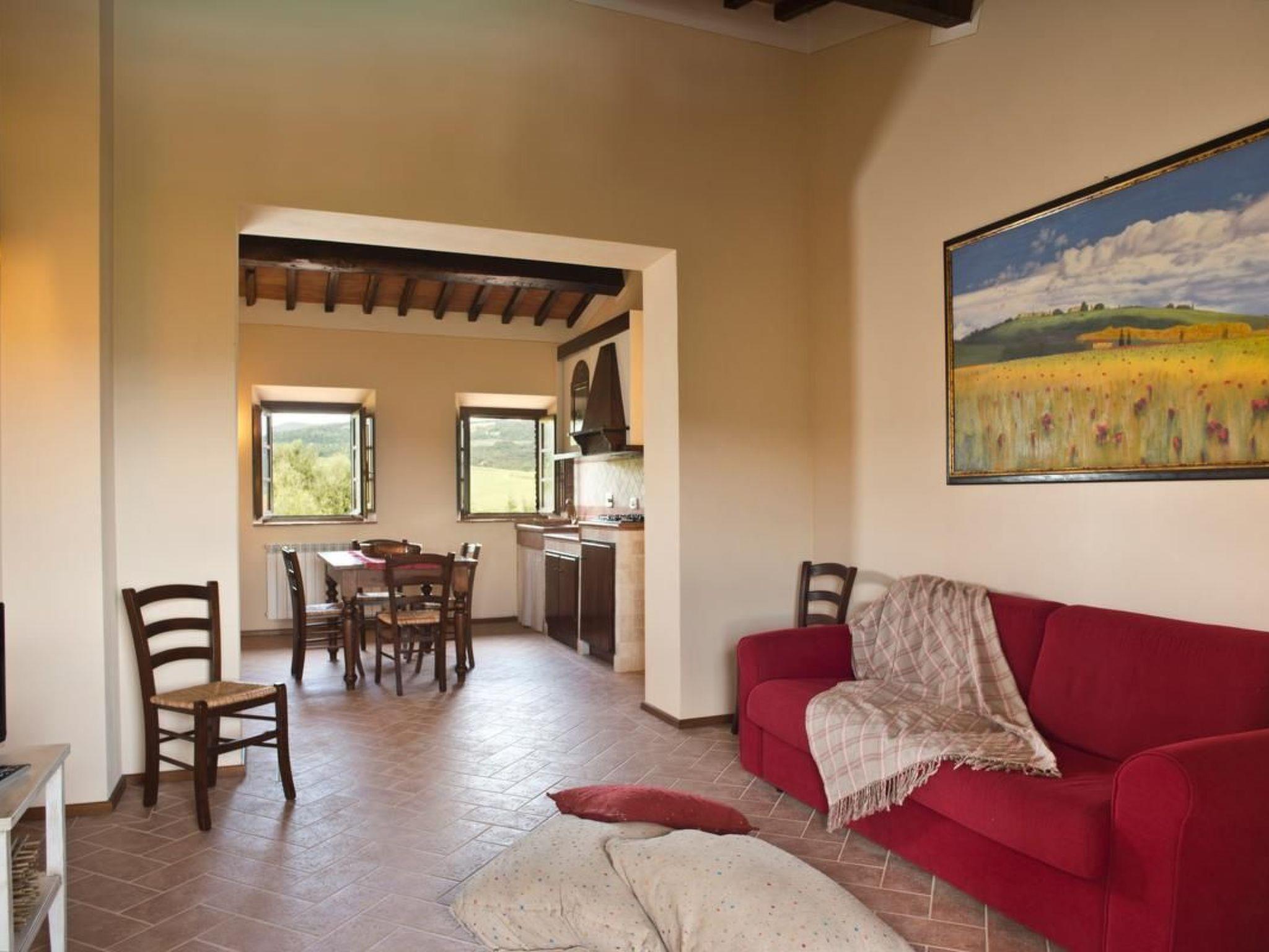 Discover luxury and comfort in this beautiful 85 sqm flat, located on the first floor with a breathtaking view of Volterra and the swimming pool. Perfect for those seeking a serene retreat without sacrificing modern conveniences, this flat is the perfect place for your next family or friends holiday.