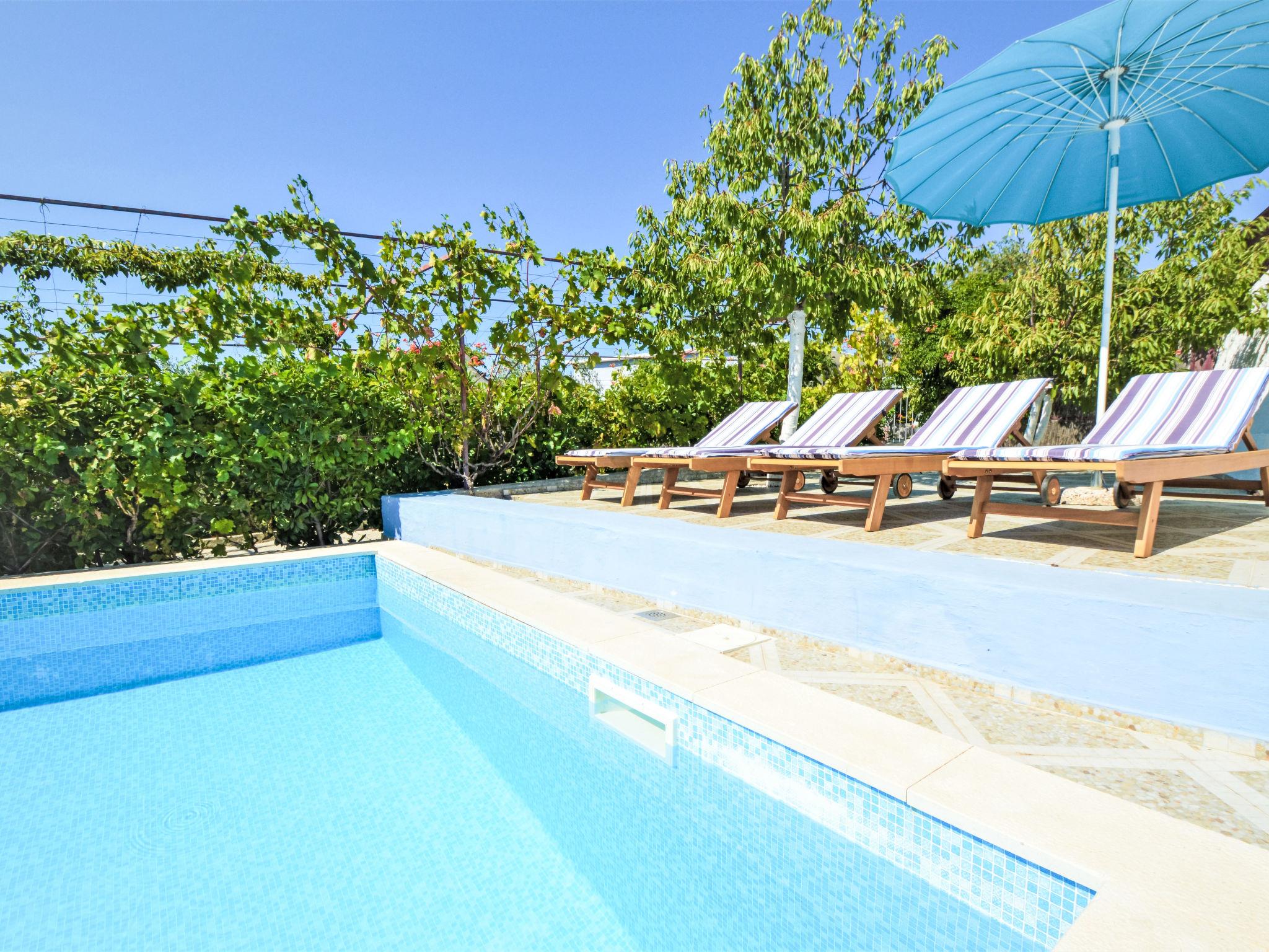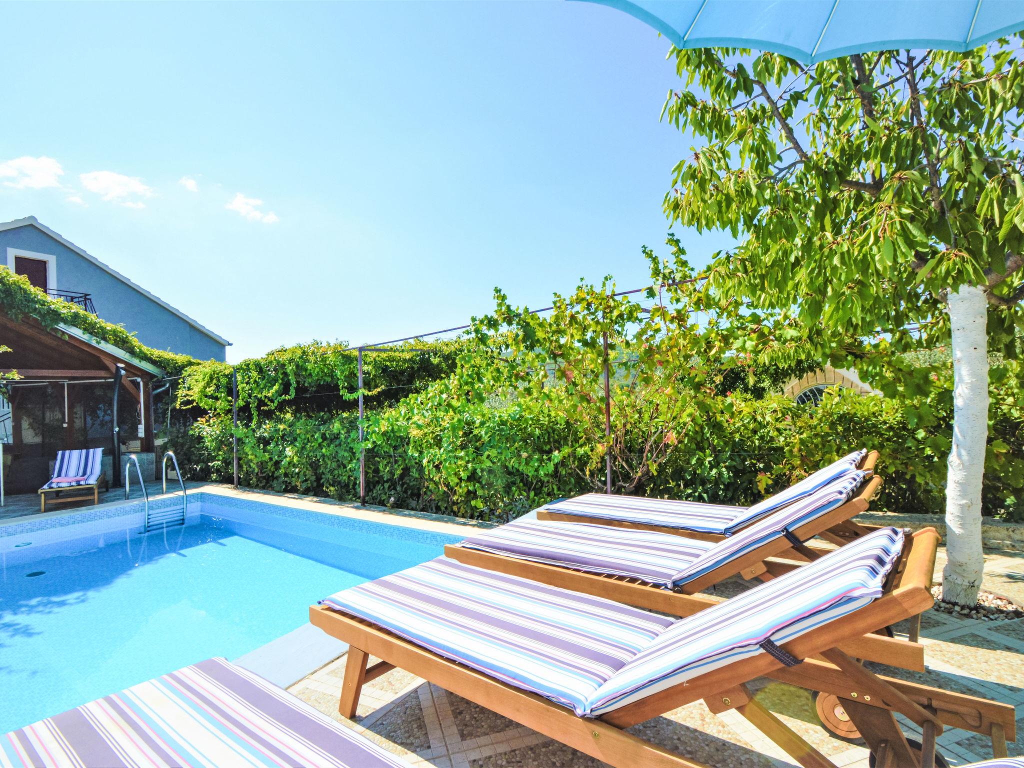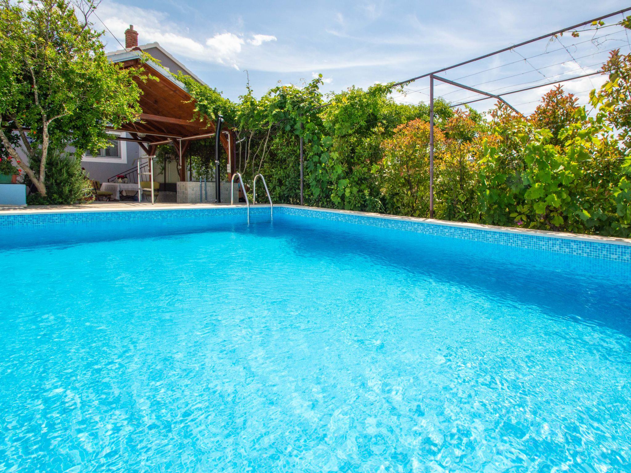 2-family house "Marija". 4 km from the centre of Šibenik, in a sunny position, 5 km from the sea. For shared use: property 1'500 m2 (fenced), garden. Barbecue. Private: swimming pool (6 x 4 m, depth 160 cm, seasonal availability: 01.May. - 01.Oct.). Outdoor shower, terrace (25 m2), garden furniture. In the house: internet access. Parking at the house on the premises, single garage. Shop 3.5 km, restaurant 5 km, bus stop 1.3 km, pebble beach 5 km. Nearby attractions: NP Krka 20 km. Well-known lakes can easily be reached: Prokljansko jezero 6.5 km.