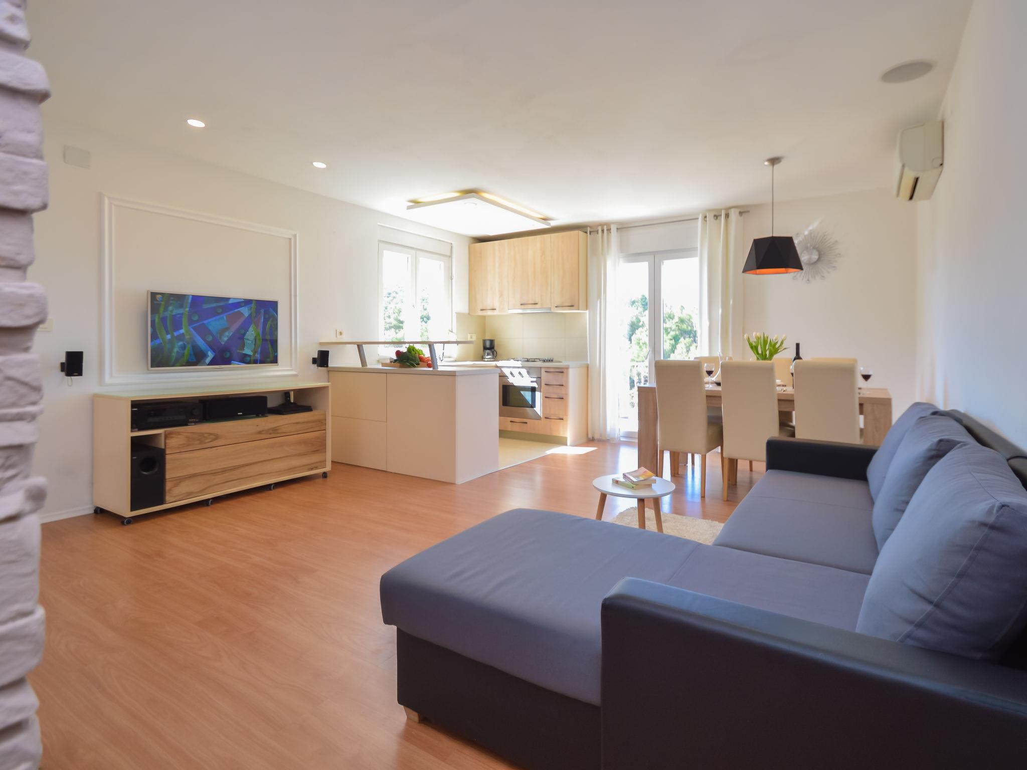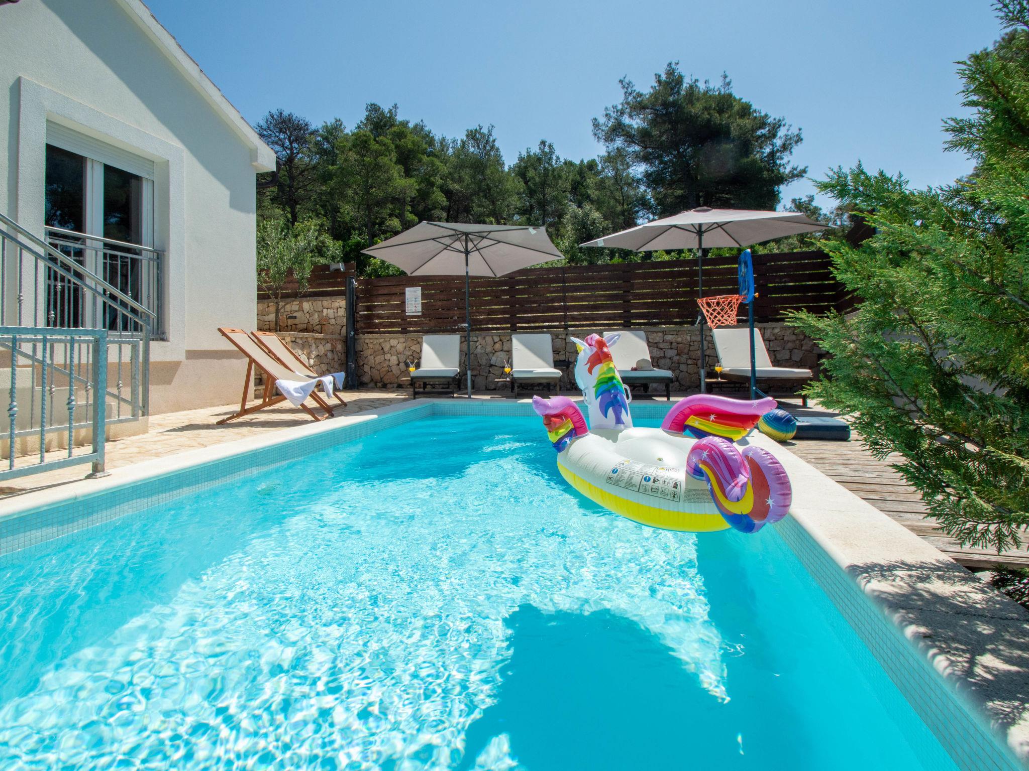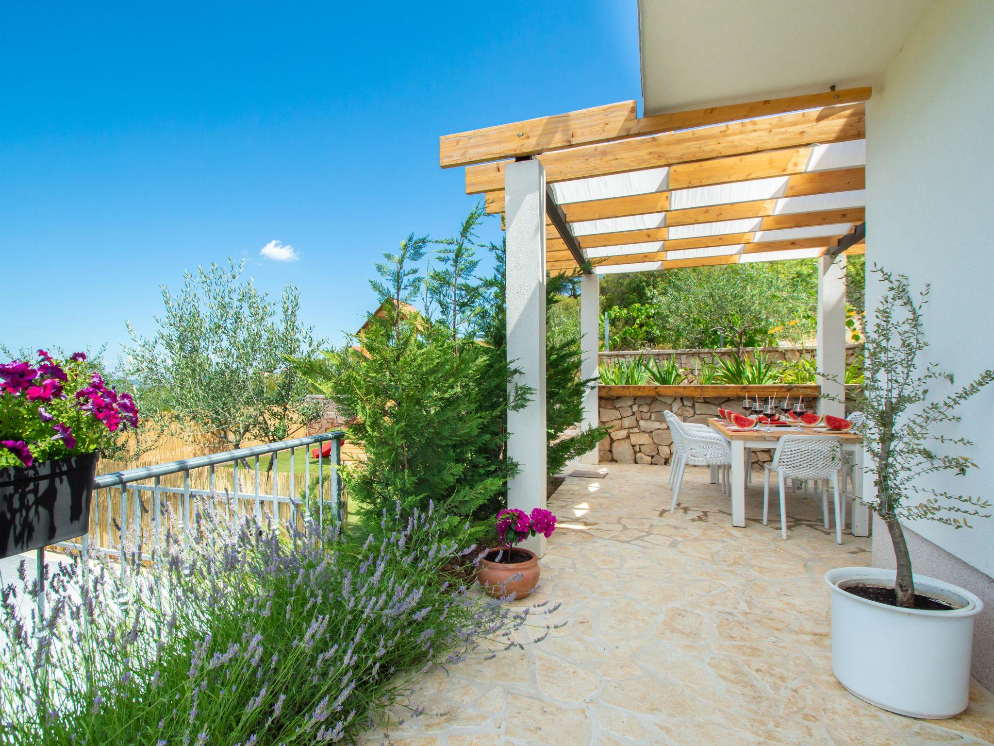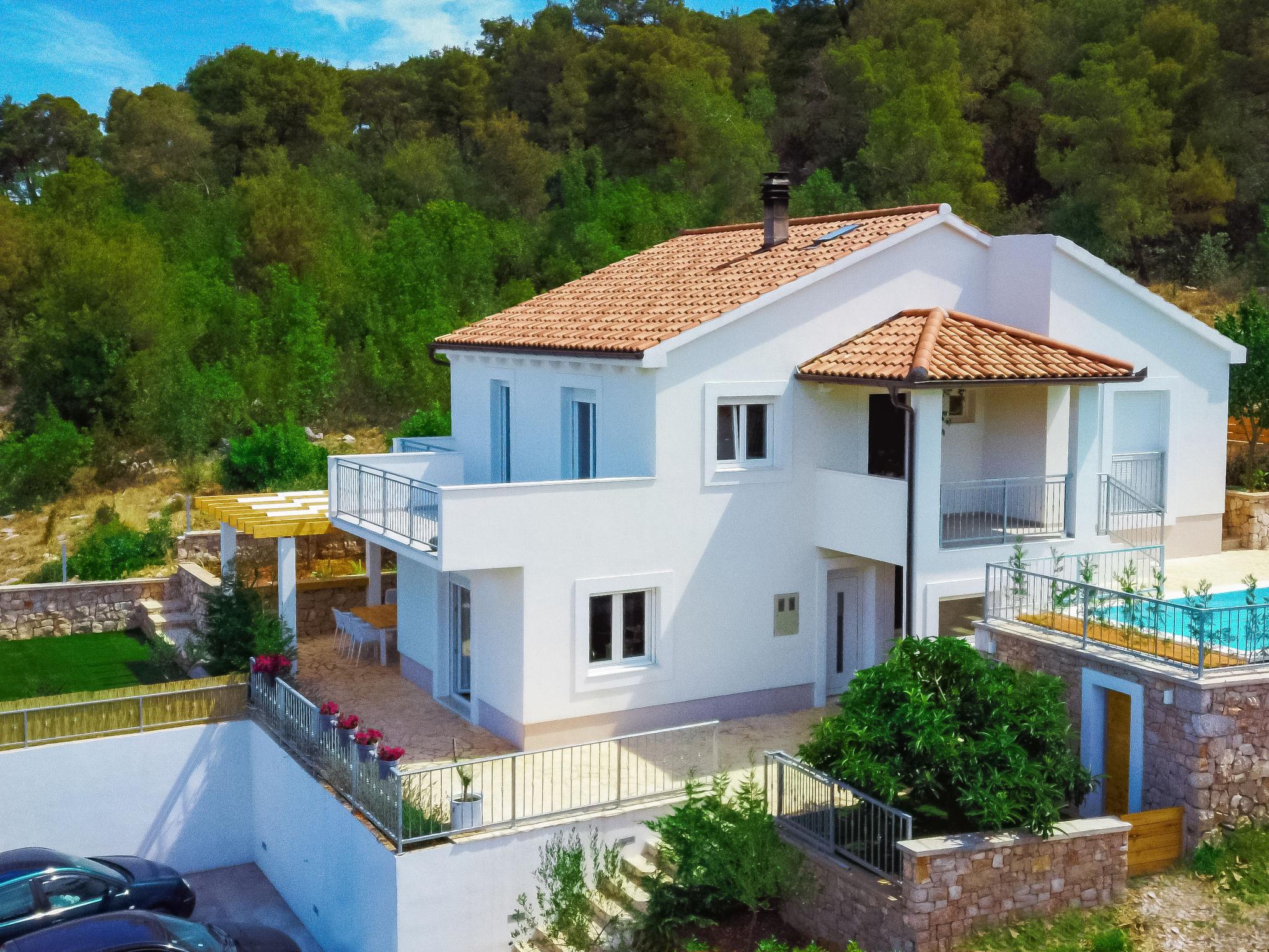 Bilice: Beautiful single-family house "Dalmacia", 2 storeys. 2.5 km from the centre of Bilice, 5 km from the centre of Šibenik, in a sunny position, 5 km from the sea, 2.5 km from the lake, located by a road. Private: property 500 m2, wildlife garden and trees, swimming pool angular (6 x 3 m, depth 150 cm, seasonal availability: 28.May. - 03.Oct.) with internal staircase. Outdoor shower, children's playground (slide, swing). In the house: internet access, washing machine. Parking (for 3 cars) at the house on the premises. Shop 1 km, restaurant 3.5 km, café 200 m, bus stop 600 m, pebble beach 5 km, bathing lake 2.5 km. Nearby attractions: NP Krka 10 km. Well-known lakes can easily be reached: Prokljansko jezero 2.5 km. Part of the house is closed and unoccupied.