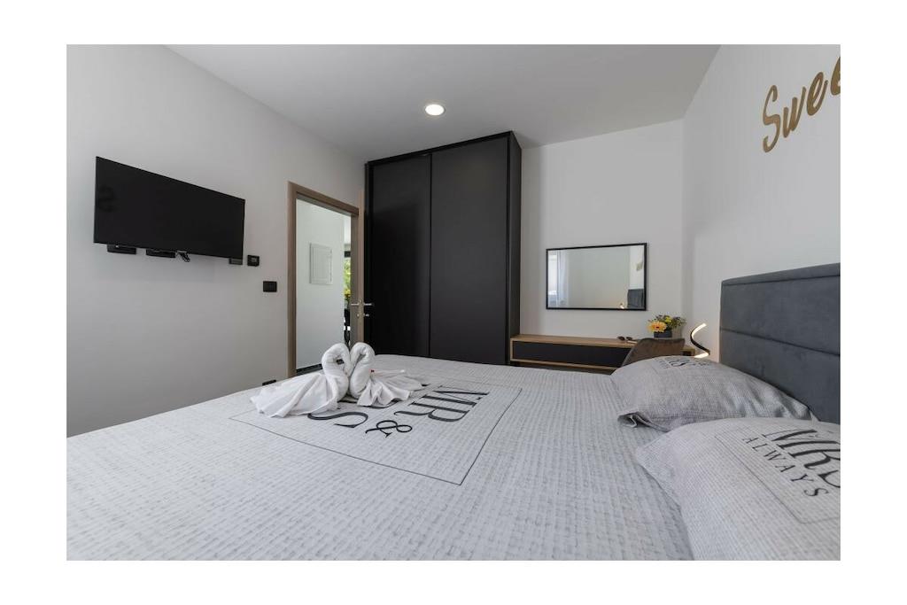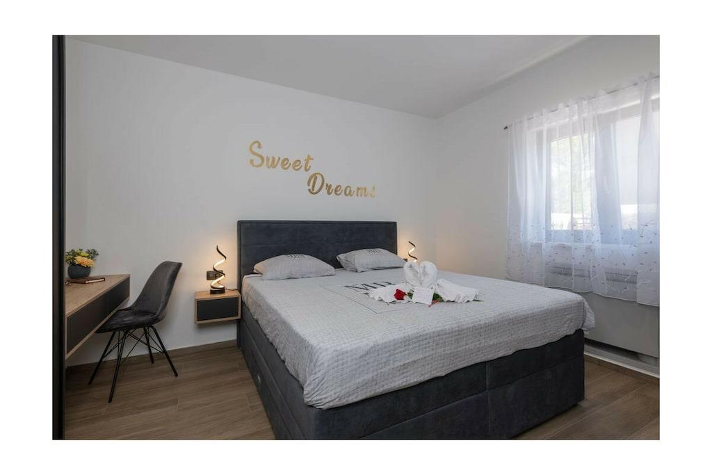 Villa Alison har grill på den overbygde terrassen og gratis parkering i den inngjerdede hagen. Den har to soverom, begge med klimaanlegg og gulvvarme, og er utstyrt med satellitt-TV og kroatiske kanaler. Hvert soverom har bad. Total kapasitet er for seks personer (4 voksne + 2 barn). Soverommene er møblert med dobbeltsenger. Gratis Wi-Fi, satellitt-TV, svømmebasseng og grill er tilgjengelig. Som du vil legge merke til, skaper de fine detaljene en varm atmosfære, slik at du føler deg enda mer komfortabel. Det 32 m² store oppvarmede bassenget er også et høydepunkt. Men det er ikke alt – for å ta opplevelsen til et enda høyere nivå, er det også et stort innendørs boblebad som måler 210 x 210 cm, en badstue og et sitteområde for fullstendig avslapning.