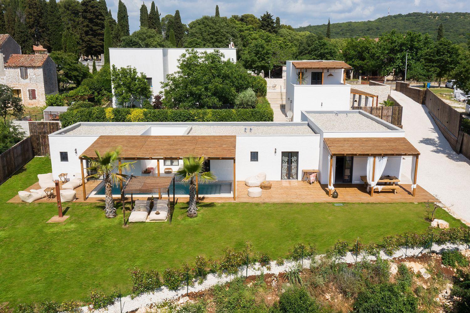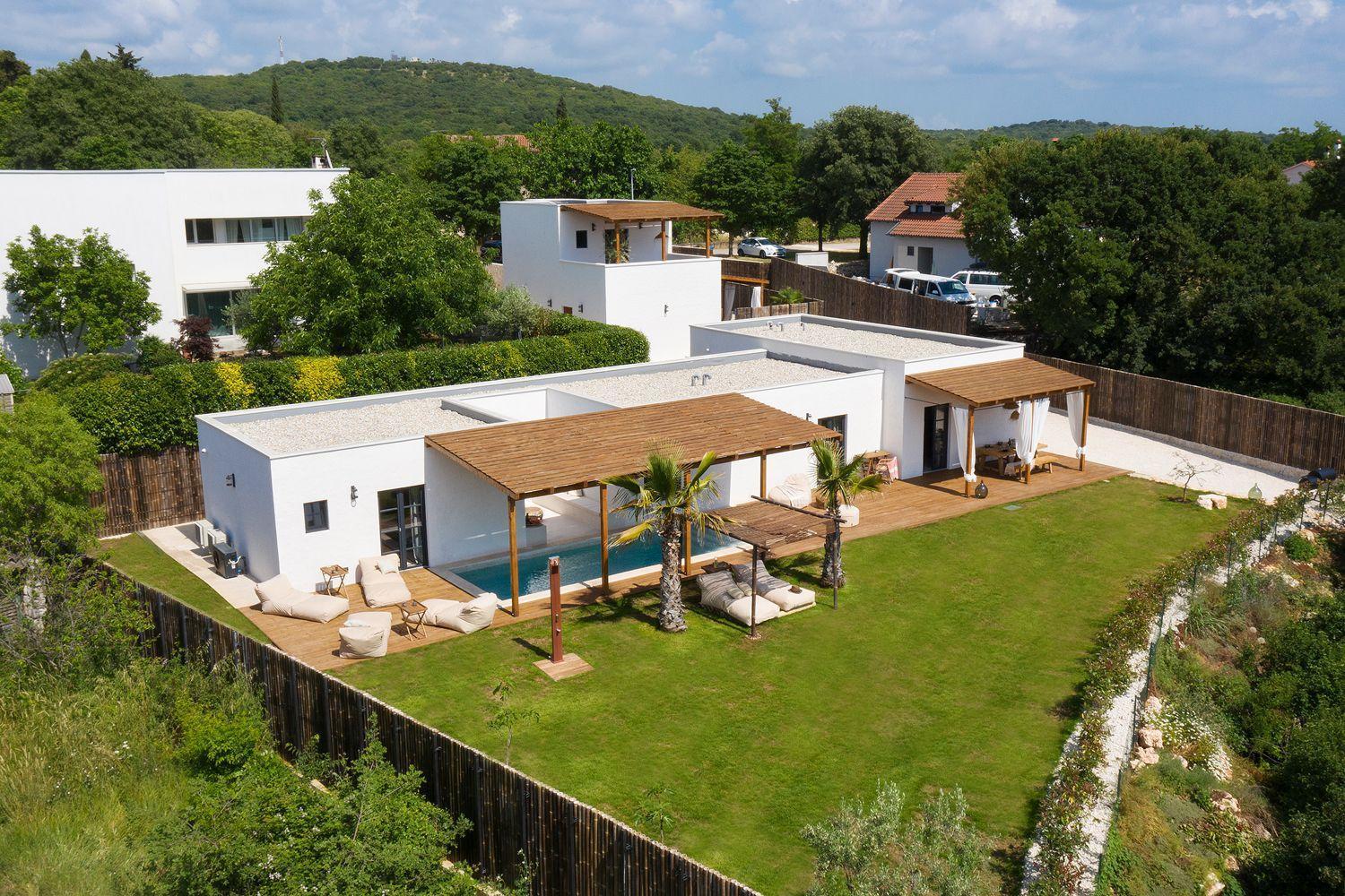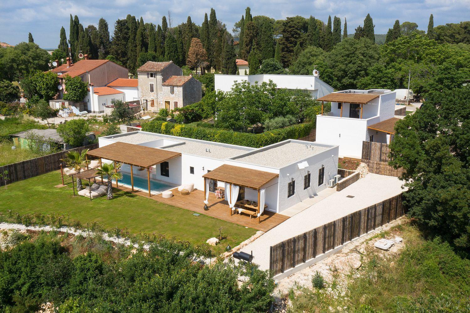 Brand new - tropical 230 m² villa in its first season on a 1600 m² plot with extra privacy, terraces, huge garden and heated pool! This spacious tropical villa is located in the heart of the small village of Bale and is within walking distance of the centre where you will find bars, restaurants and supermarkets. The small village of Bale is one of the most beautiful mountain villages in Istria and is only 15 km southeast of Rovinj and 23 km from the city of Pula.