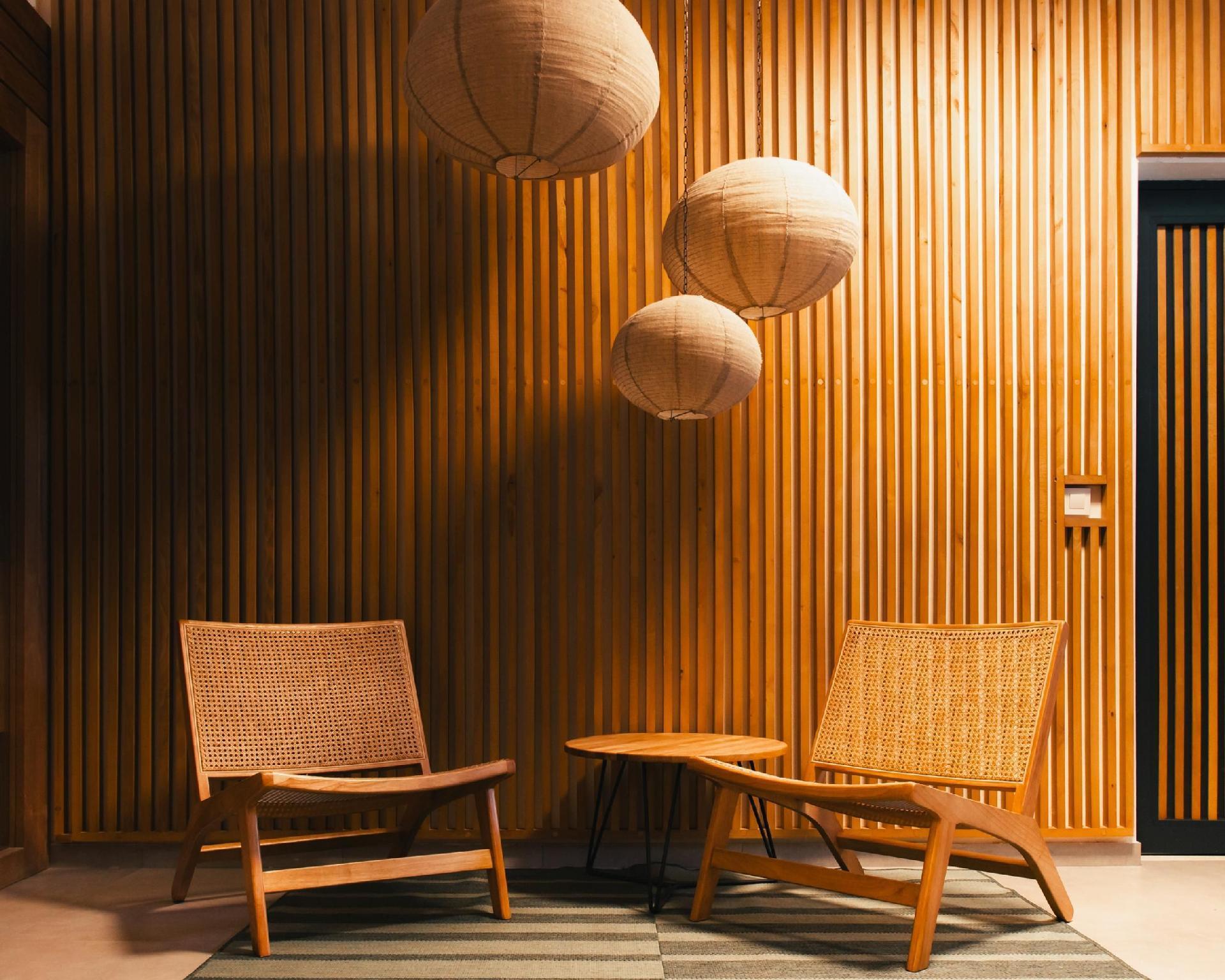 Step into the living room, where contemporary design meets elegance with its neutral color palette and stylish furnishings. It features a perfect space for moments of leisure or social gatherings.