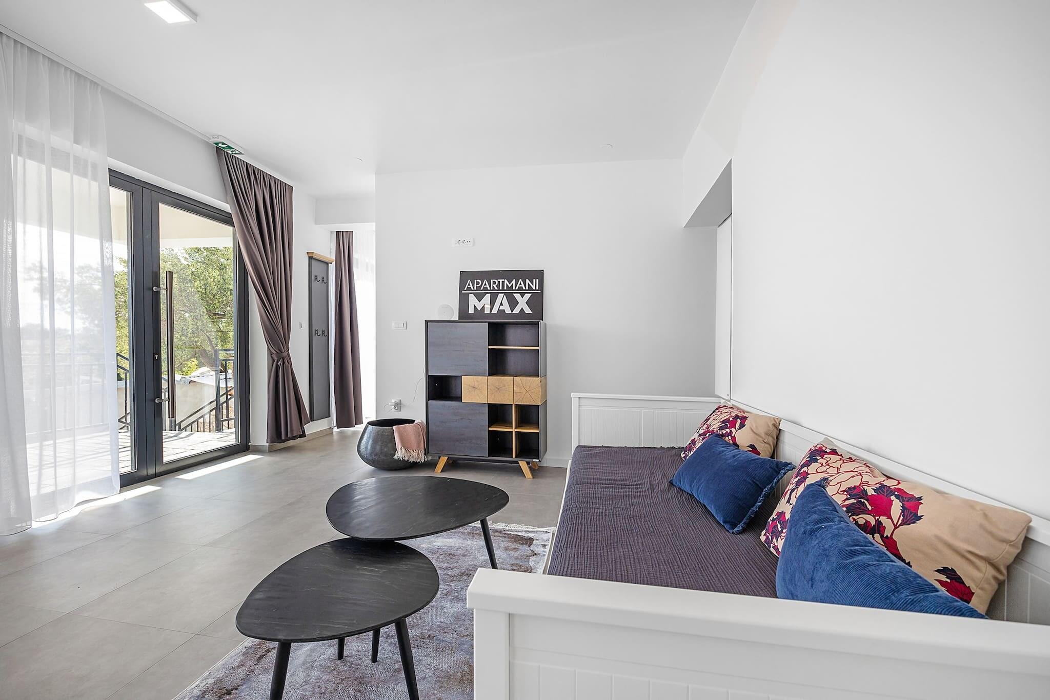 Denne leiligheten, sammen med en koselig atmosfære, tilbyr et fredelig tilfluktssted for opptil 2 gjester. Leiligheten har et romslig soverom med en stor queen-size-seng, samt en komfortabel sovesofa i fellesrommet for ekstra gjester. Den har også egen inngang, moderne stue og romslig terrasse med fantastisk havutsikt. Denne kjæledyrvennlige eiendommen tillater små kjæledyr med forhåndsvarsel og tilbyr gratis parkering. Gjestene kan nyte en felles hage med en grill for utendørs servering, noe som gjør det til et perfekt sted for avslapning. Leiligheten ligger kun 300 meter fra stranden, og har en ideell beliggenhet for å utforske den vakre øya Rab. Viktige fasiliteter som en matbutikk, restaurant og busstasjon ligger innen gangavstand. Rab er kjent for sine sandstrender, noe som gjør det til et utmerket reisemål for familier. Besøkende kan også utforske historiske steder som den gamle greske militærfestningen og den sjarmerende gamlebyen i Rab. Øya er lett tilgjengelig via Stinica-Misnjak-fergen, som tillater bilreise, og lokale busser er tilgjengelige for praktisk øyutforskning. Innvendig har leiligheten et fullt utstyrt kjøkken, et moderne bad og en romslig stue og spisestue. Aircondition, høyhastighetsinternett og viktige fasiliteter som sengetøy og håndklær (skiftes ukentlig) er gitt for ekstra komfort. En barneseng og barnestol er tilgjengelig på forespørsel, noe som sikrer et familievennlig miljø. Med alt du trenger for et avslappende opphold, tilbyr denne leiligheten en perfekt ferie.