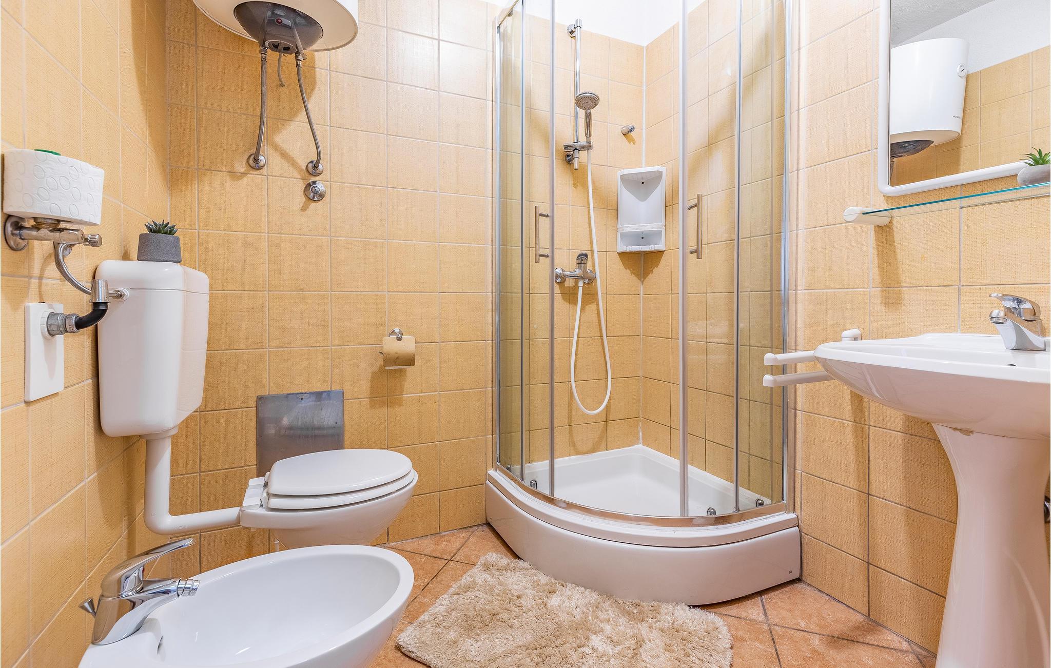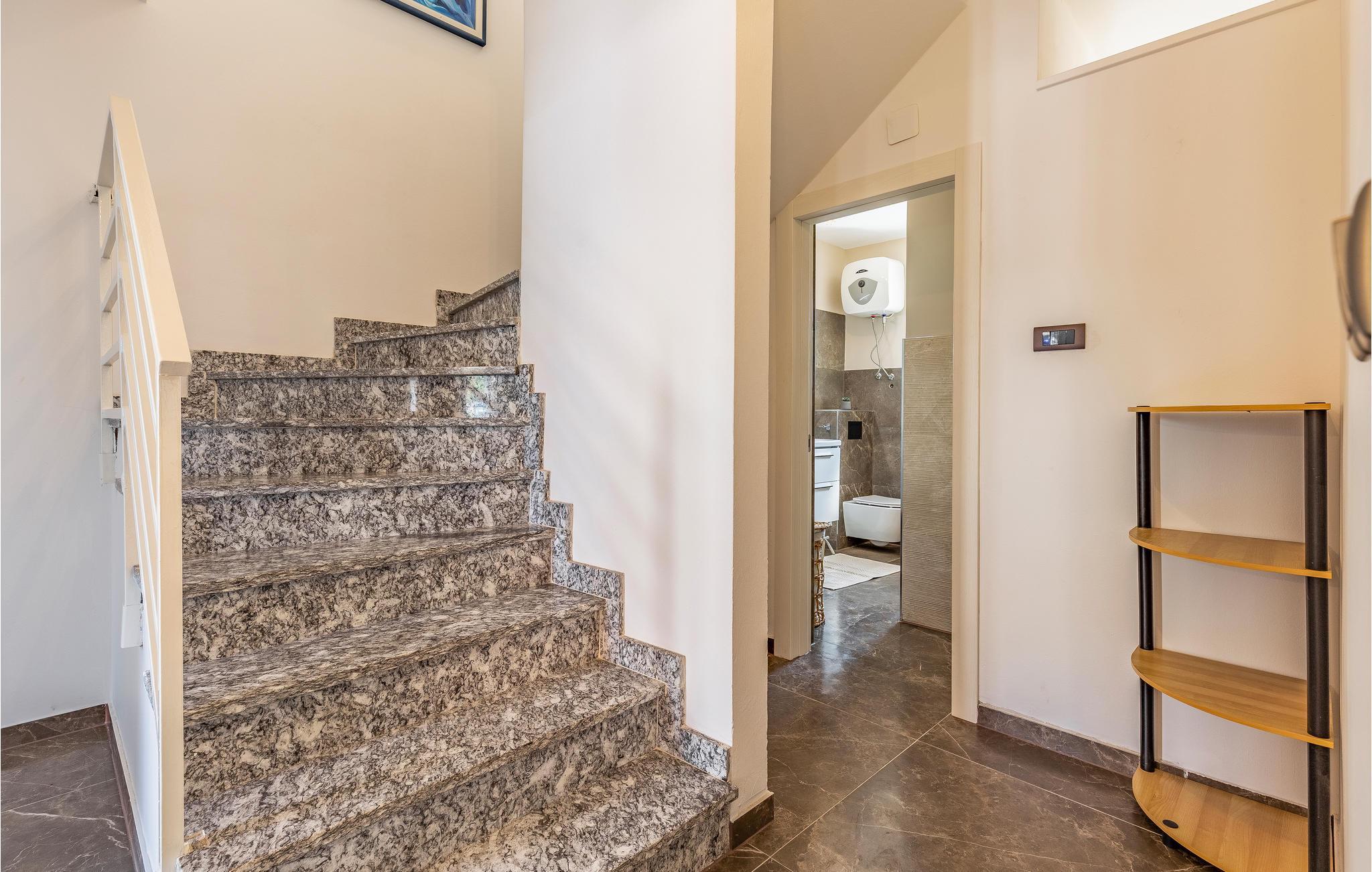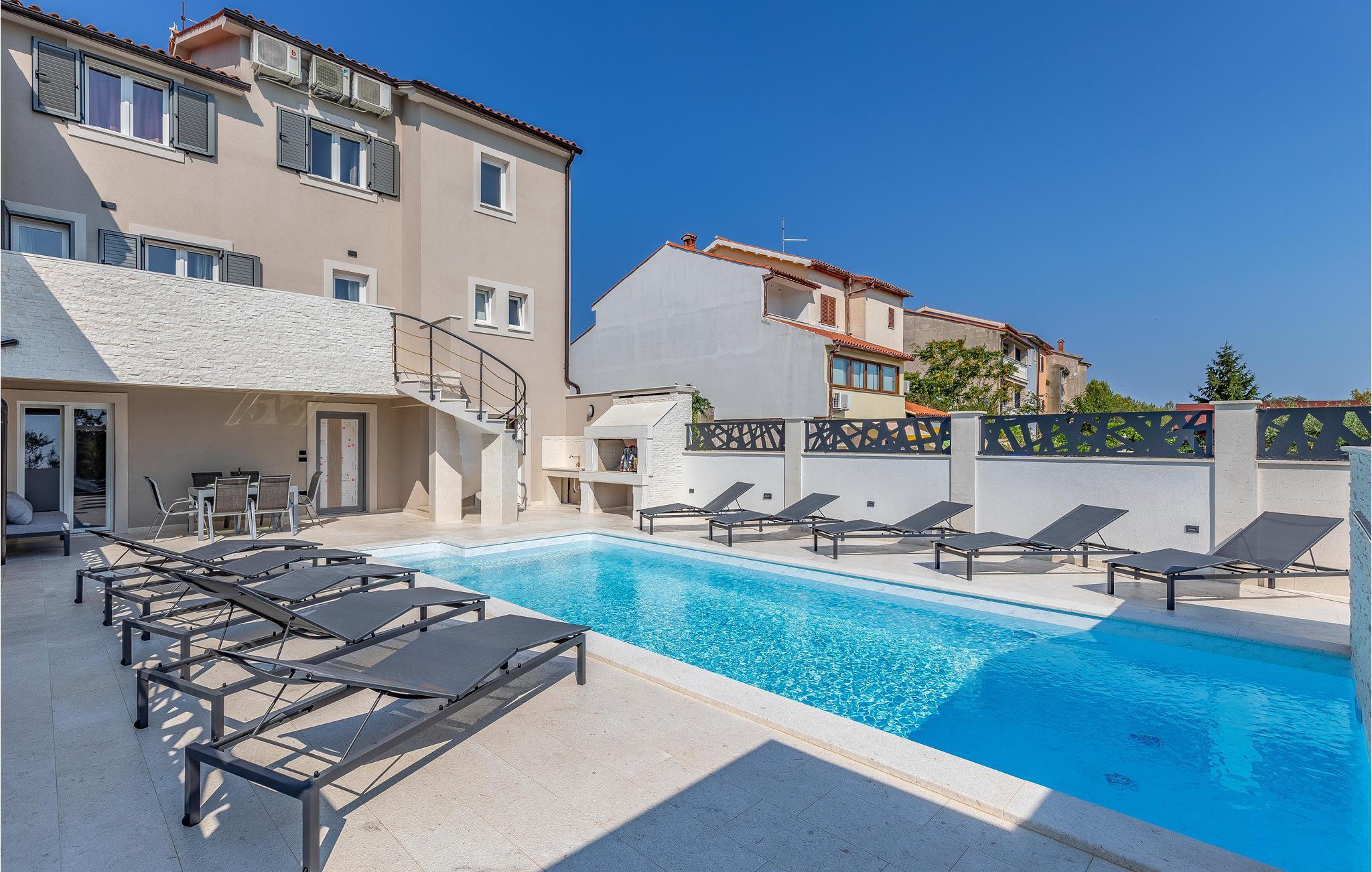 Det ligger i et rolig område i nærheten av butikker og restauranter med rike tradisjonelle istriske spesialiteter og fritidsfasiliteter. Utendørsbassenget med fossefall og hydromassasjedyser, opplyst i forskjellige farger, tilbyr deg forfriskning og avslapning om dagen og om kvelden. Dette området er inngjerdet og egnet for barn. Du kan slappe av på solsengene med forfriskende drinker og tilbringe hyggelige grillkvelder ved bassenget.