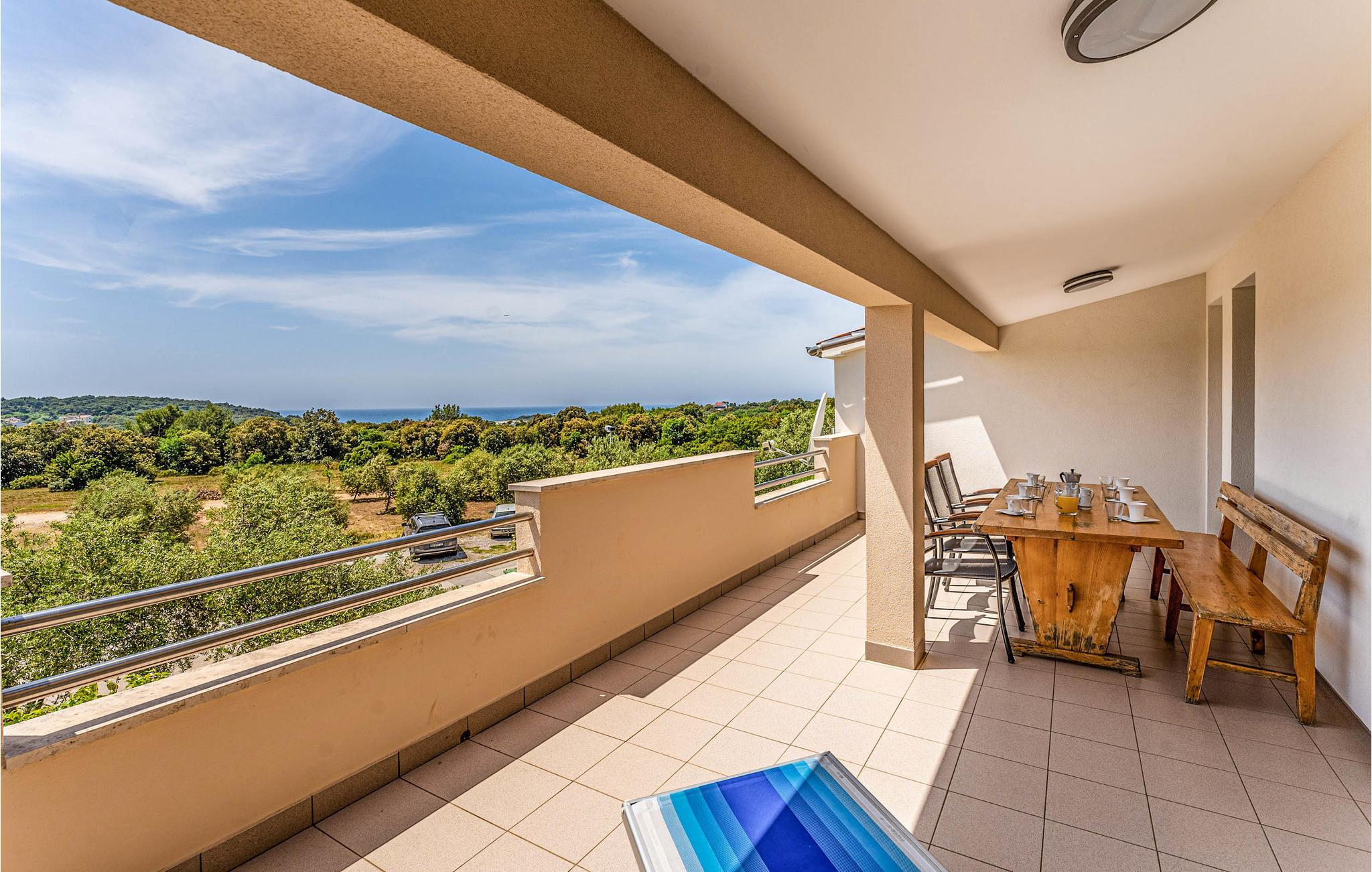 Gled deg til ferien sør på den istriske halvøya. Et velholdt leilighetshus med flere ferieleiligheter fungerer som utgangspunkt for dine aktiviteter i regionen. Den store ferieleiligheten tilbyr deg og din lille familie plass og alt du trenger for en bekymringsløs ferie. En overbygd terrasse gir deg muligheten til å starte morgenen med en solid frokost og ferdigstille planene for dagen som kommer.