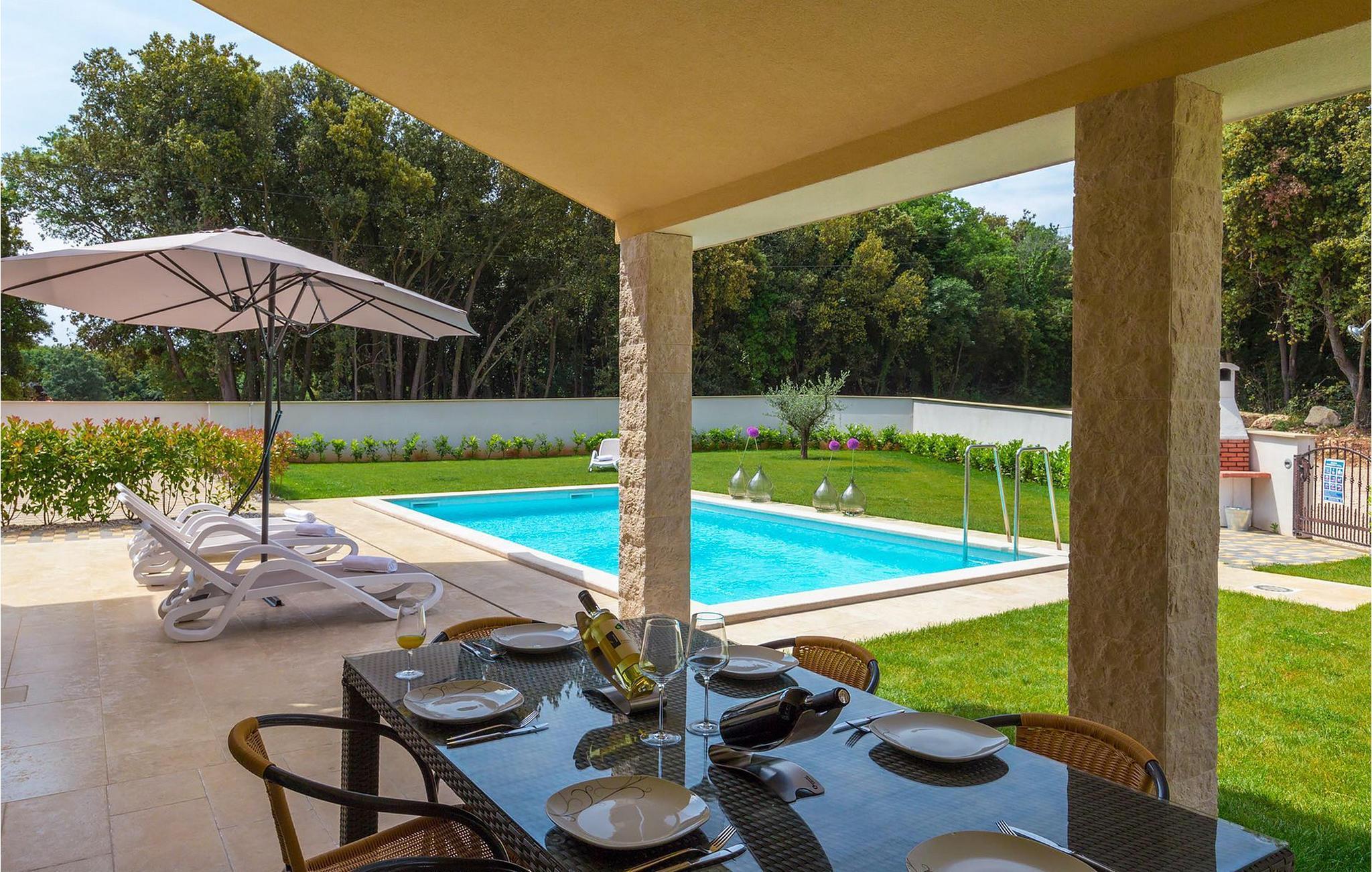 Villaen ligger i den lille fiskerlandsbyen Banjole. Villaen ligger bare noen få minutters gange fra stranden. Den lille fiskerlandsbyen Banjole ligger på en liten halvøy med en naturlig beskyttet havn, det perfekte stedet for å nyte havet og for de som liker å seile og fiske. Hvis du liker sport, kan du velge en av de mange sportsaktivitetene. På Istria-halvøya ligger en av de vakreste nasjonalparkene i denne delen av Europa - Brijuni. Brijuni-øyene ligger bare en kort båttur unna den vakre fiskerlandsbyen Fazana, som ligger bare 16 kilometer fra villaen. Kapp Kamenjak, som ligger bare en kort kjøretur fra villaen, er et must hvis du liker uberørt natur med ville strender og vakre omgivelser.