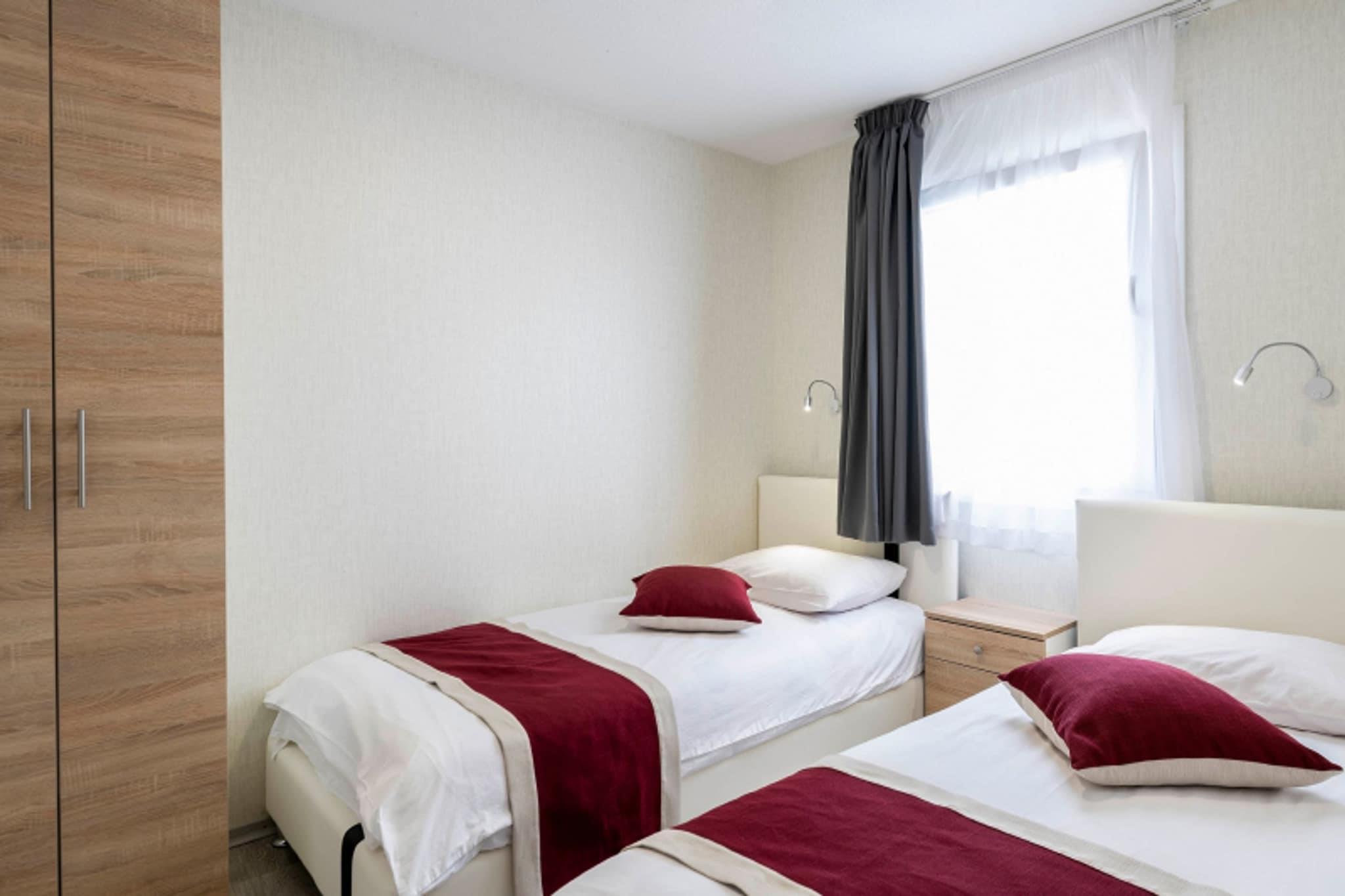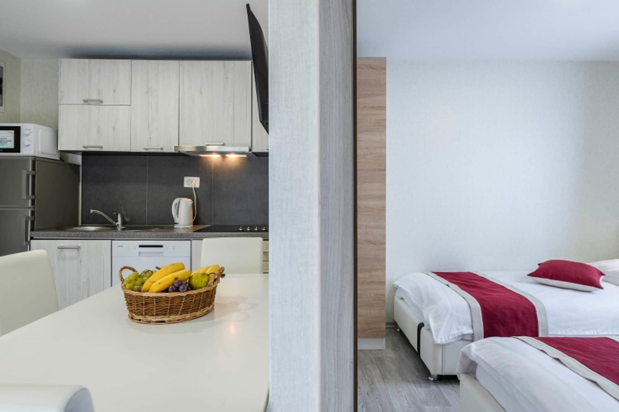 Dette kjæledyrvennlige mobile hjemmet for seks gjester tilbyr en avslappende ferie bare 1 km fra stranden, og gir en perfekt blanding av komfort og bekvemmelighet. Det ligger i Banjole, 2 km fra Pula, en pulserende by rik på historie og kultur. Med gratis Wi-Fi, et felles svømmebasseng og diverse utendørsfasiliteter kan gjestene nyte både fritid og eventyr. Innvendig har hjemmet et velutstyrt kjøkken med vannkoker, kokende vannkran, kaffetrakter, mikrobølgeovn, oppvaskmaskin og kjøleskap, noe som sikrer et problemfritt opphold. Den koselige stuen/soverommet har en sammenleggbar dobbelseng og en TV, mens de separate soverommene har en king-size-seng og køyesenger eller enkeltsenger for avslappende netter. Gjestene kan slappe av på terrassen, nyte utendørs servering med grillen, eller benytte seg av fasiliteter som trampoline, tennisbane, fotballmål, lekeutstyr og solsenger. I nærheten er Beach Centinera et must å besøke for sitt krystallklare vann og naturskjønne kystlinje. Utforsk Pulas romerske amfiteater, et av Kroatias mest ikoniske landemerker. Når det gjelder mat, er Batelina kjent for sjømaten sin, mens Konoba Volme tilbyr autentiske kroatiske smaker. Enten du søker avslapning eller utforskning, er dette kystferiestedet det perfekte tilfluktsstedet.
