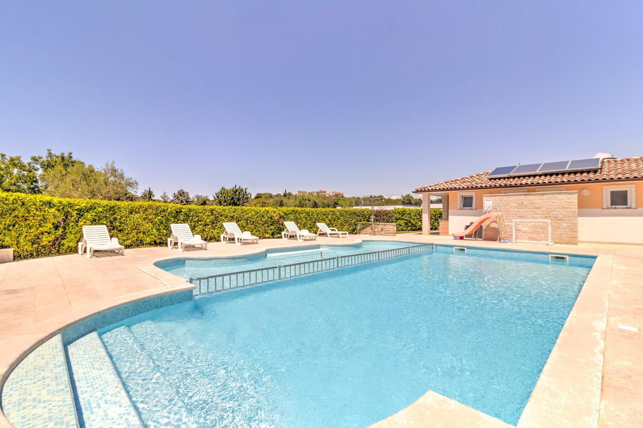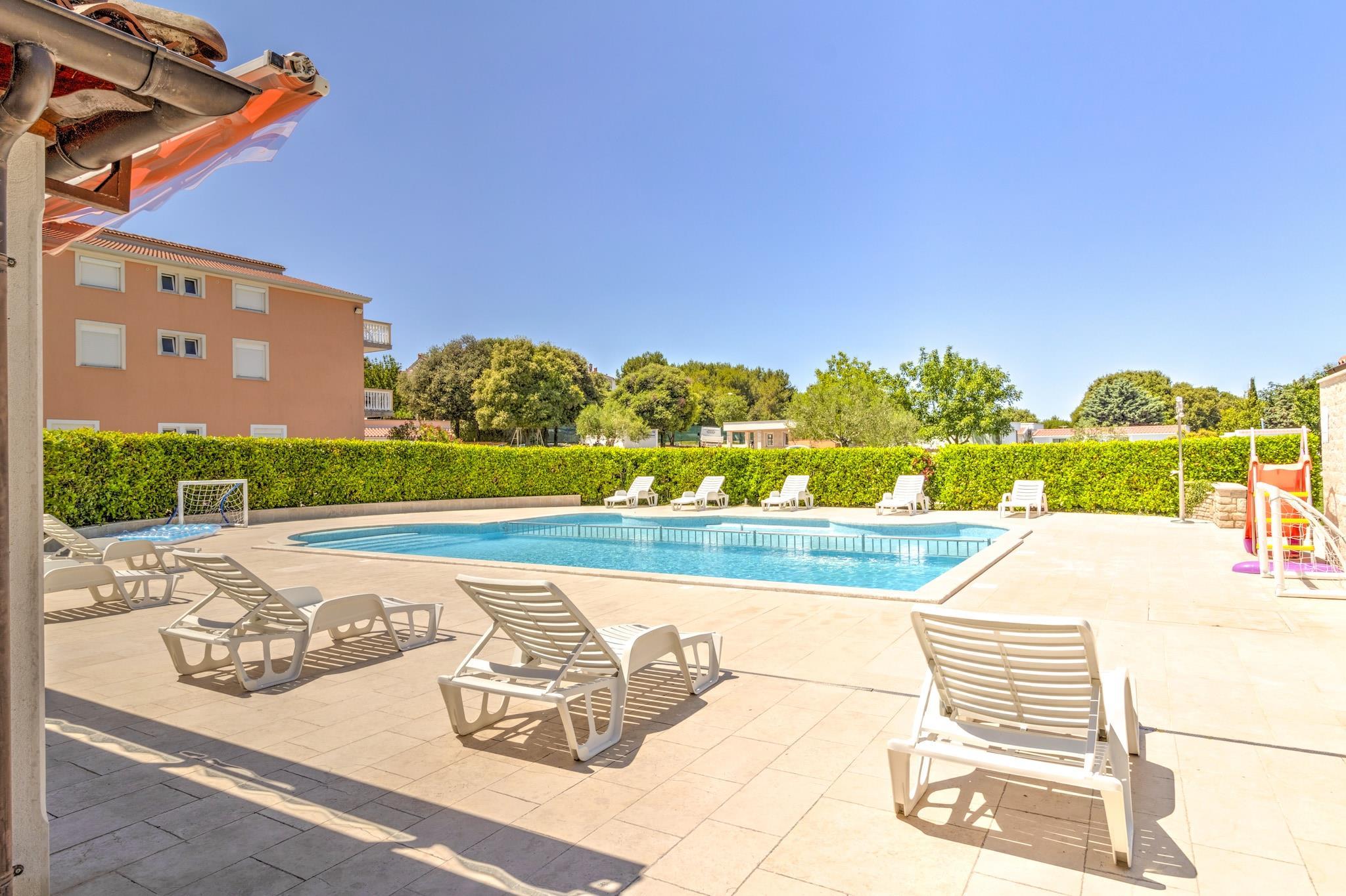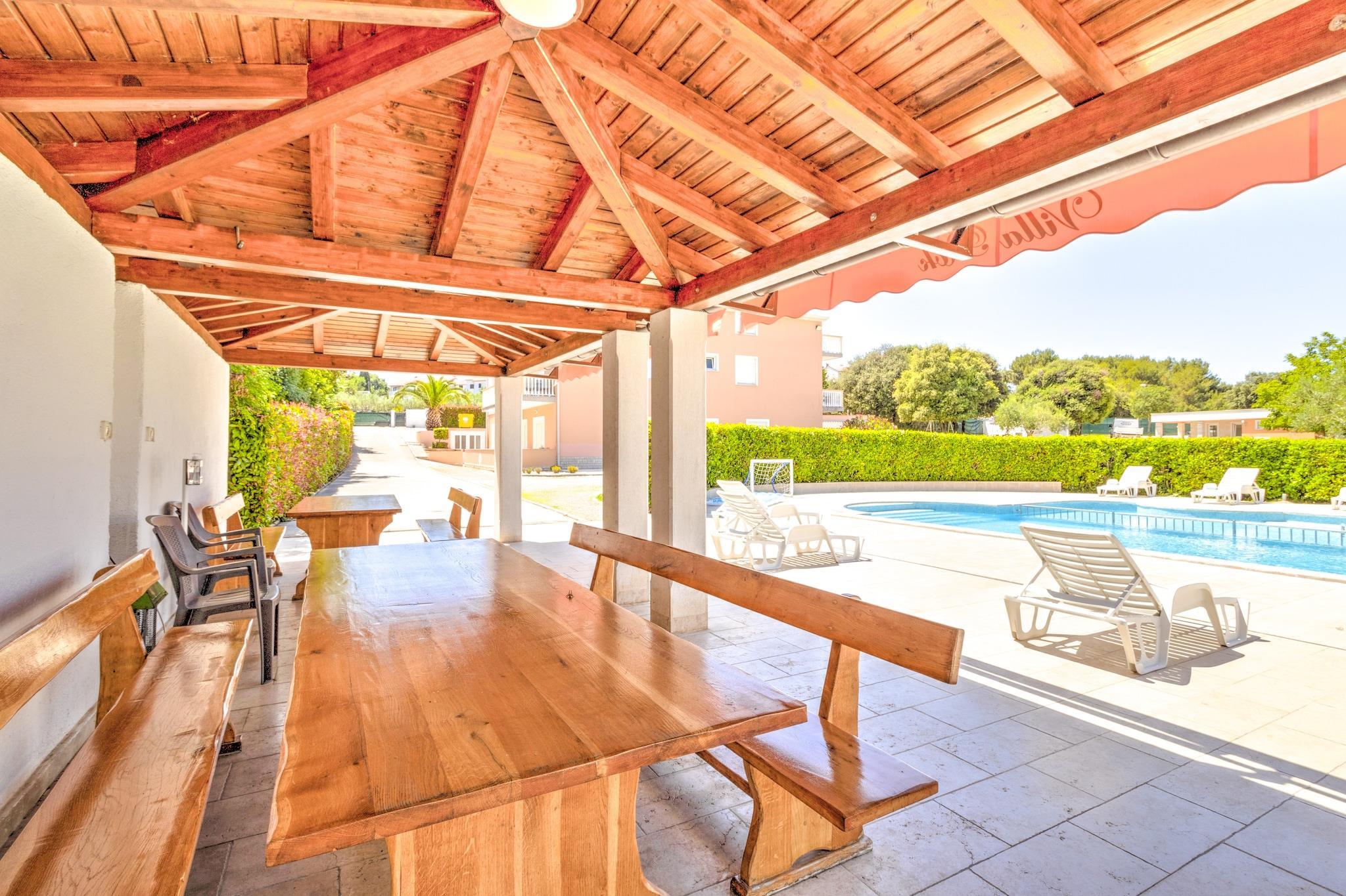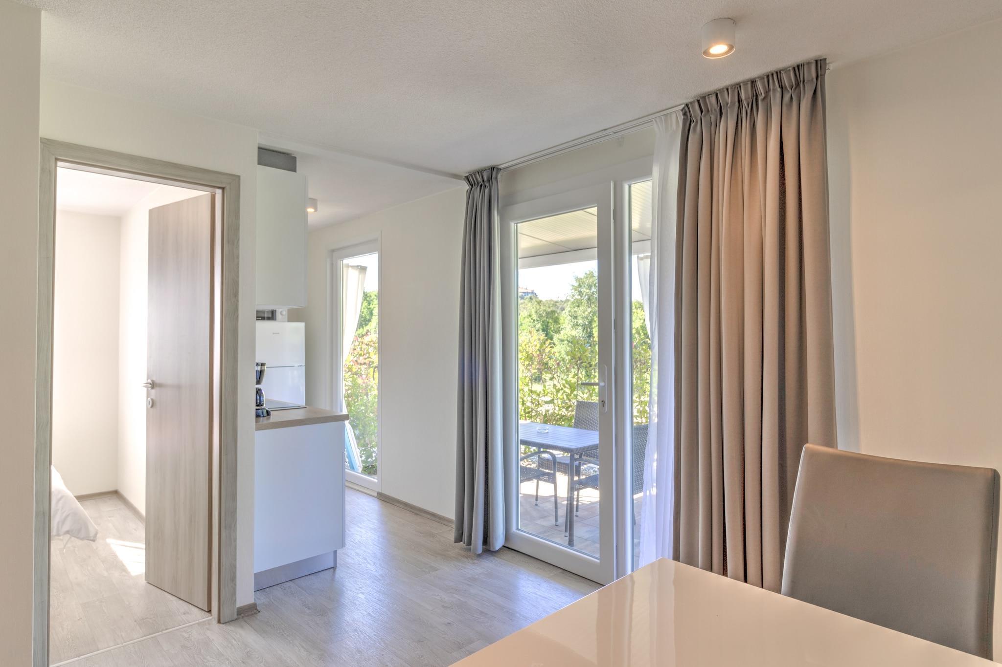 Våkn opp til den milde havbrisen og de beroligende naturens lyder i dette kjæledyrvennlige mobile hjemmet for seks gjester. Dette tilfluktsstedet ligger i Banjole, bare 1 km fra stranden og 2 km fra Pula, og tilbyr en perfekt blanding av avslapning og eventyr. Enten du slapper av på den solfylte terrassen, utforsker historiske landemerker eller unner deg fersk sjømat, er dette kystparadiset designet for uforglemmelige øyeblikk. Innvendig har hjemmet en romslig stue og soverom med en sammenleggbar dobbelseng, TV og klimaanlegg, en velutstyrt kjøkkenkrok med vannkoker, kokende vannkran, kaffemaskin, mikrobølgeovn, oppvaskmaskin og kjøleskap, og et soverom med køyesenger eller to enkeltsenger. Hovedsoverommet har en king-size-seng og et eget bad med badekar eller dusj og toalett, supplert av et ekstra bad for enkelhets skyld. Utendørs kan gjestene slappe av på terrassen med hagemøbler, solsenger og grill, eller nyte trampoline, tennisbane, fotballmål og lekeutstyr. I nærheten viser Augustus-tempelet utsøkt romersk arkitektur, mens Brijuni-øyene tilbyr uberørt natur og historiske skatter. Vandre gjennom Sergii-buen, en praktfull triumfbue fra antikken. For å spise kan du kose deg på Konoba Batelina, kjent for fersk sjømat, eller nyte lokale delikatesser på Barka Bistro. Enten du utforsker historie eller slapper av ... Ved kysten er dette mobile hjemmet det ultimate tilfluktsstedet ved Adriaterhavet.