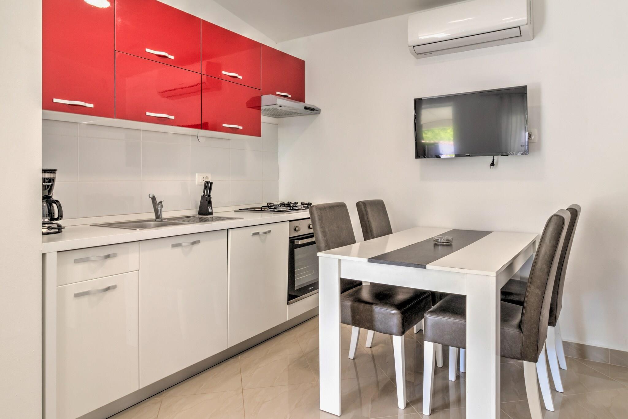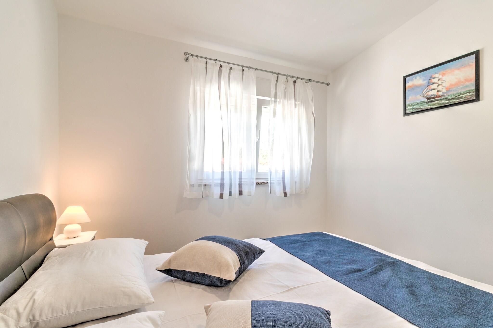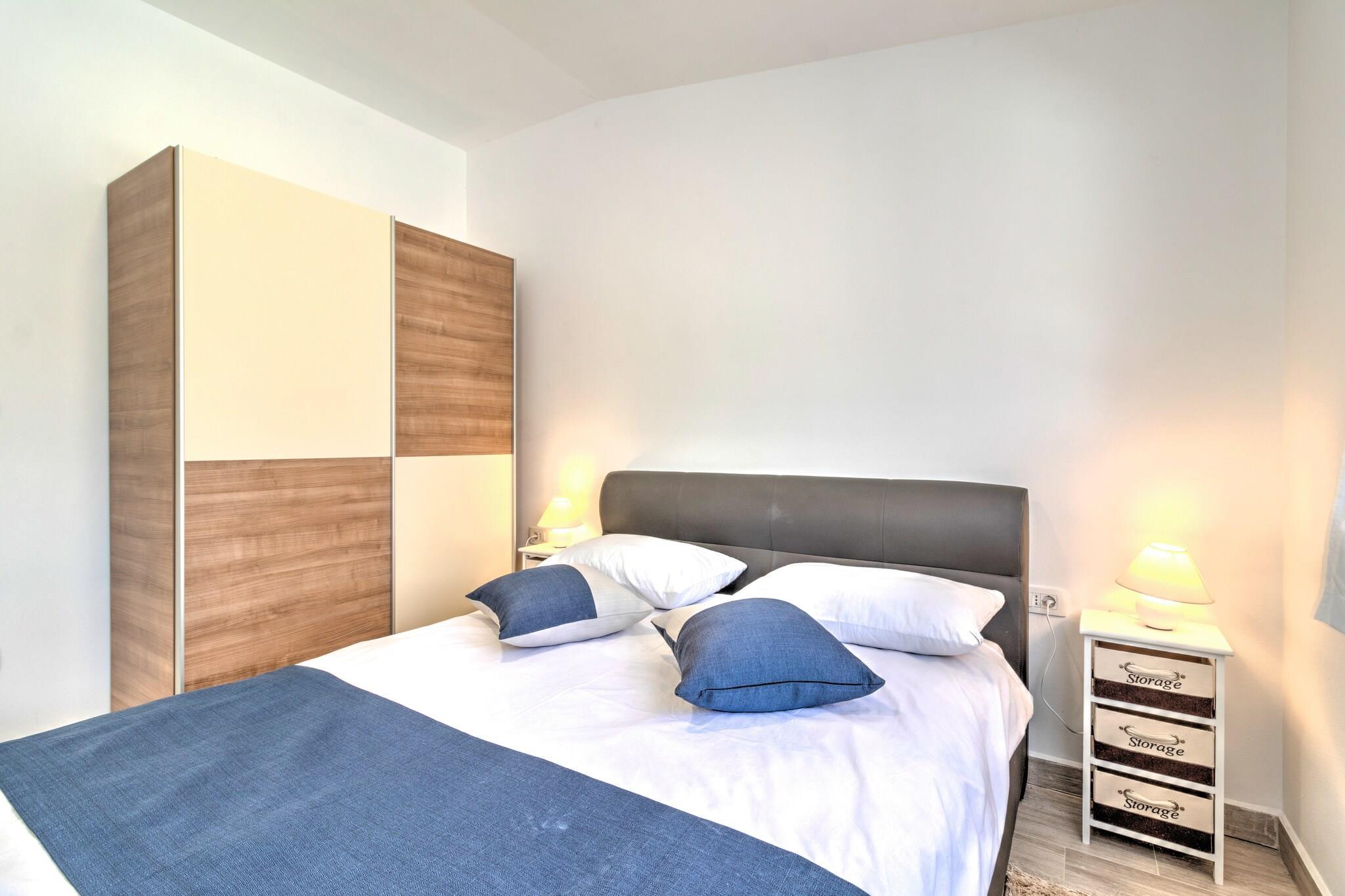Dette kjæledyrvennlige feriehuset for seks gjester ligger i den sjarmerende kystbyen Banjole, og tilbyr en perfekt blanding av avslapning og eventyr. Bare 1 km fra stranden og 2 km fra Pula, gir det enkel tilgang til fantastiske kystlandskap, historiske steder og levende lokal kultur. Enten du slapper av på den solfylte terrassen, nyter utendørsaktiviteter eller utforsker attraksjoner i nærheten, garanterer dette tilfluktsstedet et minneverdig opphold med gratis Wi-Fi og moderne bekvemmeligheter. Innvendig har hjemmet en romslig stue og soverom med en sammenleggbar dobbelseng, TV og klimaanlegg, et velutstyrt kjøkken med vannkoker, kokende vannkran, kaffemaskin, stekeovn, mikrobølgeovn, oppvaskmaskin og kjøleskap, og et soverom med køyesenger eller to enkeltsenger. Hovedsoverommet har en king-size-seng og et eget bad med badekar eller dusj og toalett, supplert av et ekstra bad for enkelhets skyld. Utendørs kan gjestene slappe av på terrassen med hagemøbler, solsenger og grill, eller nyte trampoline, tennisbane, fotballmål og lekeutstyr. I nærheten viser Augustus-tempelet utsøkt romersk arkitektur, mens Brijuni-øyene tilbyr fantastisk natur og historiske skatter. Vandre gjennom Sergii-buen, en praktfull triumfbue fra antikken. For å spise kan du unne deg noe på Nina Pizzeria, kjent for sine italienske smaker, eller nyte fersk sjømat på Konoba Sidro. Enten du utforsker... Enten det er historie eller avslapning ved kysten, er dette feriehuset det ultimate tilfluktsstedet ved Adriaterhavet.