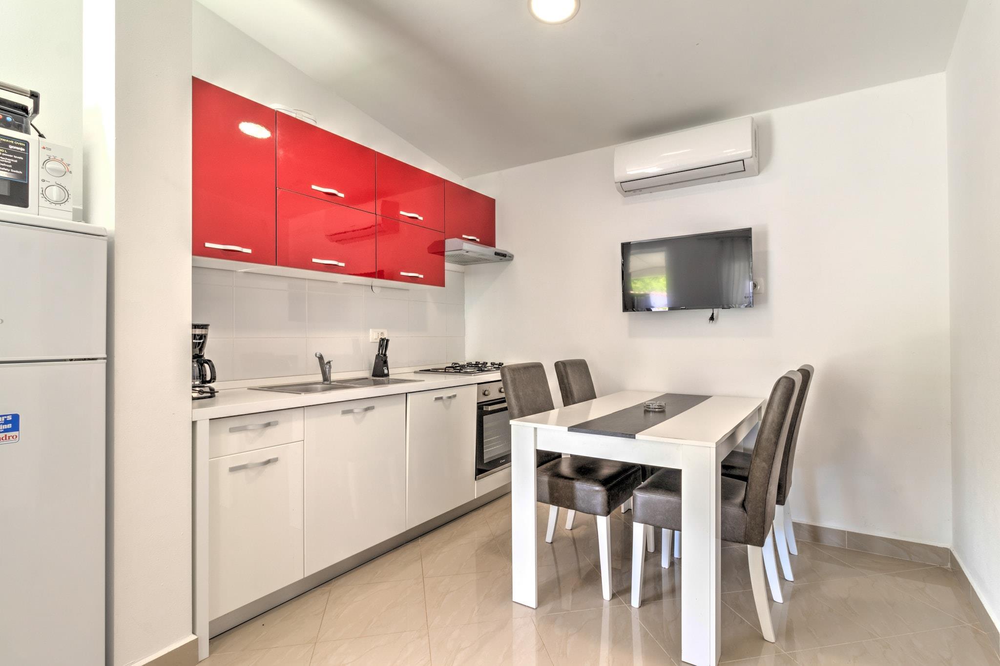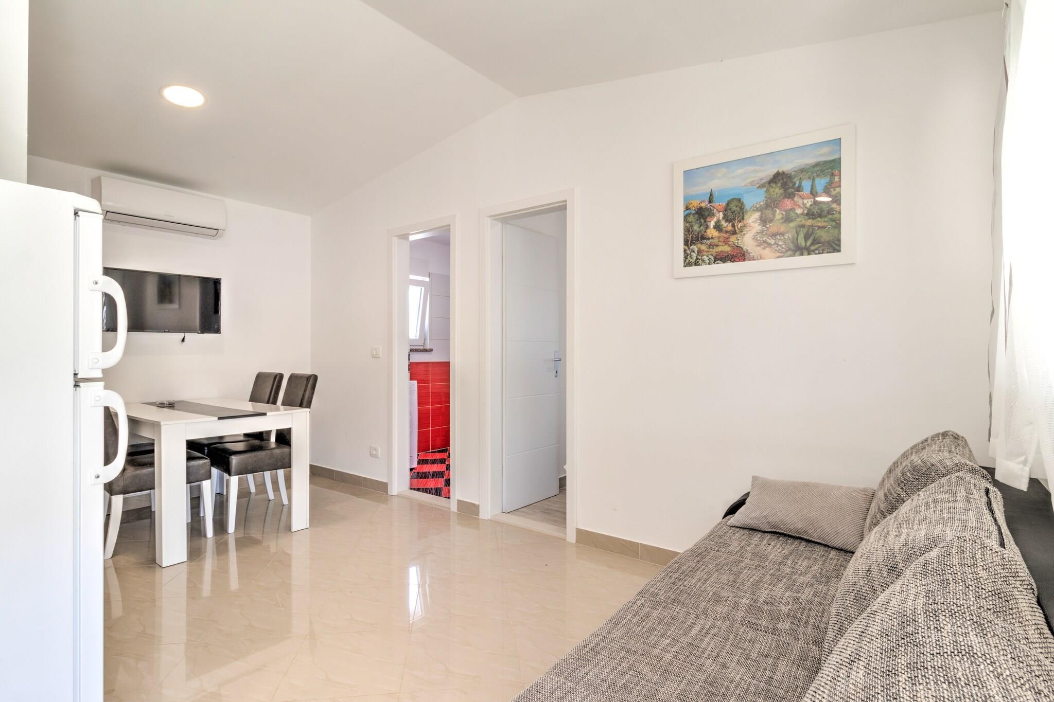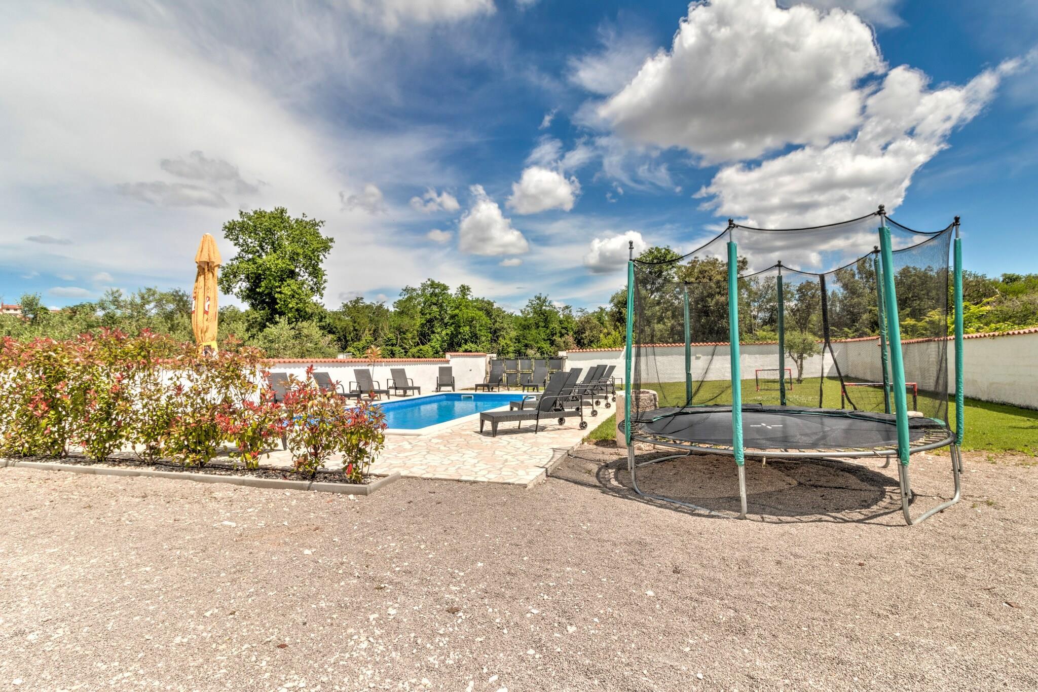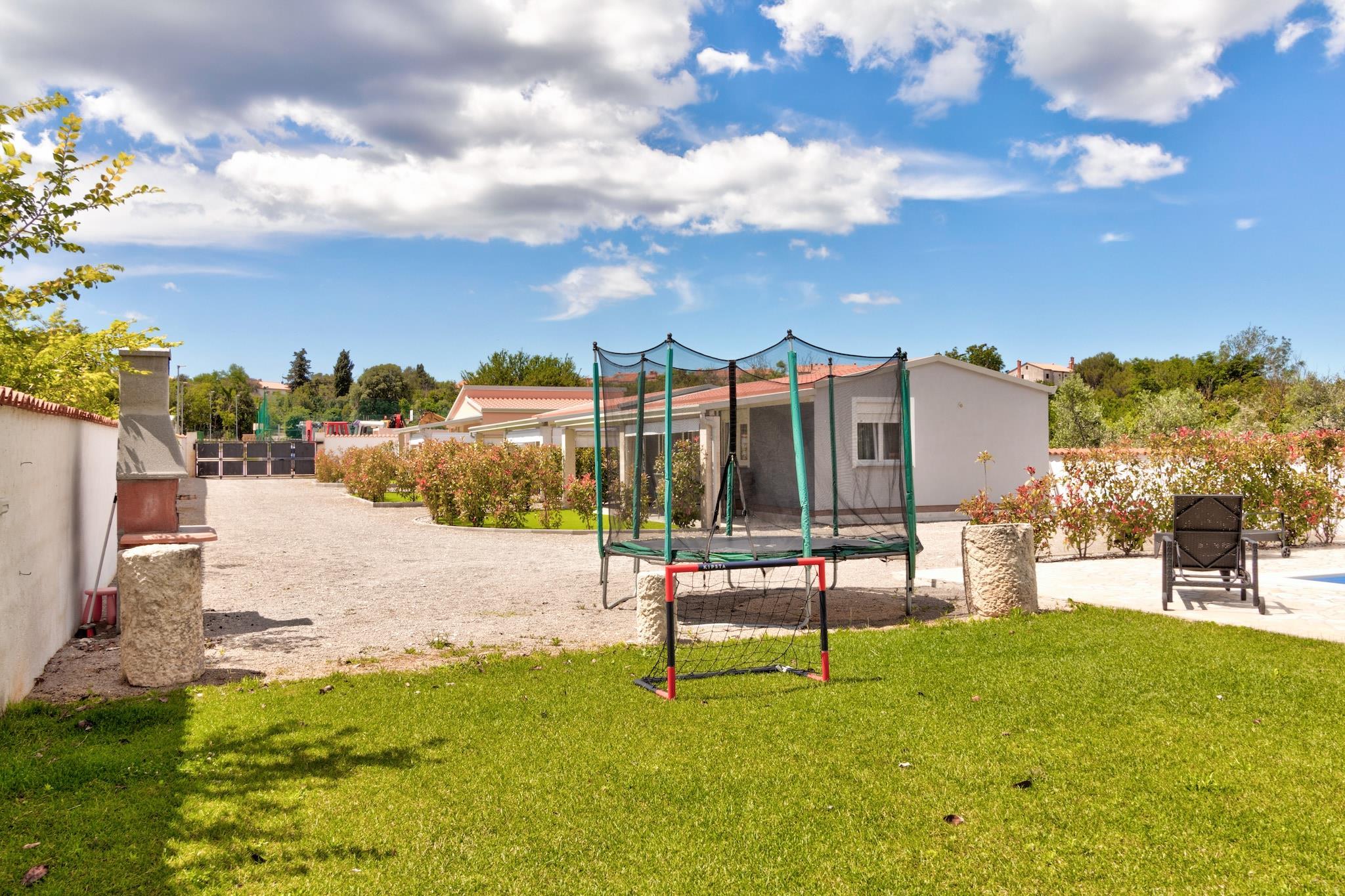Dette kjæledyrvennlige feriehuset for seks gjester ligger i den sjarmerende kystbyen Banjole, og tilbyr en perfekt blanding av avslapning og eventyr. Bare 1 km fra stranden og 2 km fra Pula, gir det enkel tilgang til fantastiske kystlandskap, historiske steder og levende lokal kultur. Enten du slapper av på den solfylte terrassen, nyter utendørsaktiviteter eller utforsker attraksjoner i nærheten, garanterer dette tilfluktsstedet et minneverdig opphold med gratis Wi-Fi og moderne bekvemmeligheter. Innvendig har hjemmet en romslig stue og soverom med en sammenleggbar dobbelseng, TV og klimaanlegg, et velutstyrt kjøkken med vannkoker, kokende vannkran, kaffemaskin, stekeovn, mikrobølgeovn, oppvaskmaskin og kjøleskap, og et soverom med køyesenger eller to enkeltsenger. Hovedsoverommet har en king-size-seng og et eget bad med badekar eller dusj og toalett, supplert av et ekstra bad for enkelhets skyld. Utendørs kan gjestene slappe av på terrassen med hagemøbler, solsenger og grill, eller nyte trampoline, tennisbane, fotballmål og lekeutstyr. I nærheten viser Augustus-tempelet utsøkt romersk arkitektur, mens Brijuni-øyene tilbyr fantastisk natur og historiske skatter. Vandre gjennom Sergii-buen, en praktfull triumfbue fra antikken. For å spise kan du unne deg noe på Nina Pizzeria, kjent for sine italienske smaker, eller nyte fersk sjømat på Konoba Sidro. Enten du utforsker... Enten det er historie eller avslapning ved kysten, er dette feriehuset det ultimate tilfluktsstedet ved Adriaterhavet.