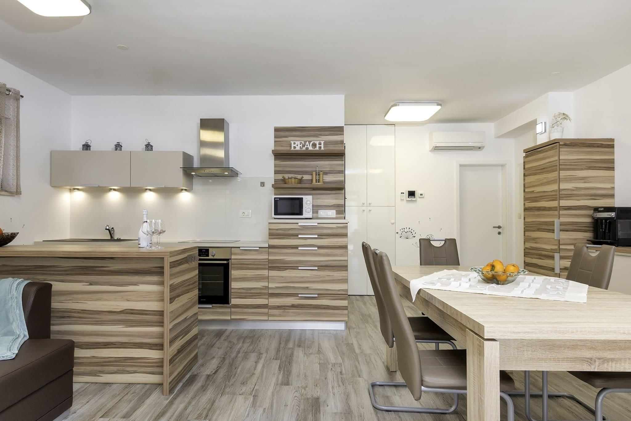 Denne smakfullt innredede leiligheten i Banjole tilbyr et komfortabelt opphold for opptil 6 gjester. Med 3 soverom gir det god plass for familier eller grupper. Leiligheten har et fullt utstyrt kjøkken med moderne apparater, inkludert kjøleskap, mikrobølgeovn, stekeovn, fryser, oppvaskmaskin og kaffemaskin, noe som gjør den ideell for å tilberede hjemmelagde måltider. Gjestene kan slappe av i den koselige stuen, nyte terrassen med utsikt over hagen eller ta en dukkert i det private svømmebassenget. Eiendommen inkluderer også utemøbler, en grill og Wi-Fi for ekstra bekvemmelighet. Denne leiligheten ligger kun 150 meter fra klippestranden "Volme" og nær en restaurant, og er perfekt for strandelskere. Et supermarked ligger bare 500 meter unna, og området er kjent for sin familievennlige atmosfære. Leiligheten er lett tilgjengelig, med flyplassen 18 km unna, og tilbyr et fredelig tilfluktssted samtidig som den er nær viktige fasiliteter. Eiendommen har moderne fasiliteter som klimaanlegg, satellitt-TV og vaskemaskin. Det åpne kjøkkenet er utstyrt med en rekke kjøkkenutstyr og redskaper, som sikrer alt du trenger for et komfortabelt opphold. Gjestene vil også ha tilgang til en utendørs parkeringsplass i samme bygning, som gir praktisk parkering. Enten du ønsker å utforske de nærliggende strendene eller bare slappe av, tilbyr denne leiligheten den perfekte setting for en minneverdig ferie.