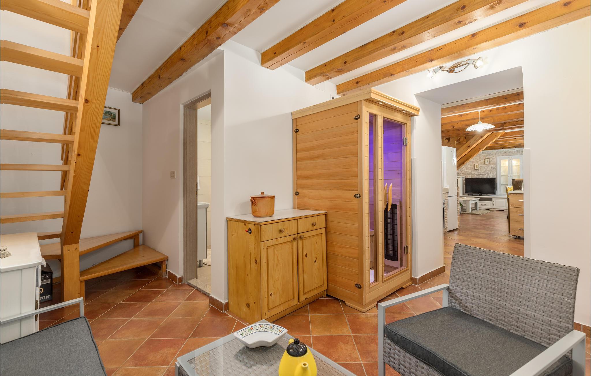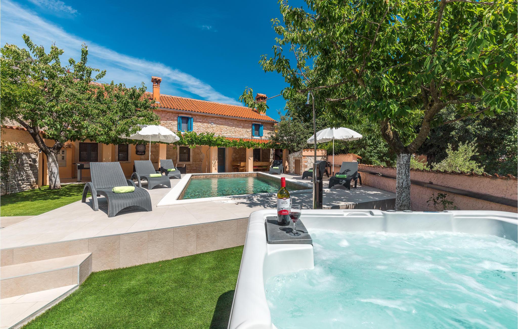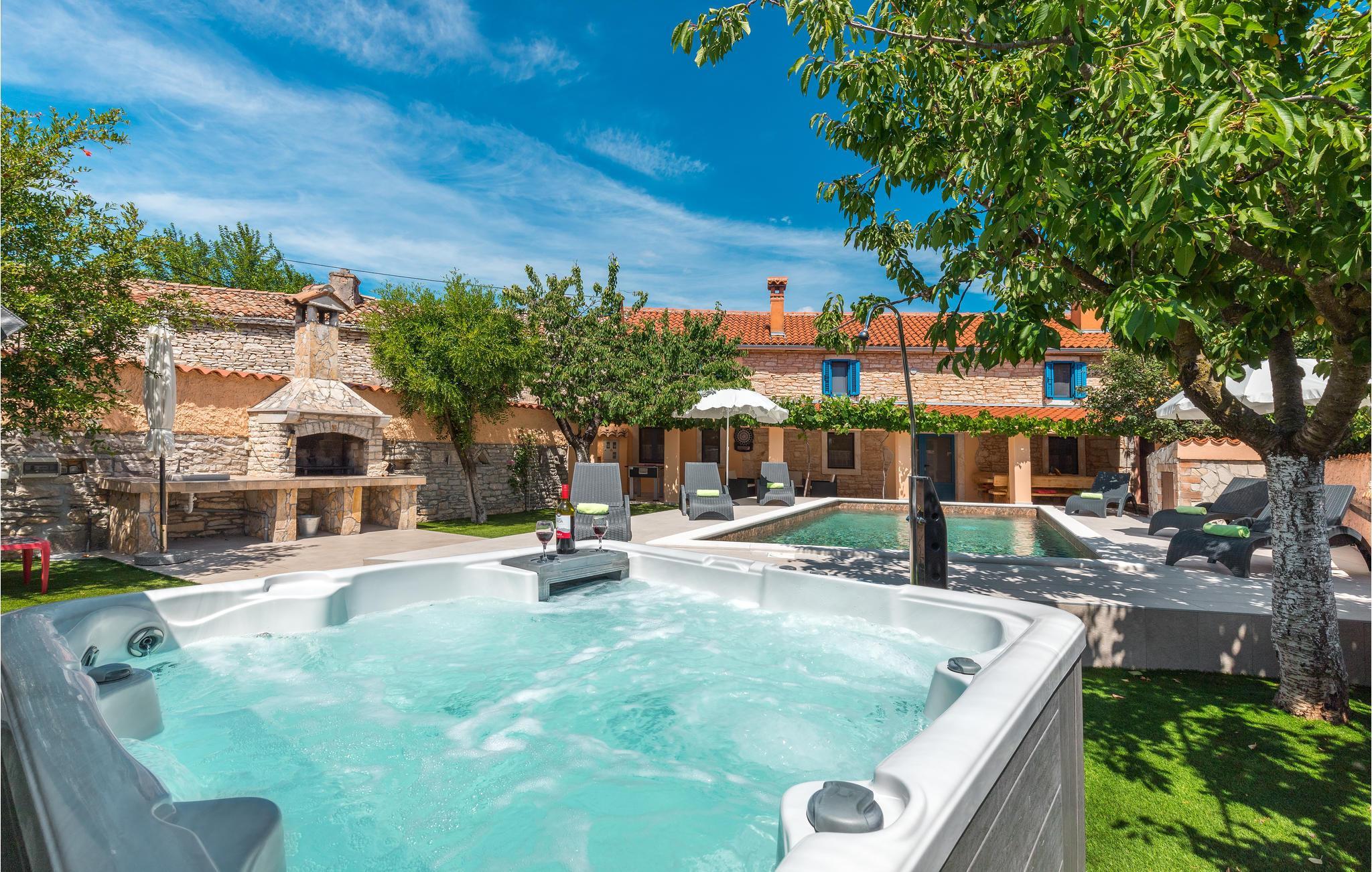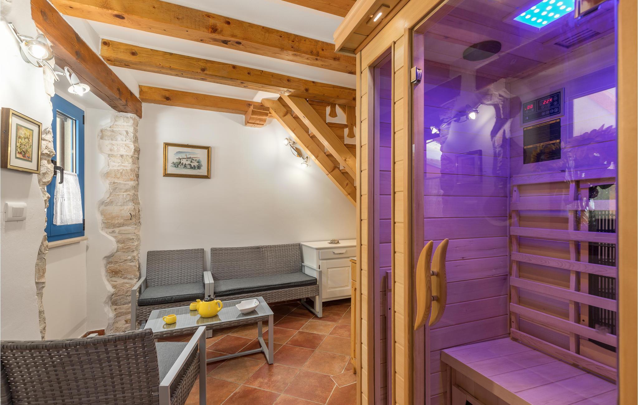 I hjertet av Istria, i en pittoresk landsby, langt borte fra hverdagens kjas og mas, finner du dette rustikke steinhuset, som er et ideelt tilbud for to familier eller en større gruppe venner. Den består av 2 boenheter med separate innganger. Bare nyt dagen på den skyggefulle terrassen, ha det gøy i bassenget eller i den infrarøde badstuen. Gå lange turer, utforsk de omkringliggende stedene på sykkel, ta en piknik på en eng eller gå til stranden. Fire sykler står til din disposisjon. Bare nyt det sunne livet på landet i Istria og la kropp og sjel slappe av. I Barban kan du besøke mange monumenter fra barokken og den gotiske perioden, som fresker og glagolitiske opptegnelser, kirker og palasser, samt bymurene og ridderkonkurransen "Trka na prstenac". Vi anbefaler å besøke dryppsteinsgrotten i Baredine.