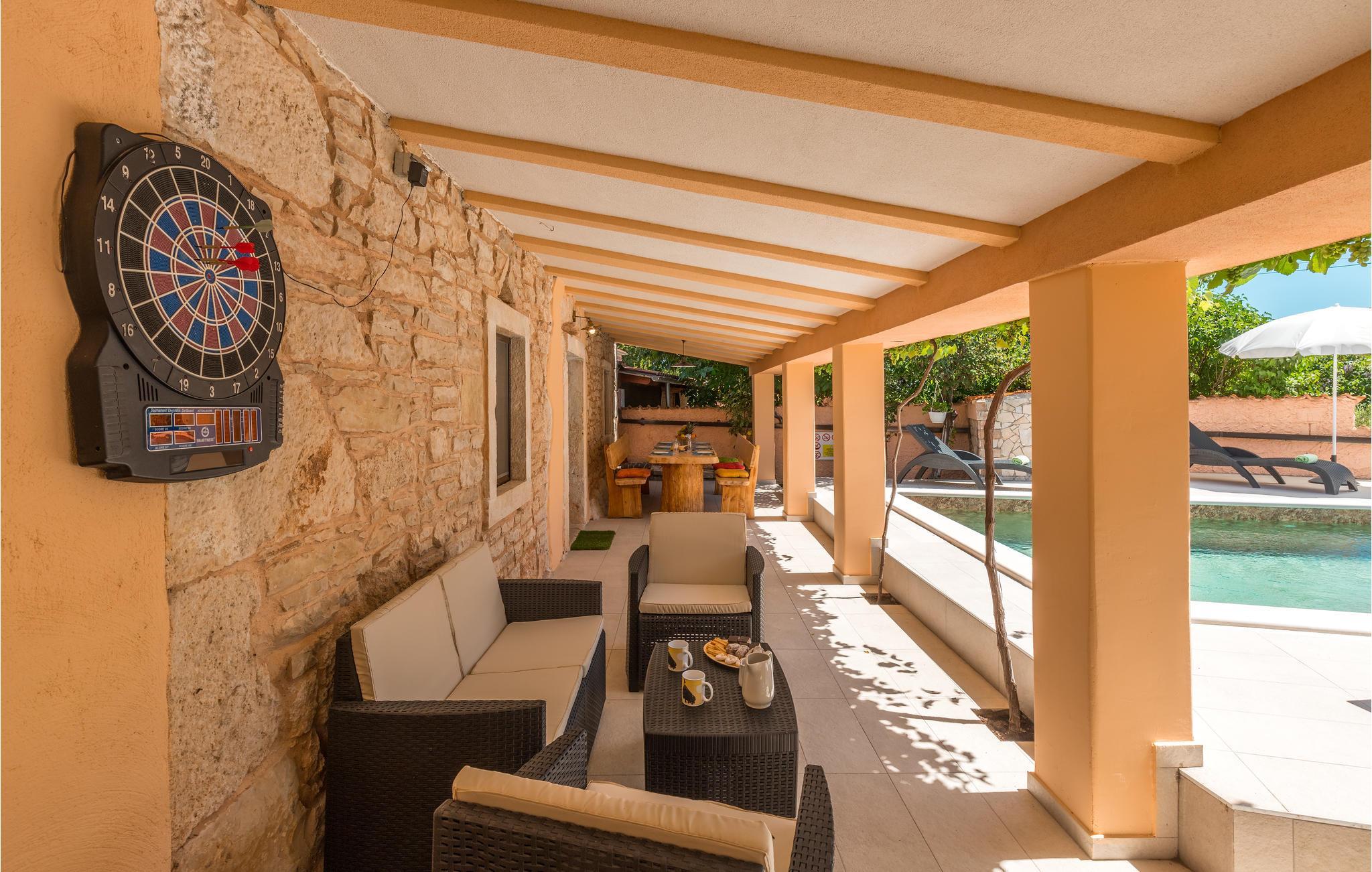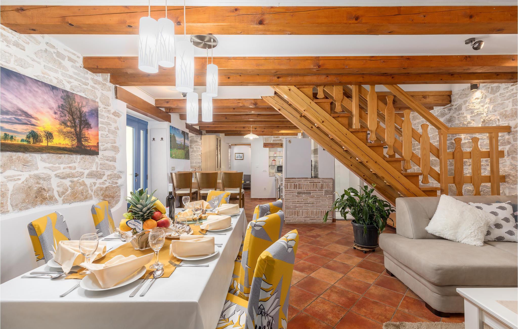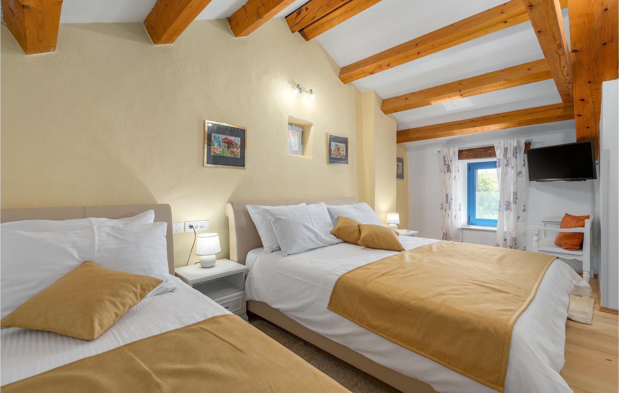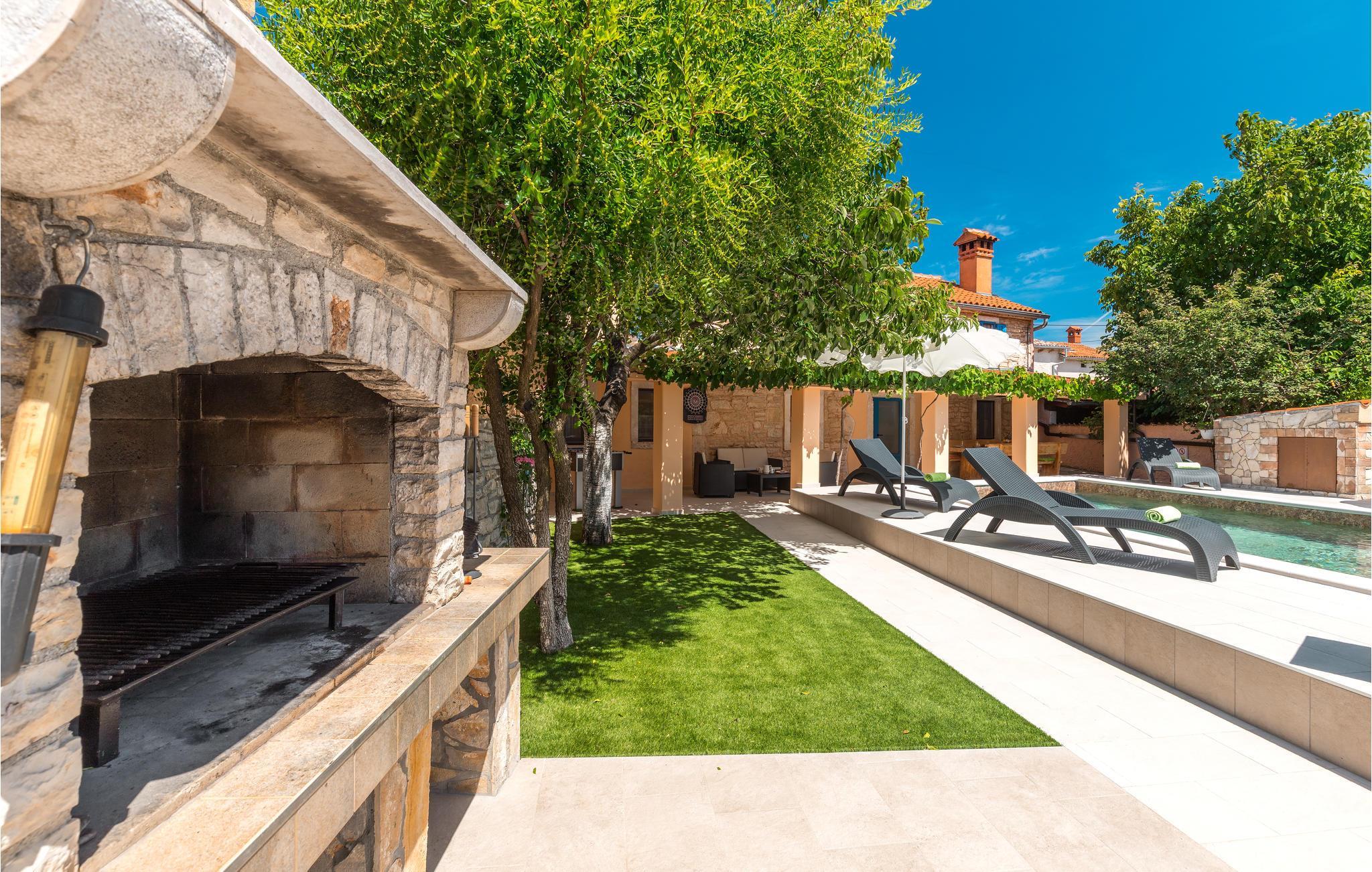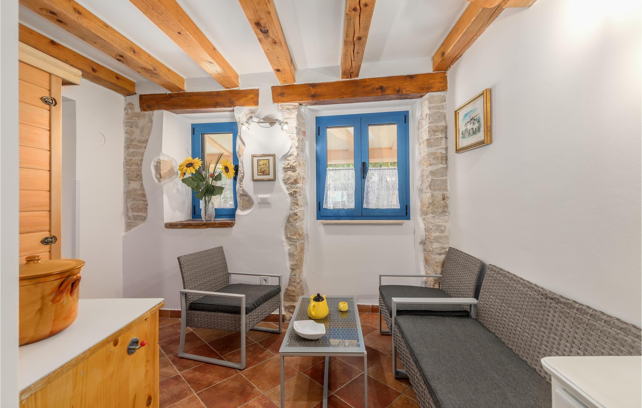 I hjertet av Istria, i en pittoresk landsby, langt borte fra hverdagens kjas og mas, finner du dette rustikke steinhuset, som er et ideelt tilbud for to familier eller en større gruppe venner. Den består av 2 boenheter med separate innganger. Bare nyt dagen på den skyggefulle terrassen, ha det gøy i bassenget eller i den infrarøde badstuen. Gå lange turer, utforsk de omkringliggende stedene på sykkel, ta en piknik på en eng eller gå til stranden. Fire sykler står til din disposisjon. Bare nyt det sunne livet på landet i Istria og la kropp og sjel slappe av. I Barban kan du besøke mange monumenter fra barokken og den gotiske perioden, som fresker og glagolitiske opptegnelser, kirker og palasser, samt bymurene og ridderkonkurransen "Trka na prstenac". Vi anbefaler å besøke dryppsteinsgrotten i Baredine.