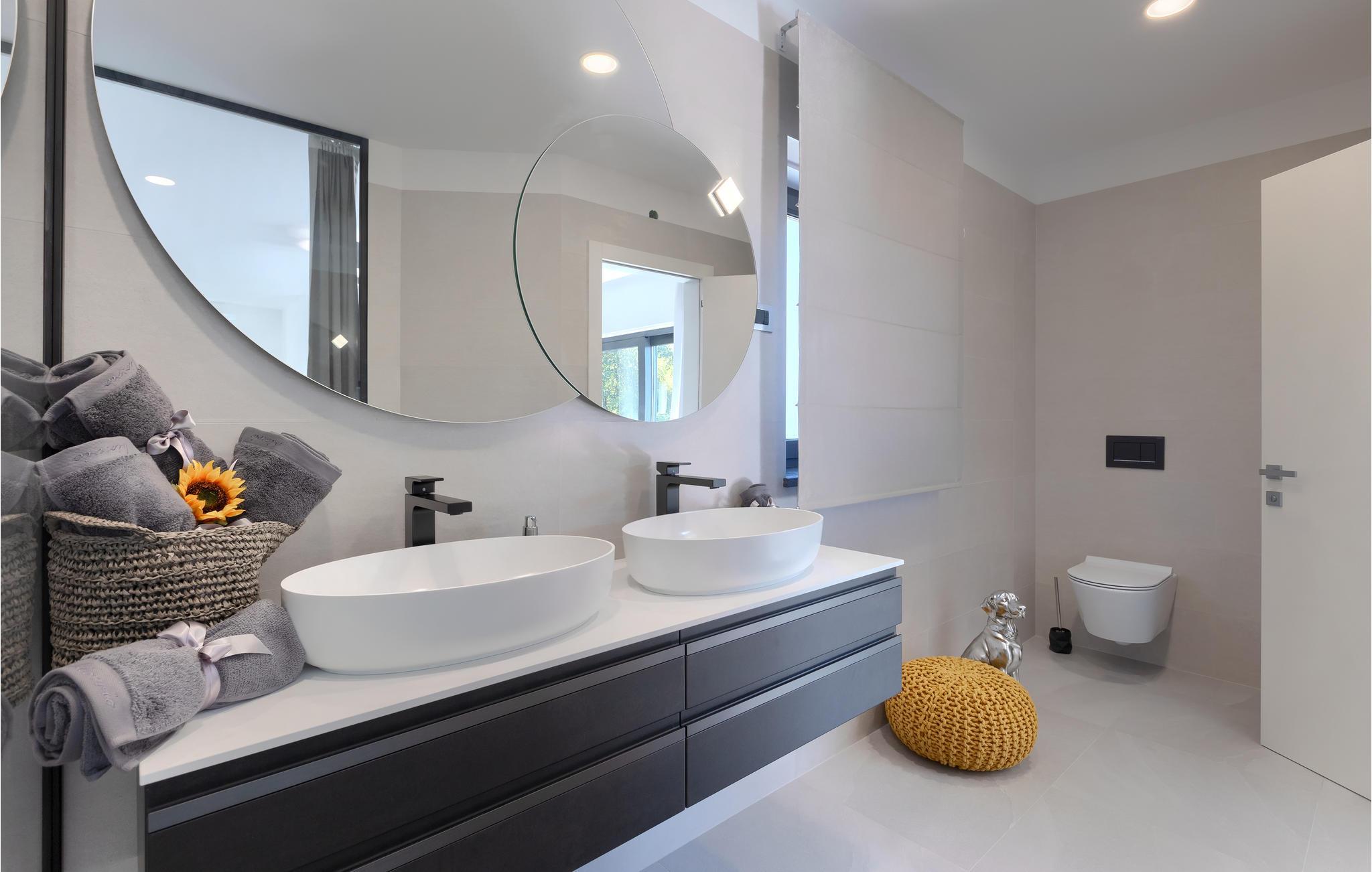 Du som liker ren og moderne design i lyse farger og vakre fargeinnslag, vil føle deg velkommen i dette fantastiske huset. I to etasjer kan du slappe av og nyte de flotte rommene på egen hånd. Føl deg som hjemme, enten det er i de vakre soverommene eller i første etasje, der stuen innbyr til opphold med sitt moderne kjøkken, lyse flisegulv og komfortable møbler.