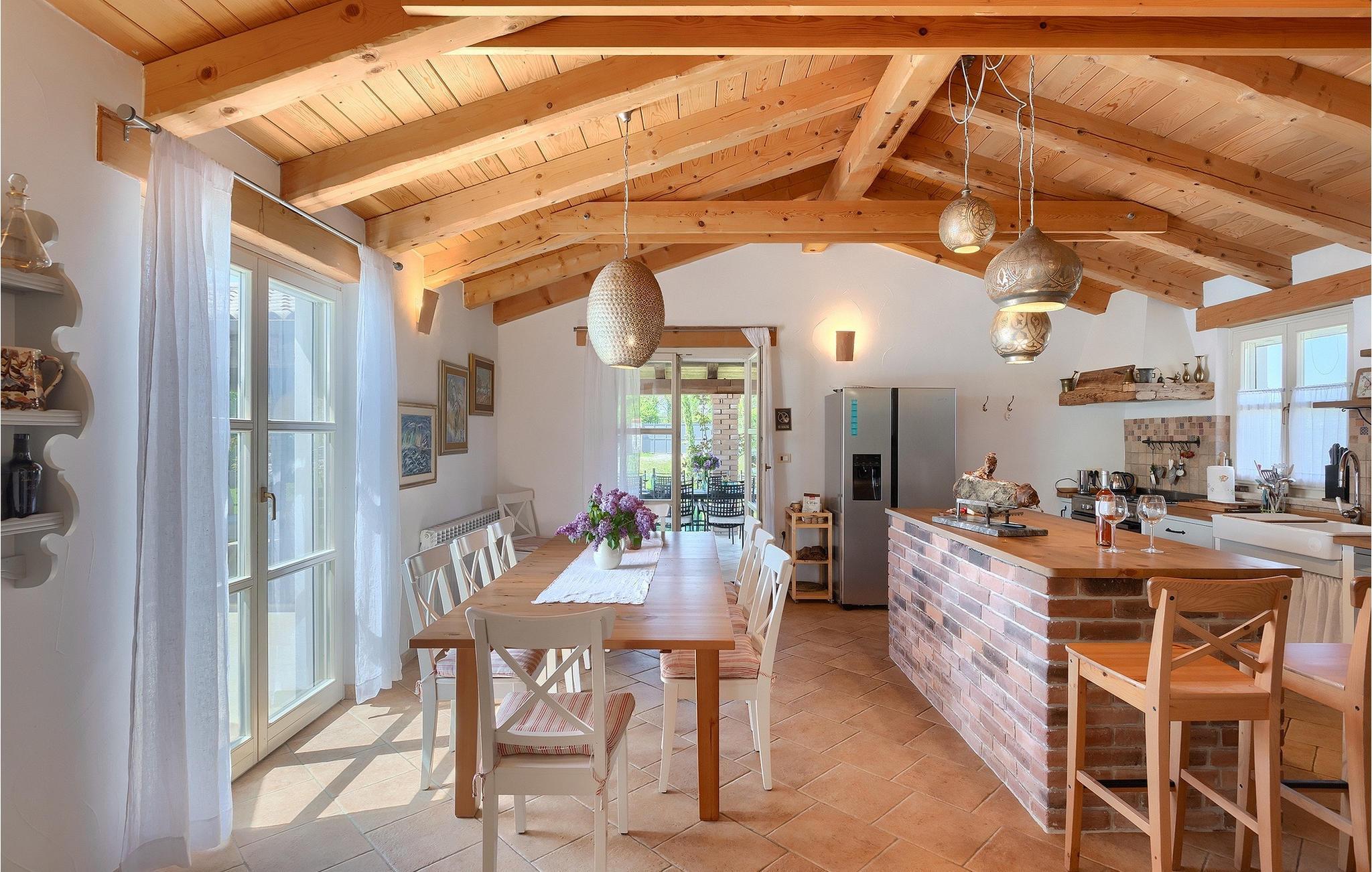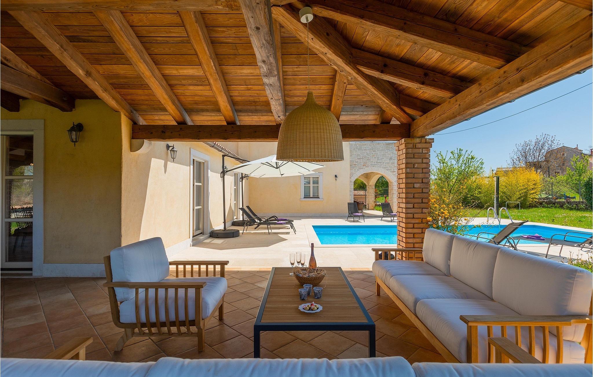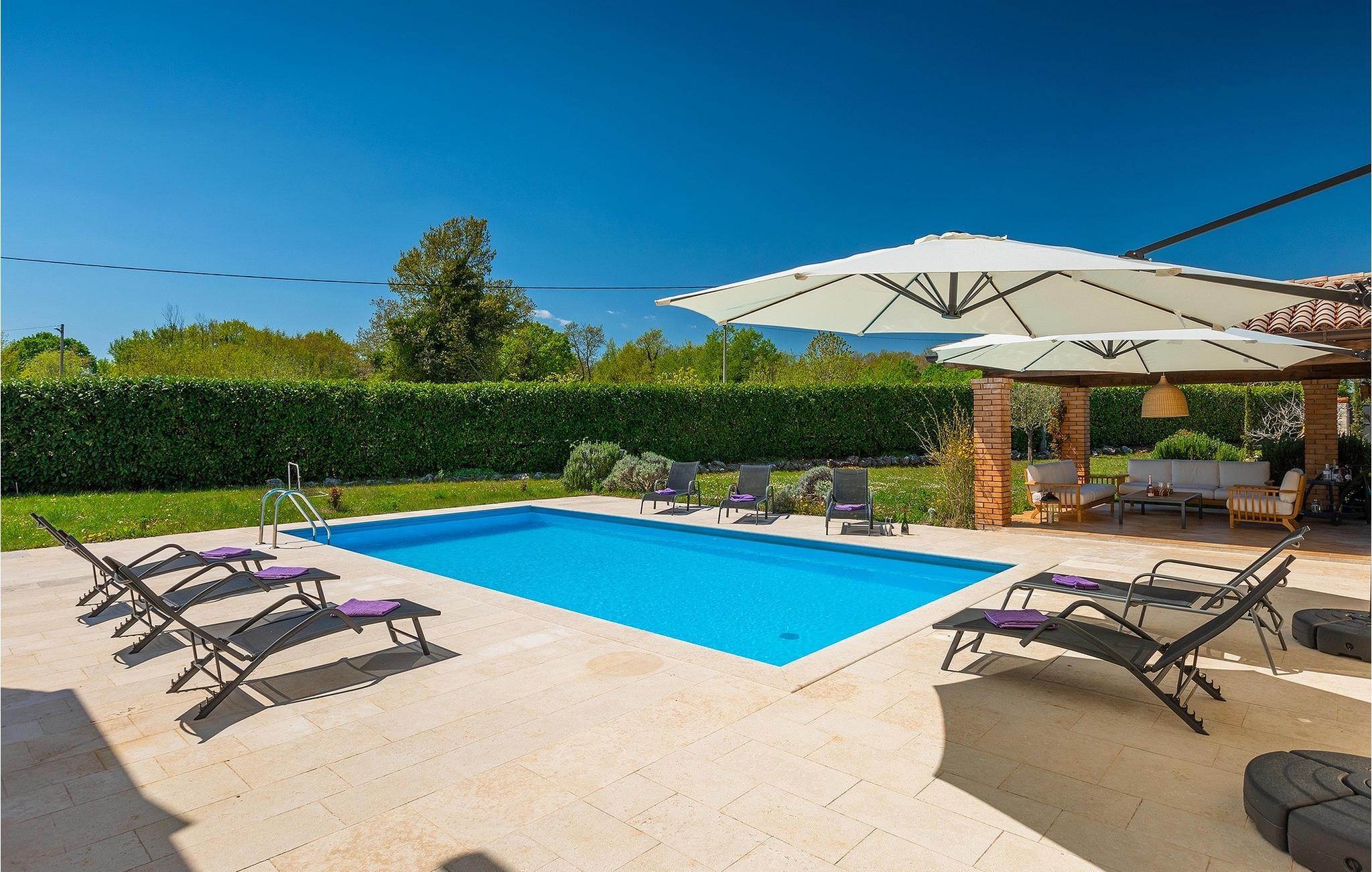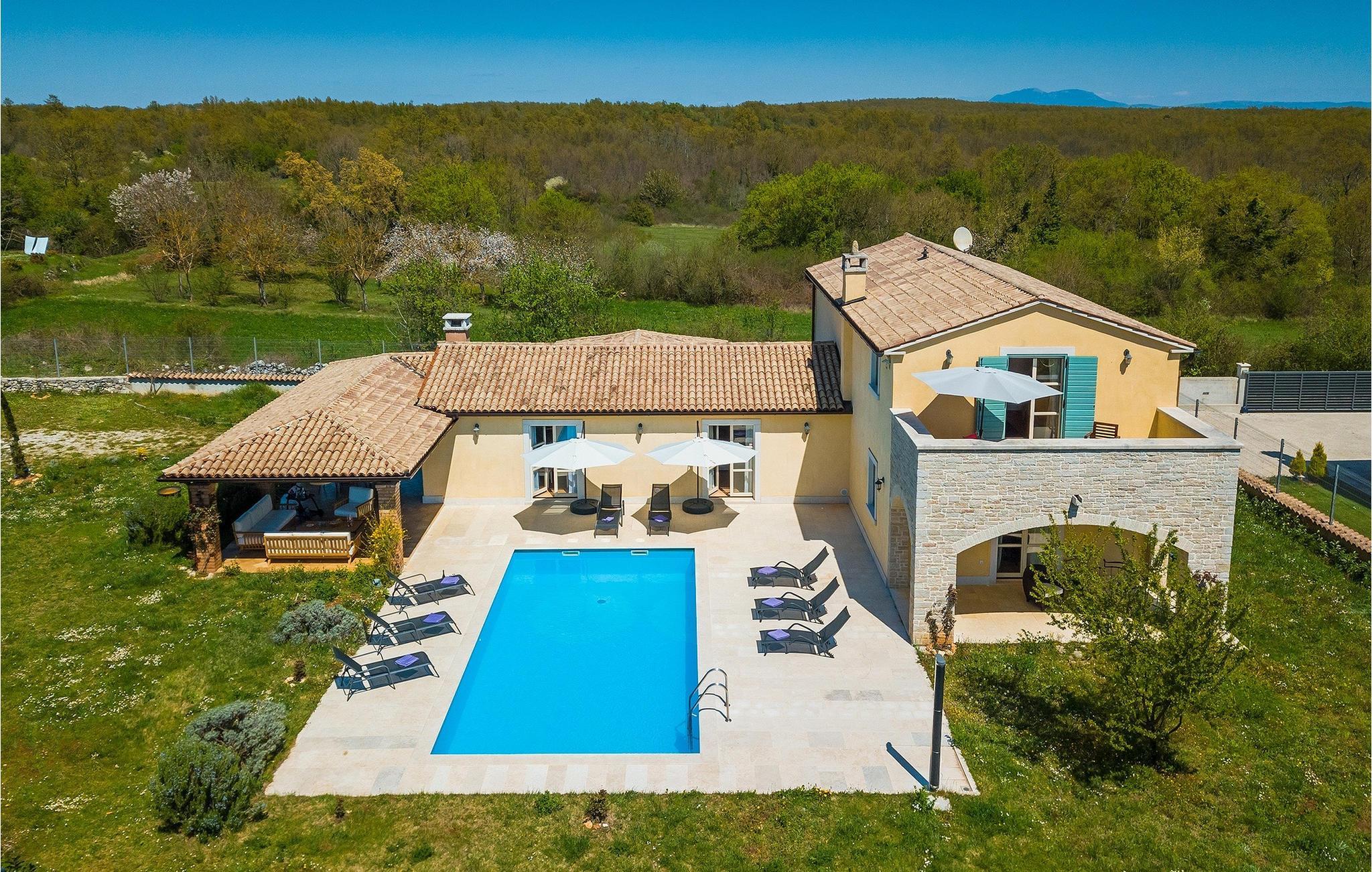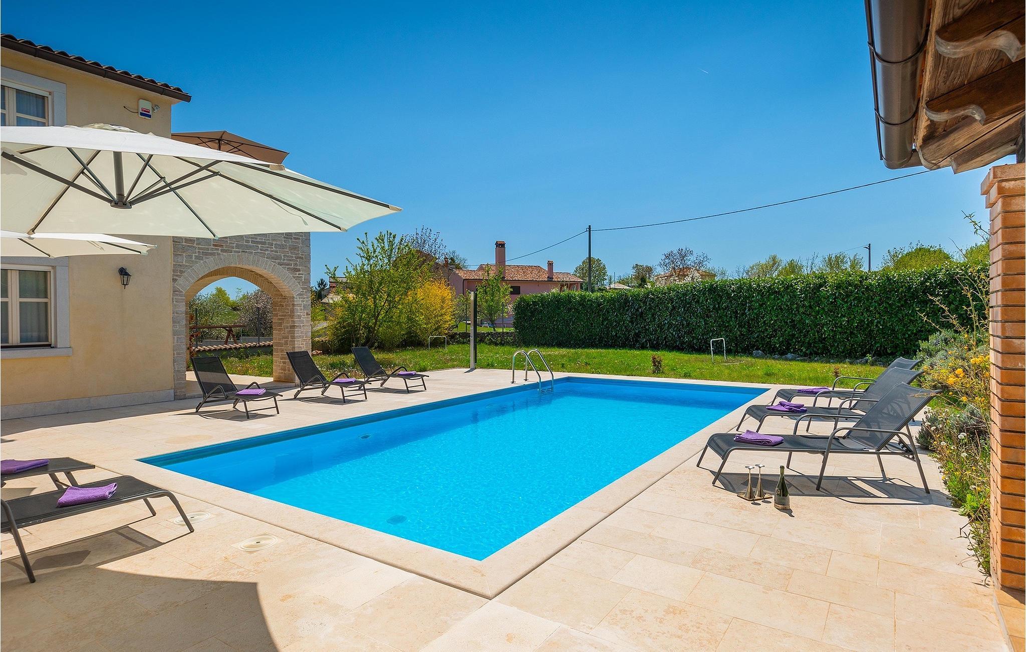Den vakre Villa Lavanda Savicenta ligger i den lille grenda Rojnici, i Barban kommune. Familievillaen har plass til opptil 10 personer totalt. Første etasje består av en romslig stue med peis, spiseplass, et fullt utstyrt kjøkken og to soverom med eget bad. I andre etasje finner du ytterligere to soverom, også med eget bad. Totalt har villaen 4 soverom, hvorav to er innredet med dobbeltseng og de to andre med to enkeltsenger. Foran villaen ligger et 40 m2 stort privat basseng hvor du kan ta deg en forfriskende dukkert eller slappe av på en av de komfortable solsengene. Ved siden av bassenget er det en overbygd spiseplass med en kullgrill hvor du kan tilberede deilige måltider for familie og venner. Villaen er det perfekte valget for en stor familie med barn eller en vennegjeng som ønsker å tilbringe en avslappende ferie i Istria. Den sjarmerende villaen ligger i den lille landsbyen Rojnii, i Barban kommune. Alle nødvendige fasiliteter som butikker, kafeer og restauranter ligger i nærheten av villaen. Hvis du ønsker å tilbringe ferien ved det turkise Adriaterhavet, ligger den første stranden 18 kilometer unna i Trget. Villaens beliggenhet er et ideelt utgangspunkt for mange dagsturer. Vi anbefaler å besøke kystbyer som Pula med sitt praktfulle amfiteater, Rovinj med sine mange fargerike hus og Pore med Eufrasius-basilikaen, som står på UNESCOs verdensarvliste. Et uunnværlig reisemål for alle naturelskere er Istrias eneste nasjonalpark, Brijuni. Dette magiske stedet vil glede deg med sine vakre strender, uberørte natur og mange ville dyr. Det sentrale Istria er ideelt for alle som elsker aktiv sport og gastronomi. Besøk Mirna-elvedalen og de mange bakketoppbyene som Motovun, Gronjan og Buzet.