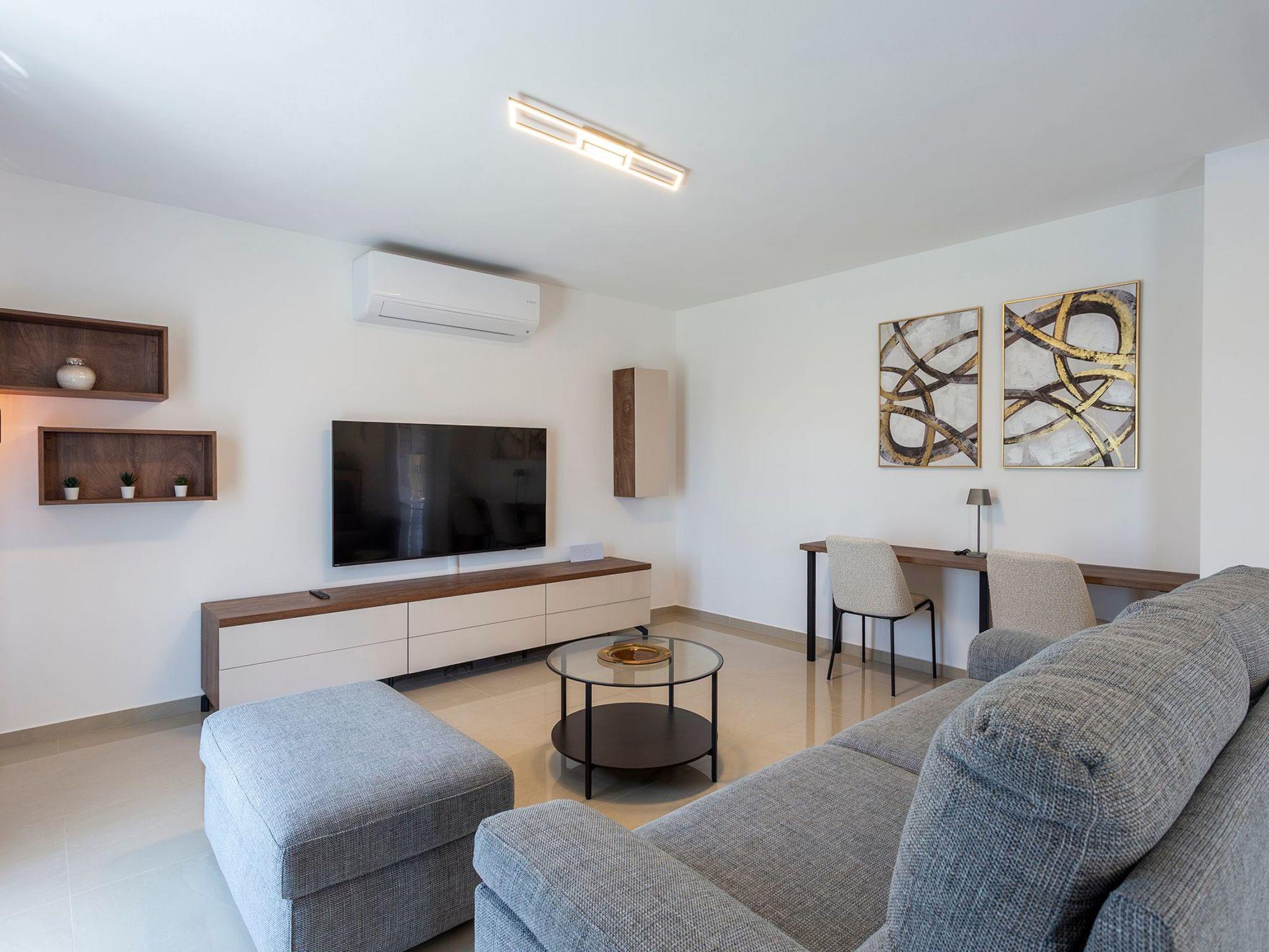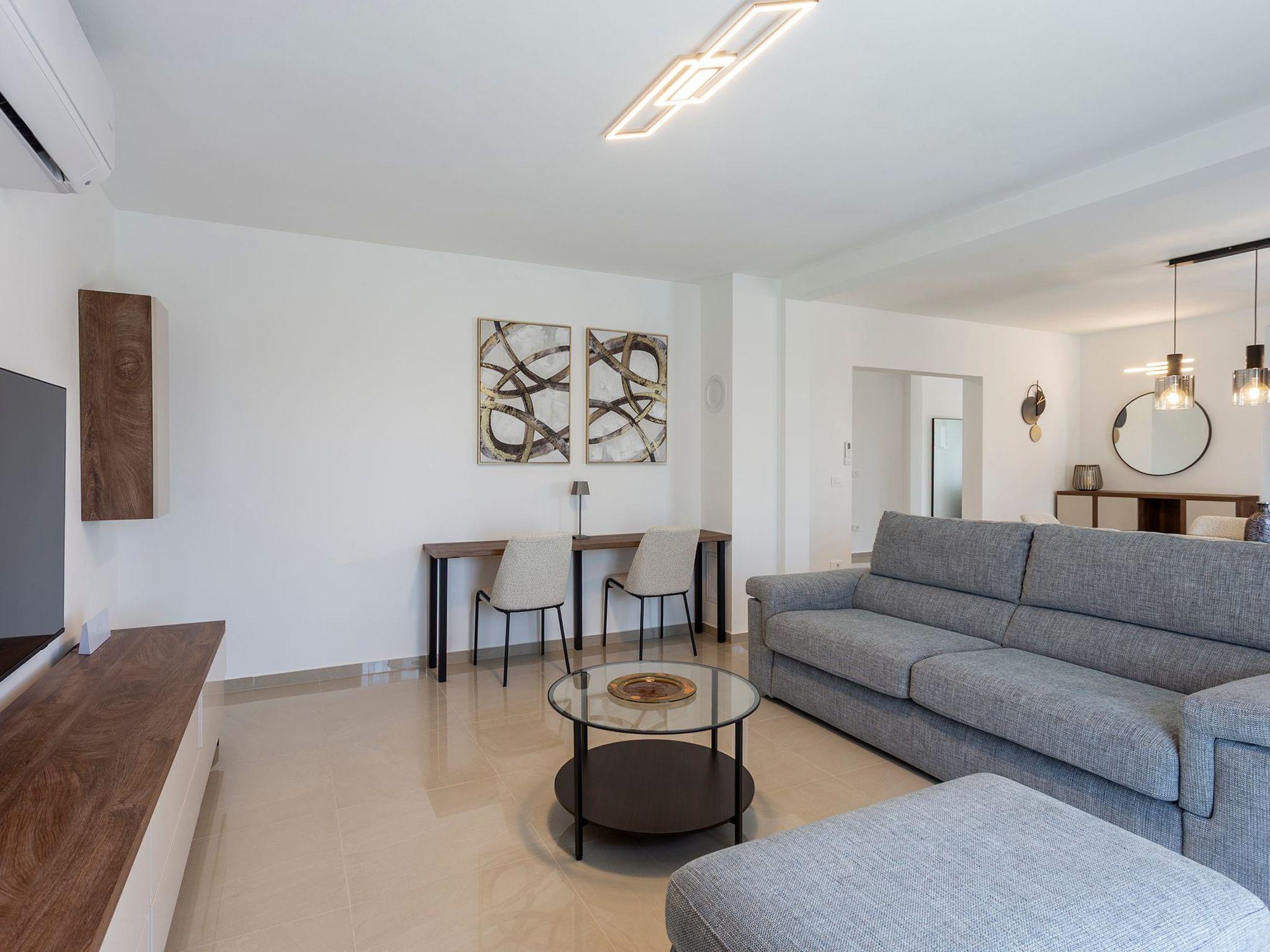 The exterior of the apartment is just as inviting. A fully fenced garden offers peace of mind for those bringing along a small canine companion, ensuring they can roam freely and safely. The terrace and balcony provide a lovely setting for enjoying your morning coffee or unwinding in the evening. For those who admire views from above, the roof terrace presents an exclusive spot to soak in the surroundings.