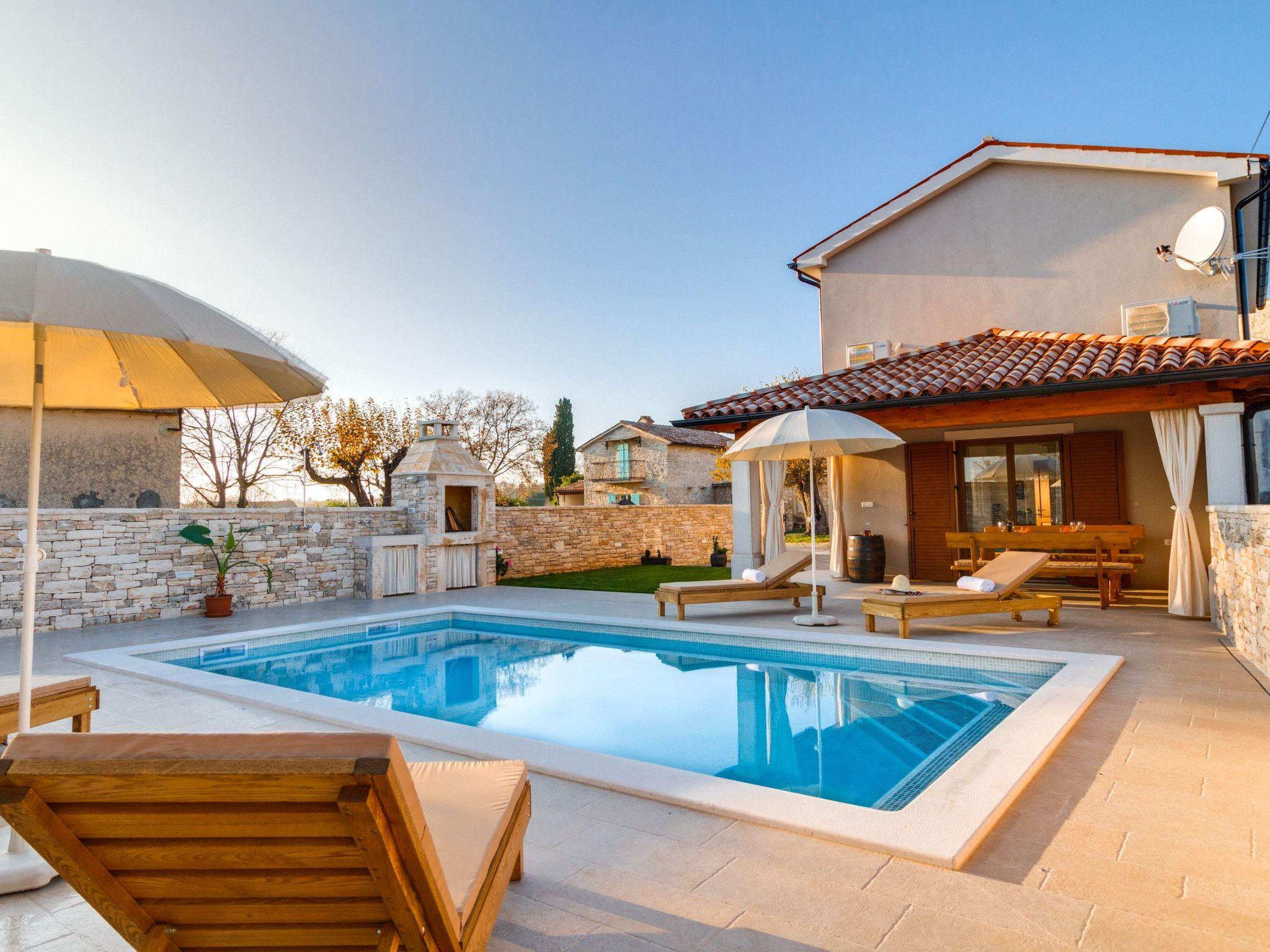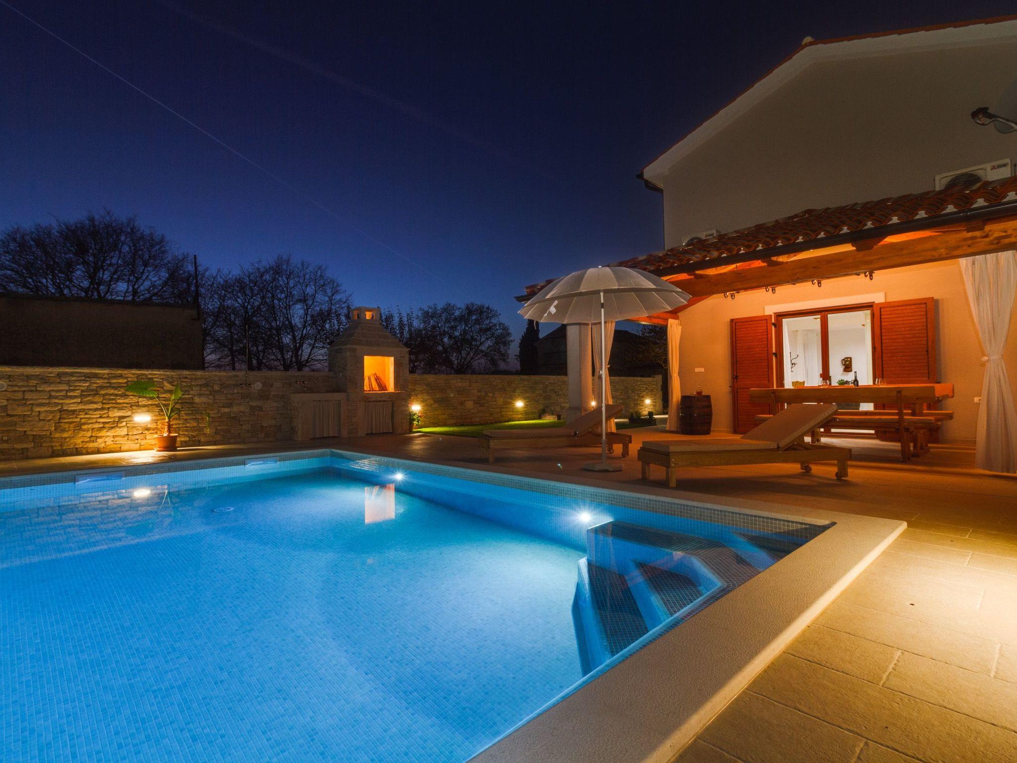 Villa has a large spacious terrace with outdoor fireplace (wood or electric grill), sink and dining area where you can relax with glass of delicious Istrian wine while still keeping an eye on your children in the pool. There is 27m2 big swimming pool with SALTWATER, loungers and parasols.There is 27m2 big swimming pool with SALTWATER, loungers and parasols.
