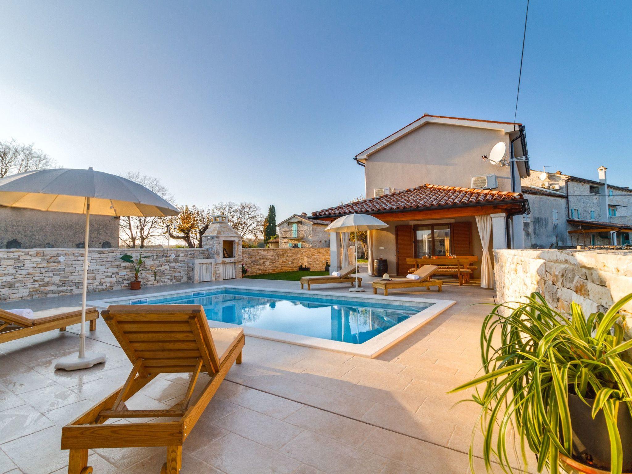 On ground floor there is a living room with sofa bed and flat screen satellite TV, a fully equipped hand made kitchen with traditional design, a dining area with large table and a toilet with washing machine.On the first floor, villa has two elegant designed bedrooms and a bathroom, and it is perfect for guests who are looking for their ideal istrian place.There is 27m2 big swimming pool with SALTWATER, loungers and parasols.The whole property is completely fenced with traditional istrian wall an offers complete peace and privacy.Villa is air conditioned, has free WIFI, PS4 and a private parking place.
