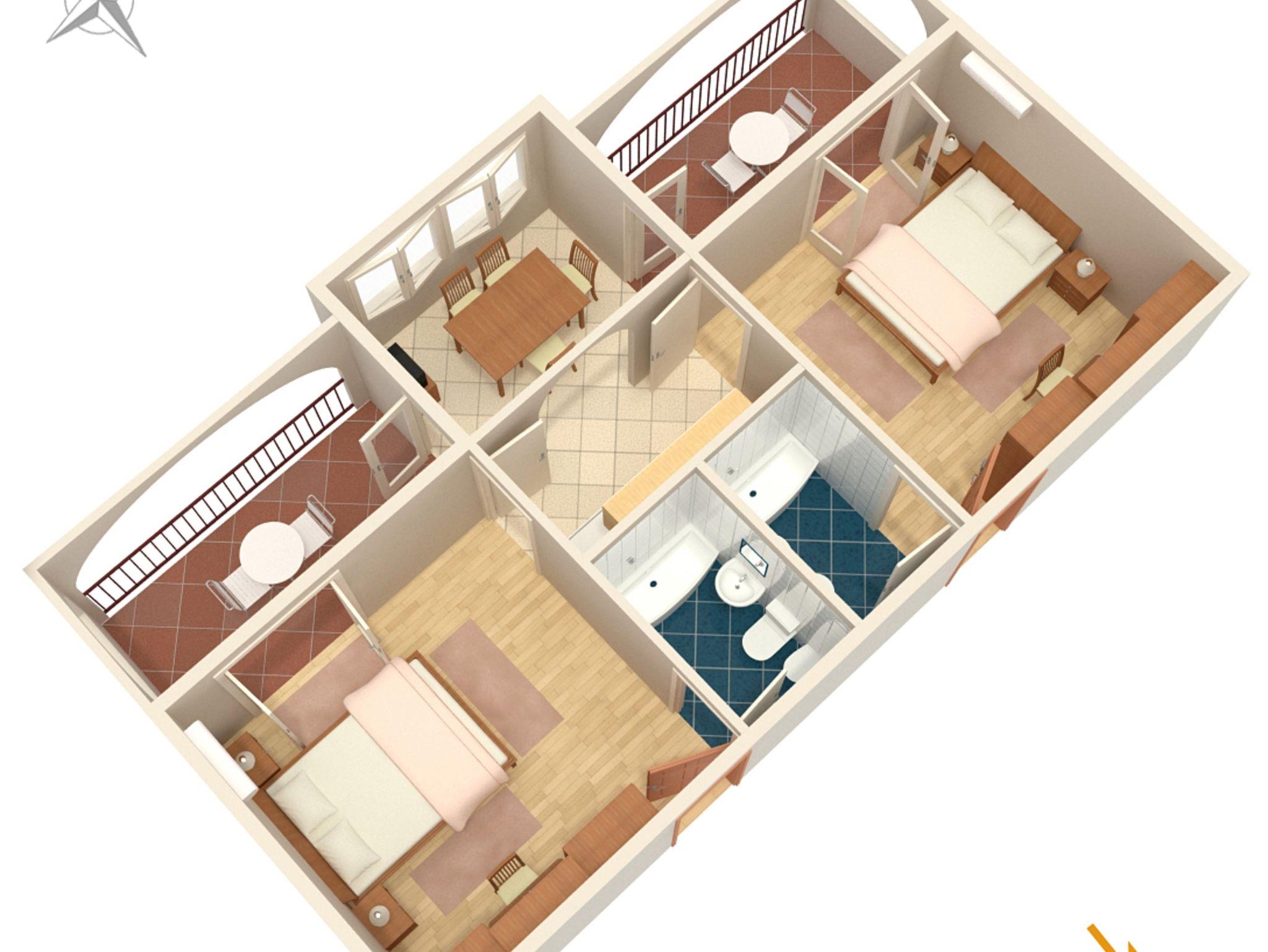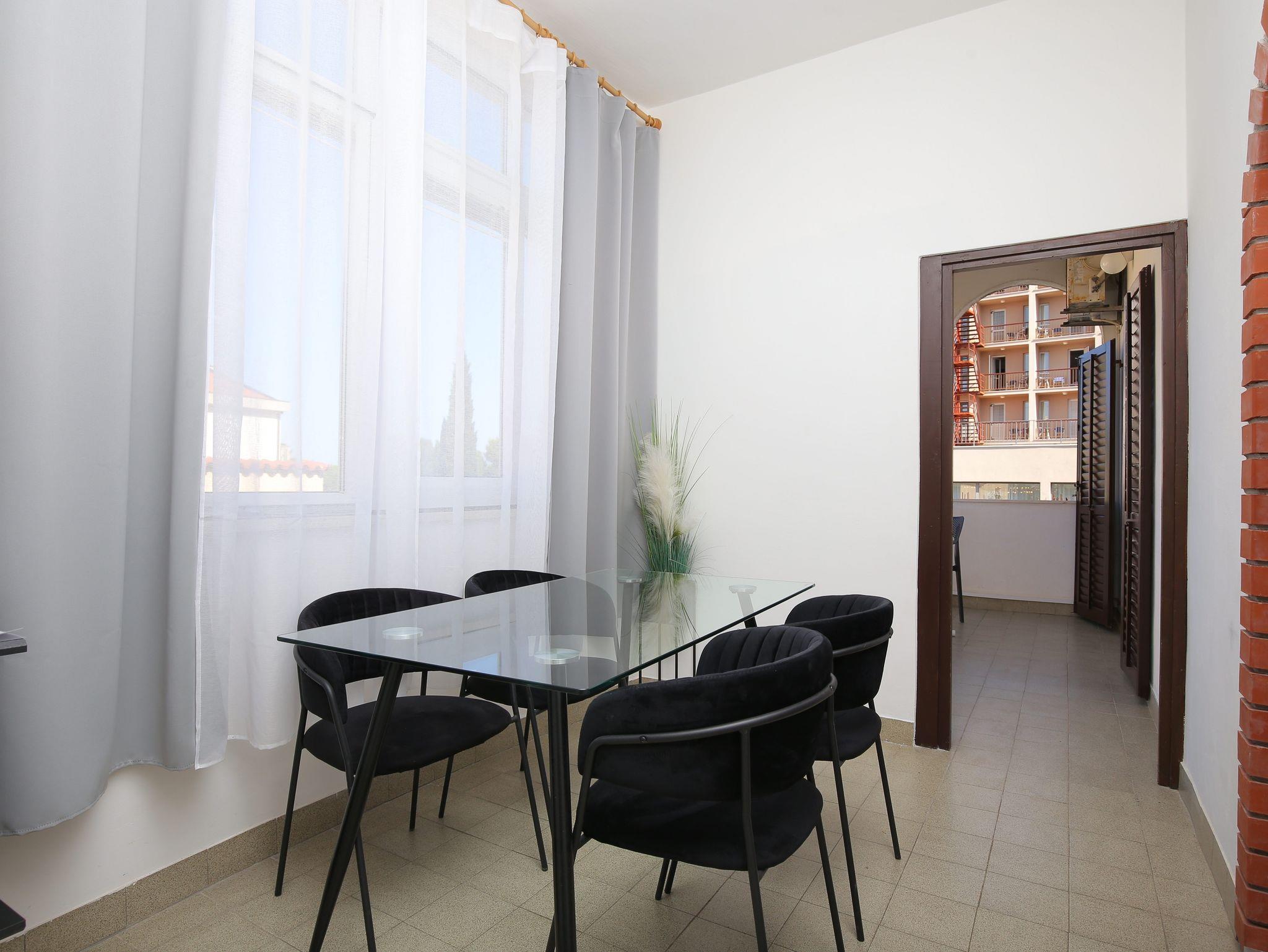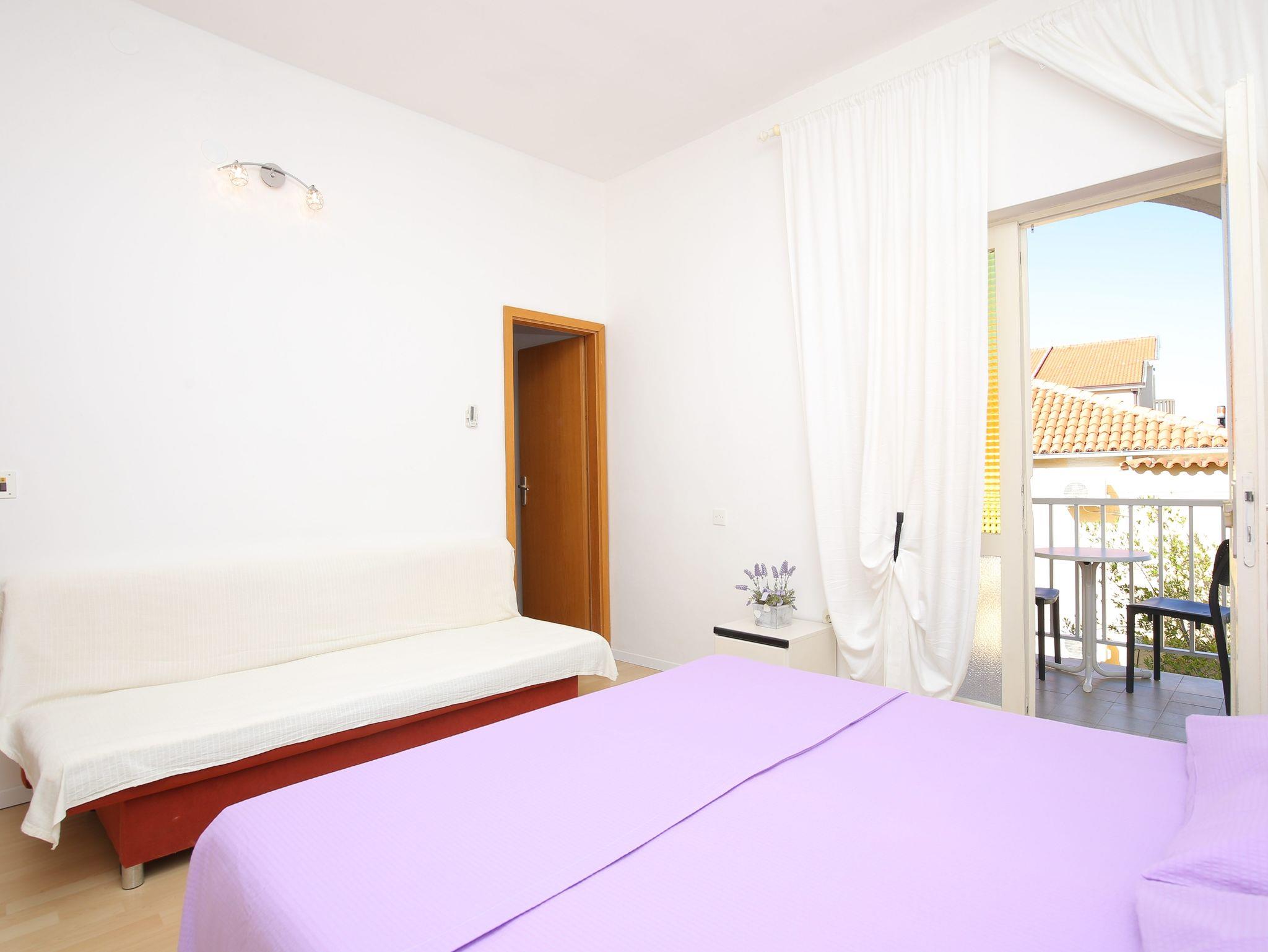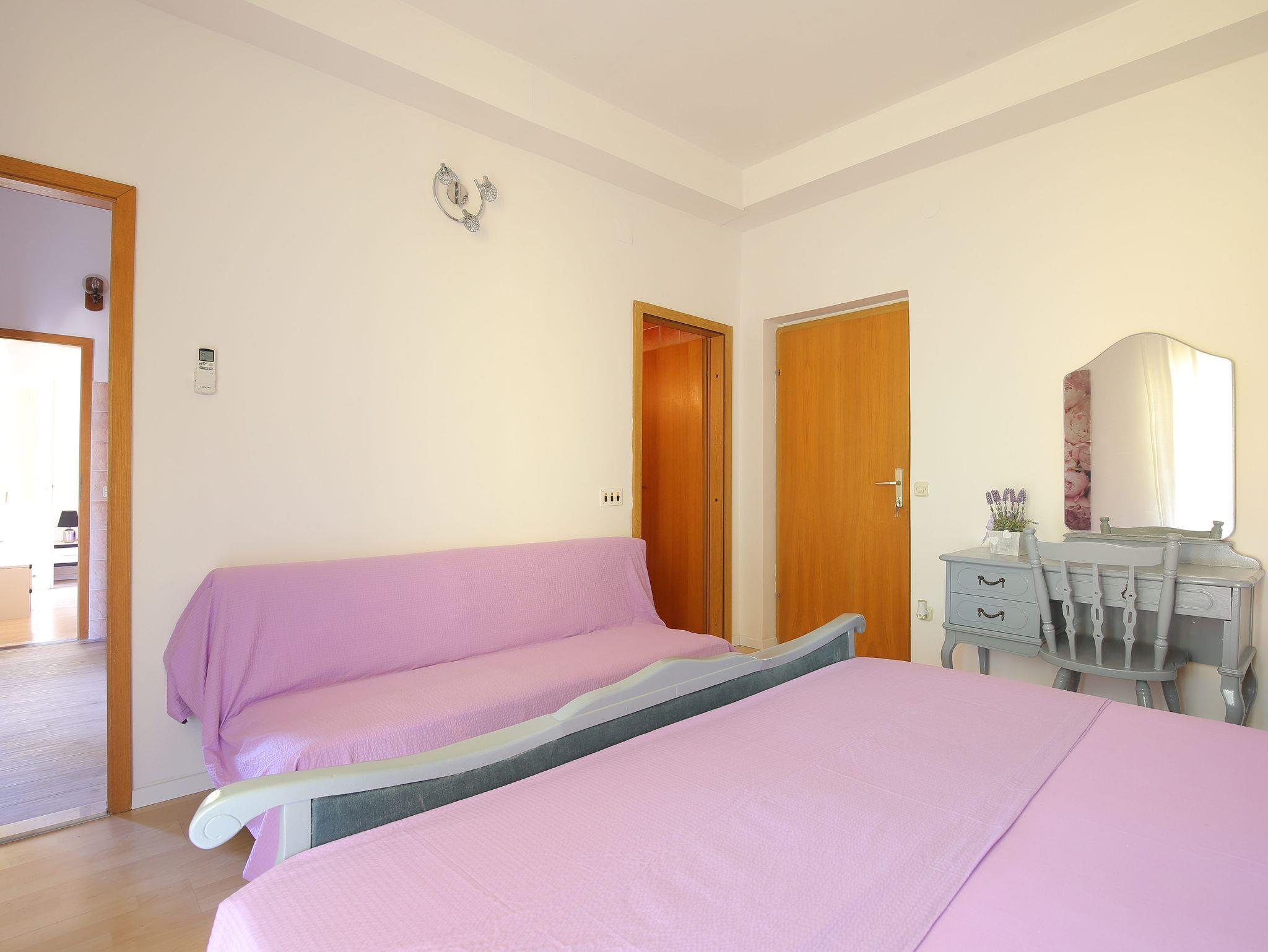 Ferienwohnung bietet Platz für 4 Gäste. Die Betten sind in Schlafzimmern, die es 2 gibt, innerhalb einer Gesamtfläche von 43m2, angeordnet. Die Gäste haben einen eigenen Balkon zur Verfügung, auf der sie in warmen Sommernächten genießen können. Das Apartment bietet Meerblick. Es ist erlaubt, Speisen auf dem Gemeinschafts-Grill vorzubereiten. IM PREIS INBEGRIFFEN: Kurtaxe, Endreinigung, Klimatisierung, Parkplatz, Internet, Bügeleisen, Bügelbrett, Föhn. VERBINDLICHE ZUSÄTZLICHE KOSTEN: Aufzahlung für Kurzaufenthalte (prozentualer Zuschlag pro Nächtigungsanzahl: 30% - 1, 20% - 2, 10% - 3). Die Verfügbarkeit zusätzlicher Dienstleistungen in Ihrem reservierten Termin und die Preise derselben (falls nicht aufgeführt) müssen im Voraus überprüft werden. Zusätzliche Dienstleistungen die in der Zahlungsaufforderung nicht aufgeführt sind werden direkt beim Vermieter bezahlt, angenommen der Gast nutzt auch diese.