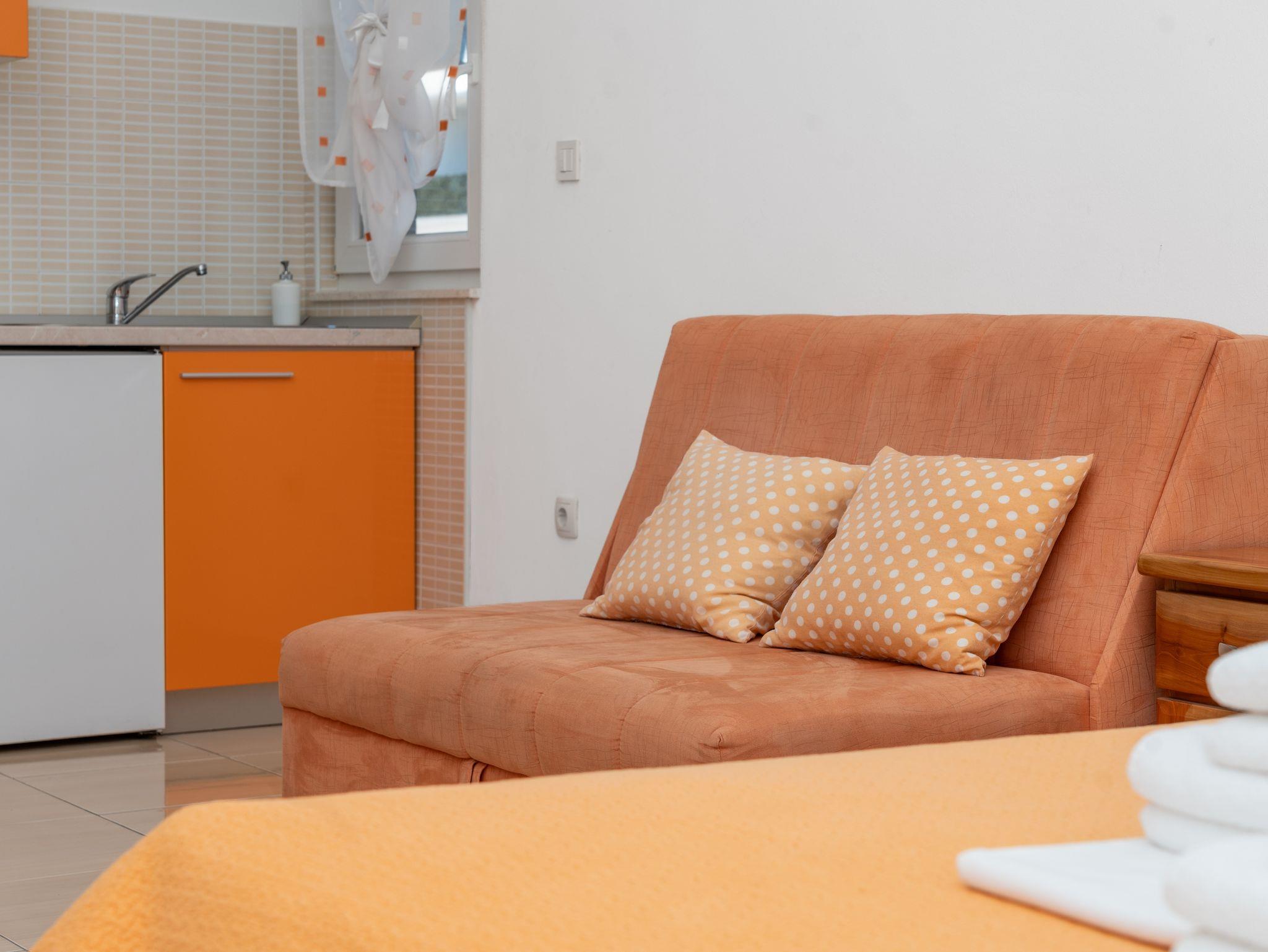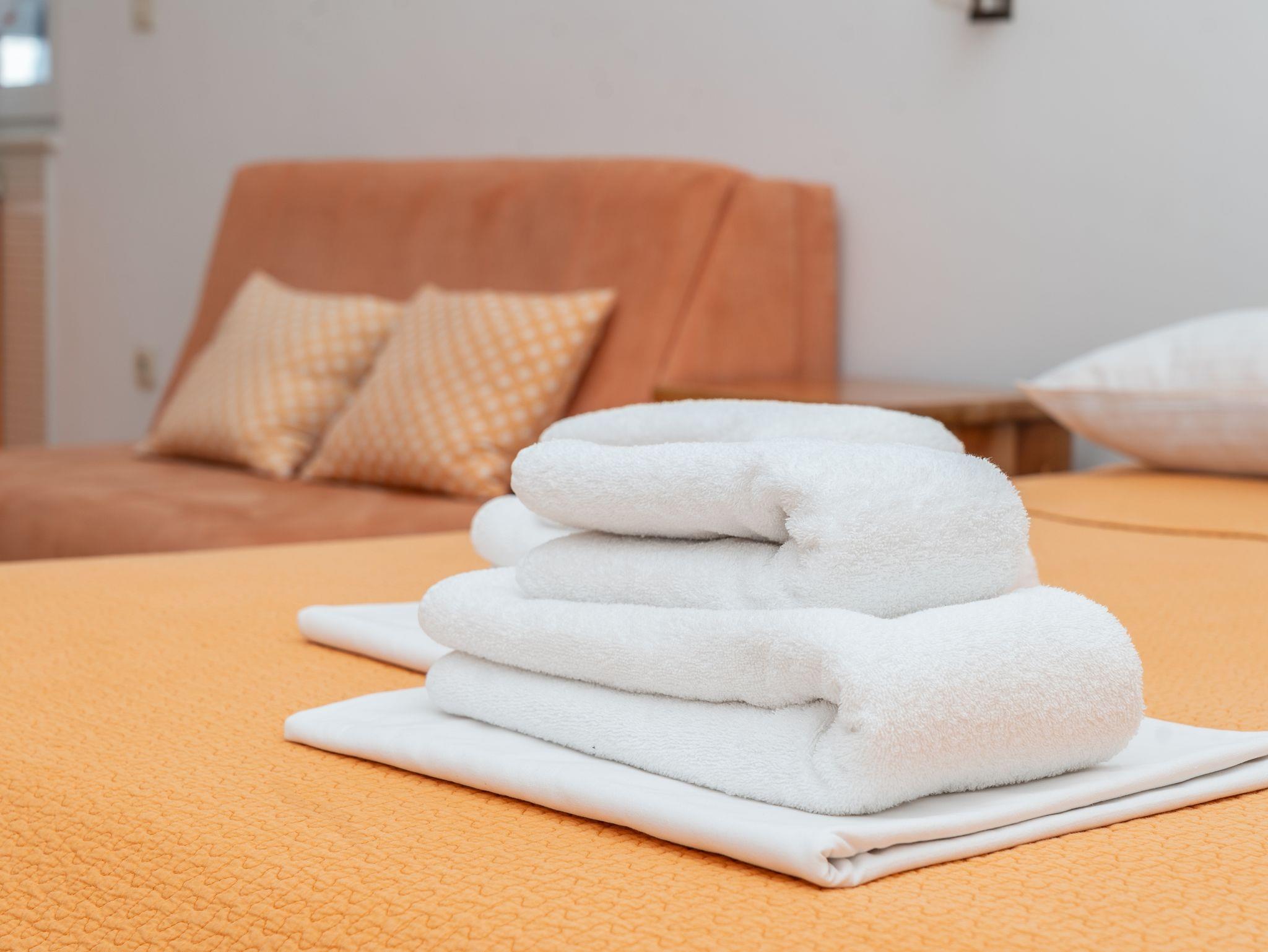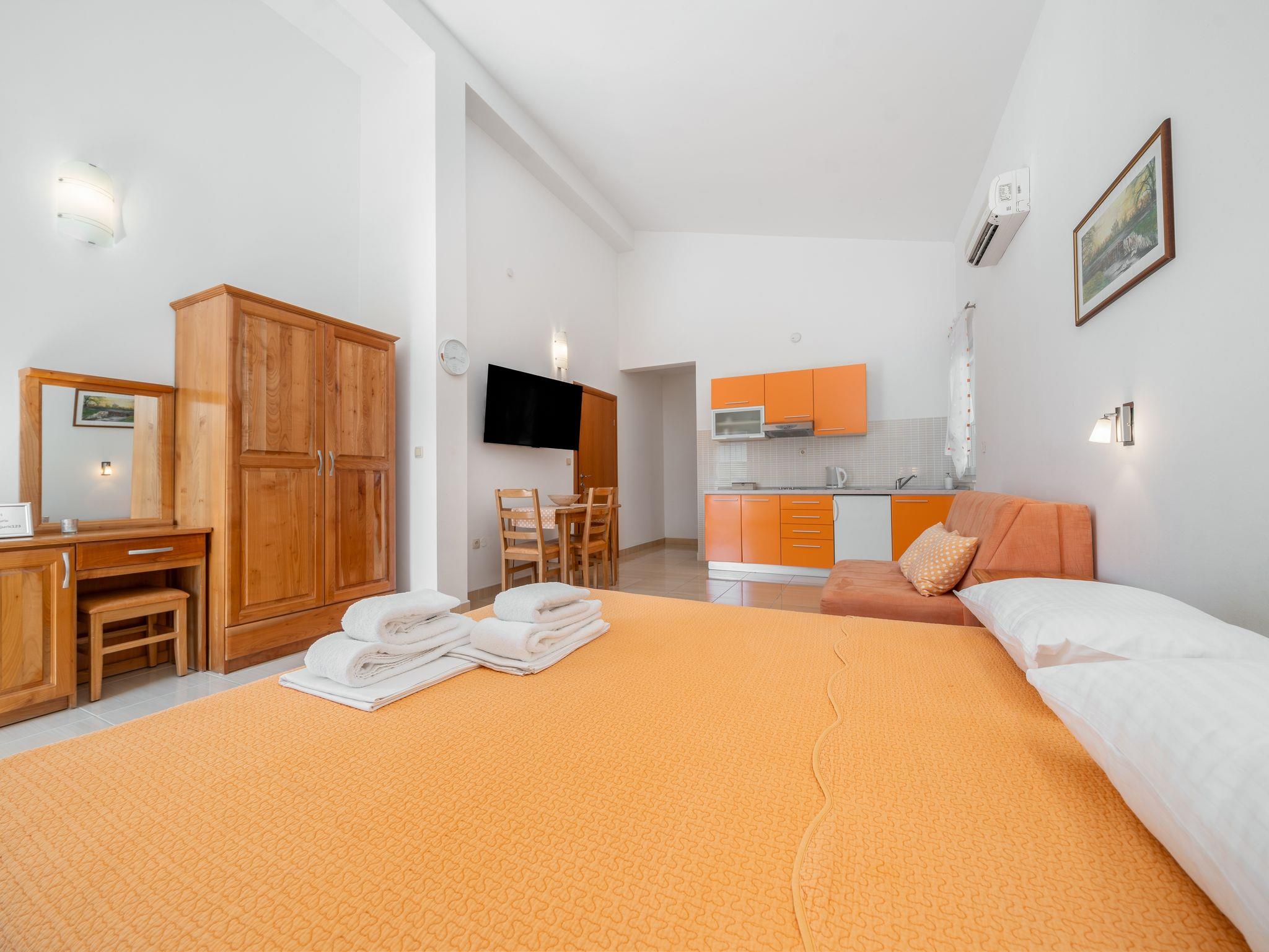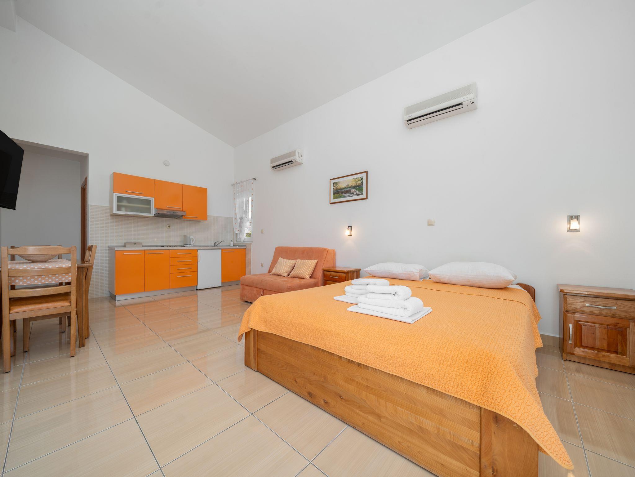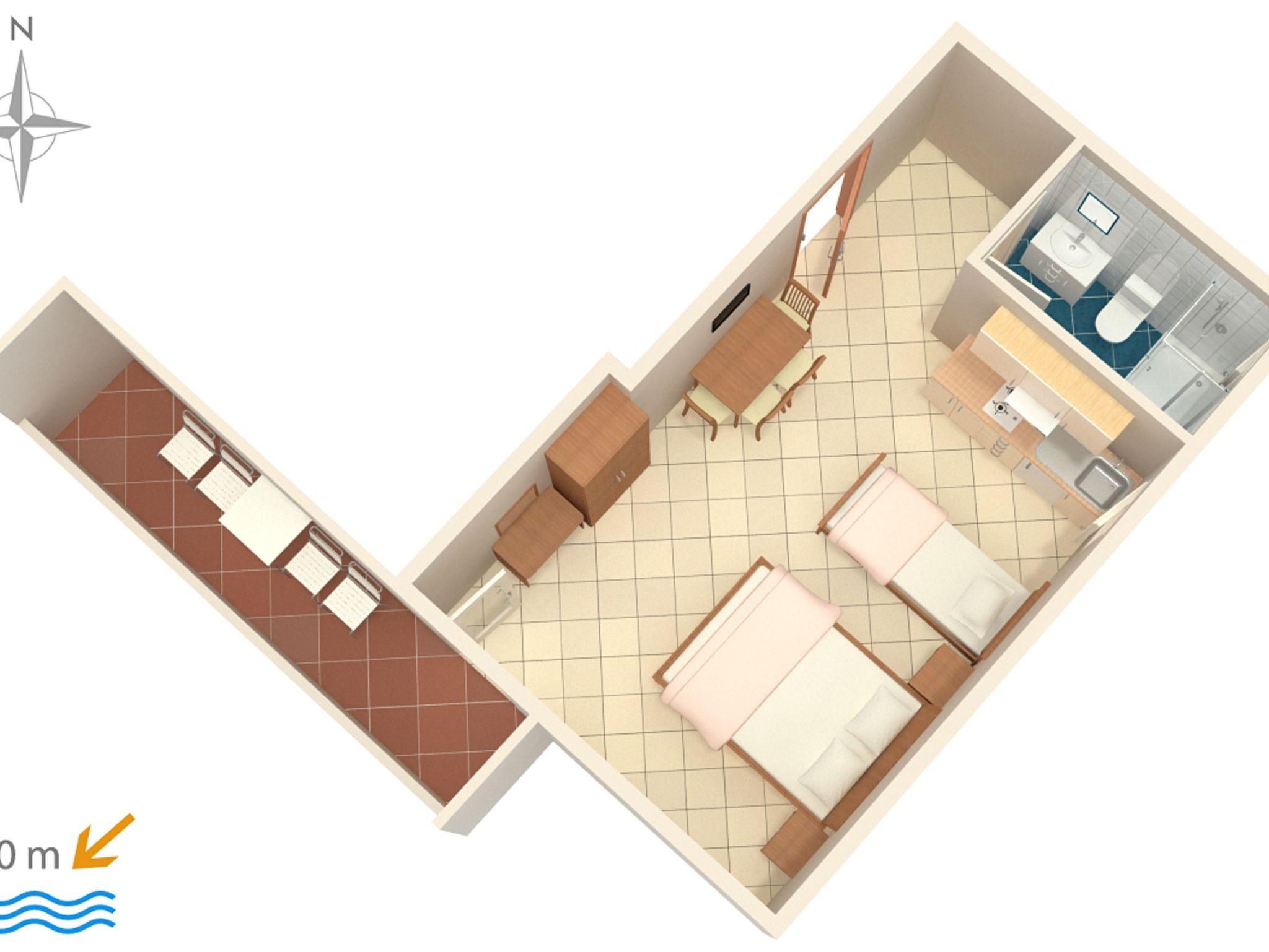 Studio bietet Platz für 3 Gäste. Die Betten sind in Schlafzimmern, die es 1 gibt, und in Esszimmer, innerhalb einer Gesamtfläche von 31m2, angeordnet. Die Gäste haben einen eigenen Balkon zur Verfügung, auf der sie in warmen Sommernächten genießen können. Das Studio-Apartment bietet Meerblick. Es ist erlaubt, Speisen auf dem Gemeinschafts-Grill vorzubereiten. IM PREIS INBEGRIFFEN: Kurtaxe, Endreinigung, Klimatisierung, Parkplatz, Internet, Bügeleisen, Bügelbrett, Föhn. VERBINDLICHE ZUSÄTZLICHE KOSTEN: Aufzahlung für Kurzaufenthalte (prozentualer Zuschlag pro Nächtigungsanzahl: 30% - 1, 20% - 2, 10% - 3). UNVERBINDLICHE ZUSÄTZLICHE KOSTEN: Zusatzbett (10,00 € pro Nacht). Die Verfügbarkeit zusätzlicher Dienstleistungen in Ihrem reservierten Termin und die Preise derselben (falls nicht aufgeführt) müssen im Voraus überprüft werden. Zusätzliche Dienstleistungen die in der Zahlungsaufforderung nicht aufgeführt sind werden direkt beim Vermieter bezahlt, angenommen der Gast nutzt auch diese.