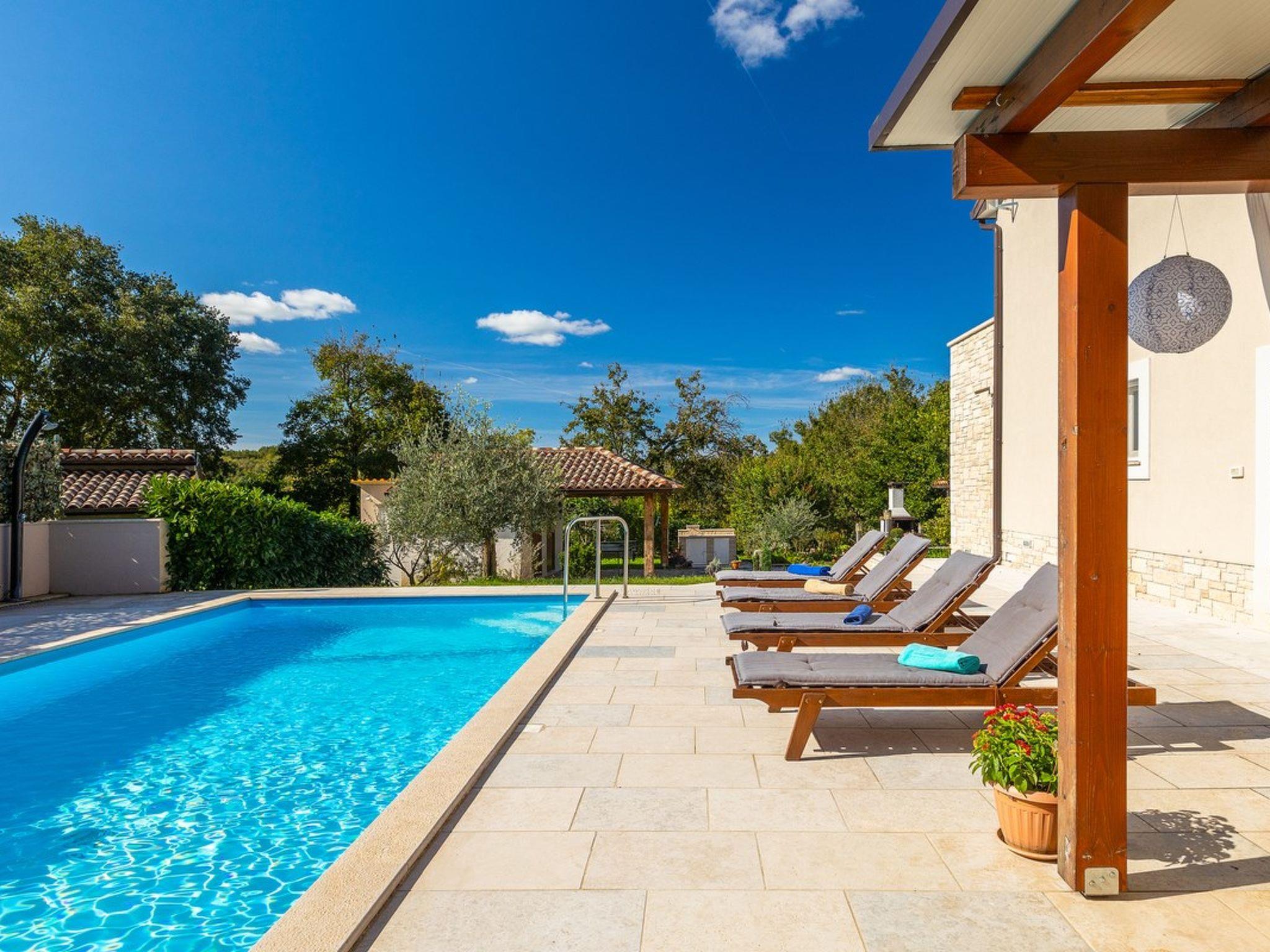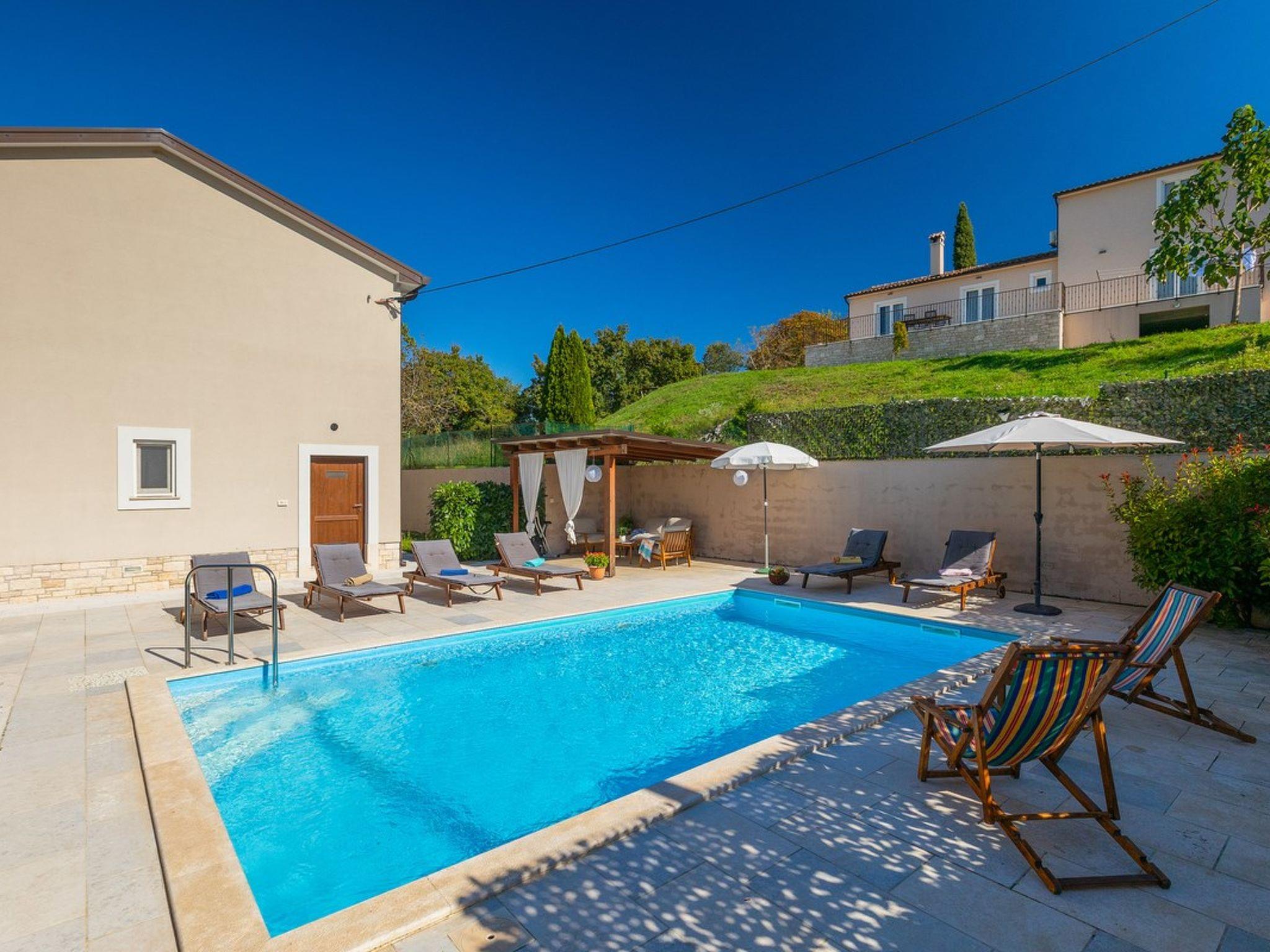 Villa Lasa, located in the charming village of Beram, not far from Pazin, is the perfect choice for a family holiday or relaxation with friends. This spacious villa offers three comfortable bedrooms, two of which are equipped with Kima, TV and private bathroom, ensuring maximum comfort and privacy.Enjoying the outdoors is completed by a beautiful private swimming pool with comfortable deck chairs, next to which there is an outdoor shower for refreshing after a day spent in the sun. More active guests can enjoy basketball, mini football or play table tennis, while the youngest guests can have fun on the children's playground.Villa Lasa also offers an outdoor kitchen and grill, ideal for preparing meals in the fresh air. This combination of comfort and fun makes Villa Lasa the right choice for a relaxing and fulfilling family vacation in the heart of Istria.