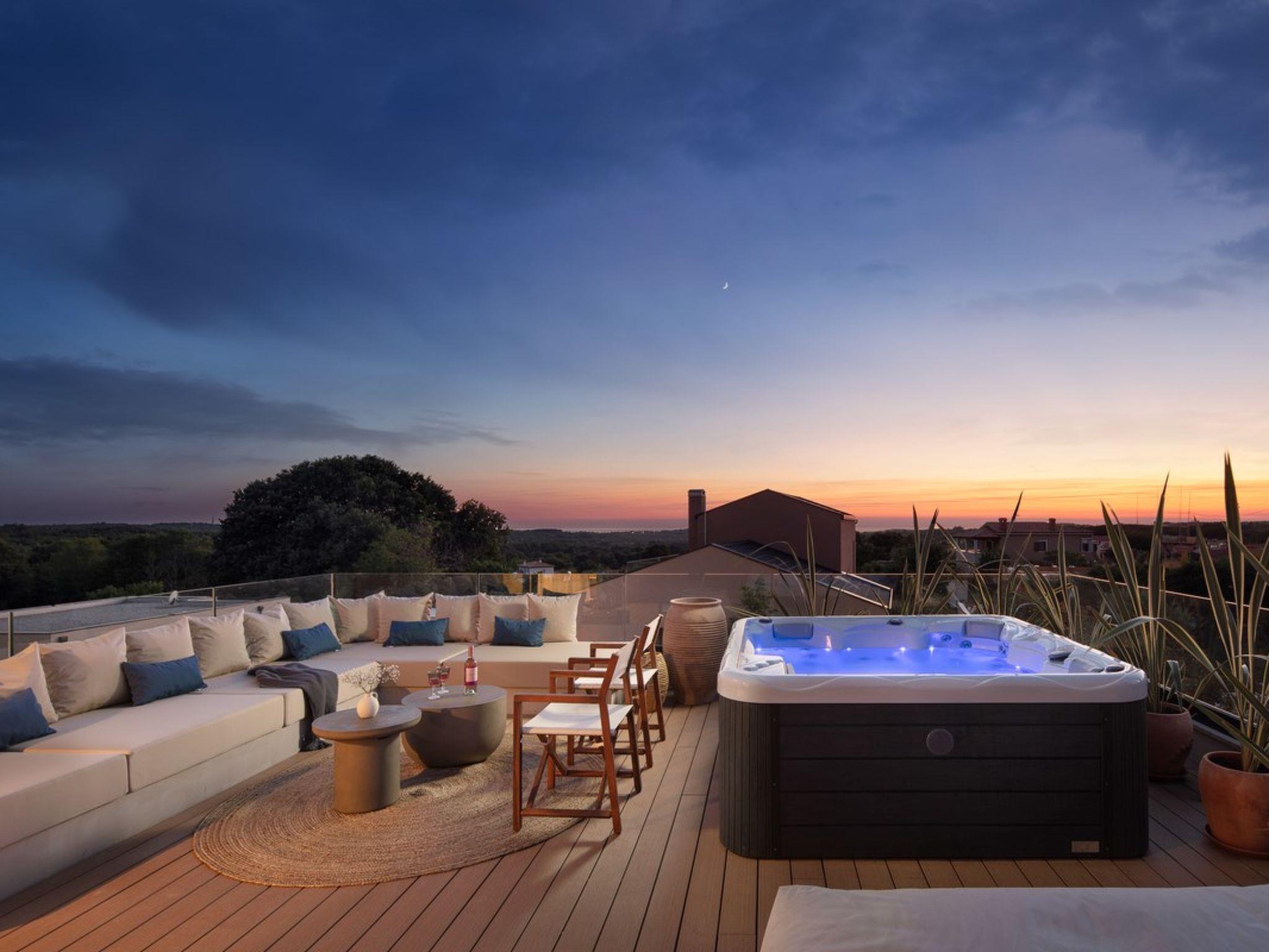 Casa Novita is a luxury villa with 5 elegant bedrooms, perfect for accommodating up to 10 guests. Nestled in a peaceful setting, the villa offers a modern kitchen, spacious living and dining areas, and comfortable rooms, ensuring complete relaxation and privacy. The outdoor space features a heated infinity pool, jacuzzi, sauna, and a large terrace with panoramic sea views. Pool heating is available upon request, with a minimum one-week notice before arrival, and the temperature is adjusted according to weather conditions. The enclosed property guarantees total privacy, while the outdoor barbecue area is ideal for enjoying family meals. Privacy, luxury, and comfort await you at every turn!