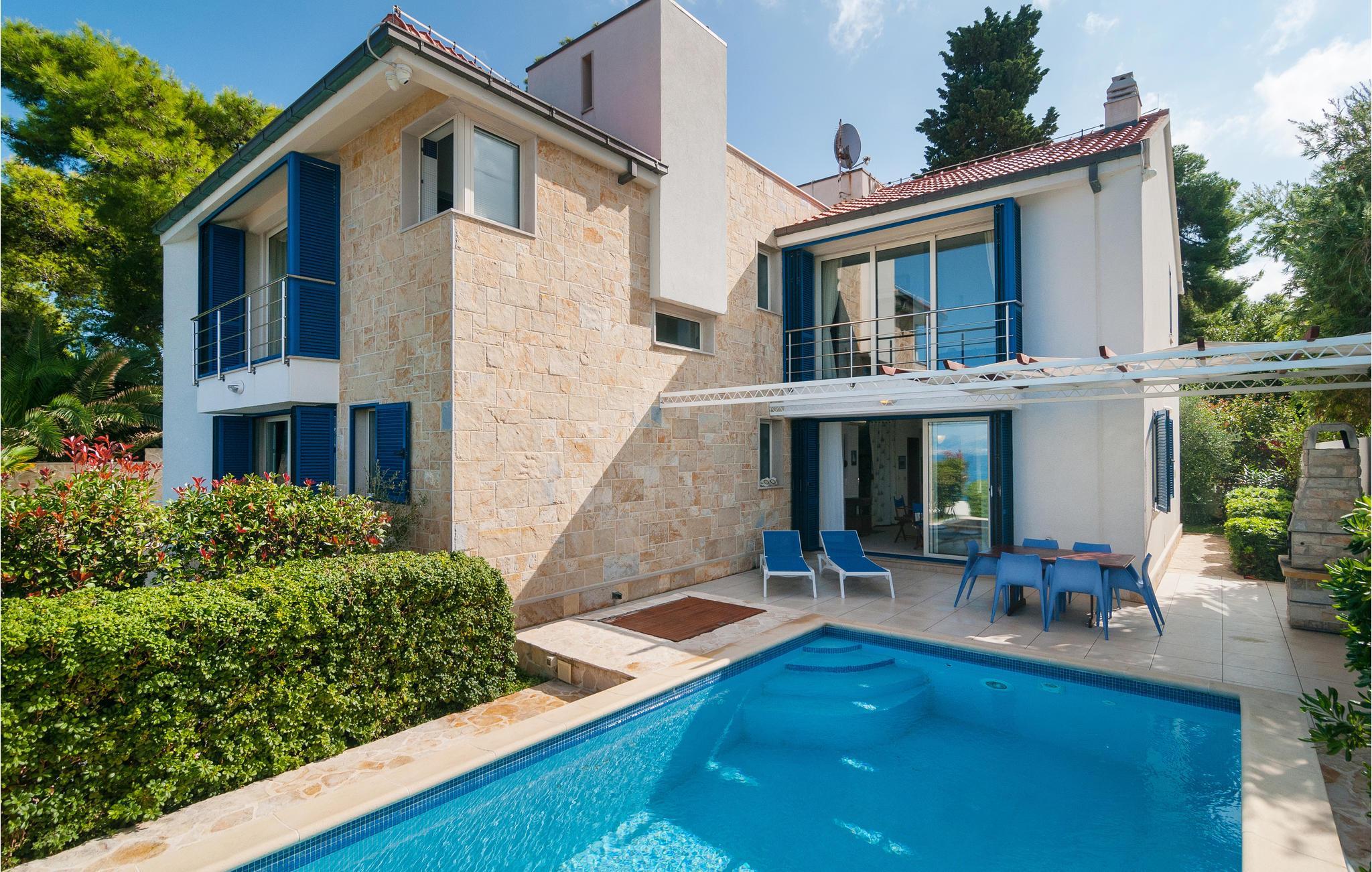 I kystbyen Supetar på øya Brac tilbyr dette 2-etasjes huset med 2 soverom og en terrasse både plass og komfort. Fra det ene soverommet har du havutsikt og tilgang til balkongen. På terrassen er du direkte på vannet og har vid utsikt over havet. Hvis du vil svømme, kan du enten hoppe i det private bassenget eller du kan gå gjennom hagen direkte til rullesteinstranden. Du kan også fiske her.
