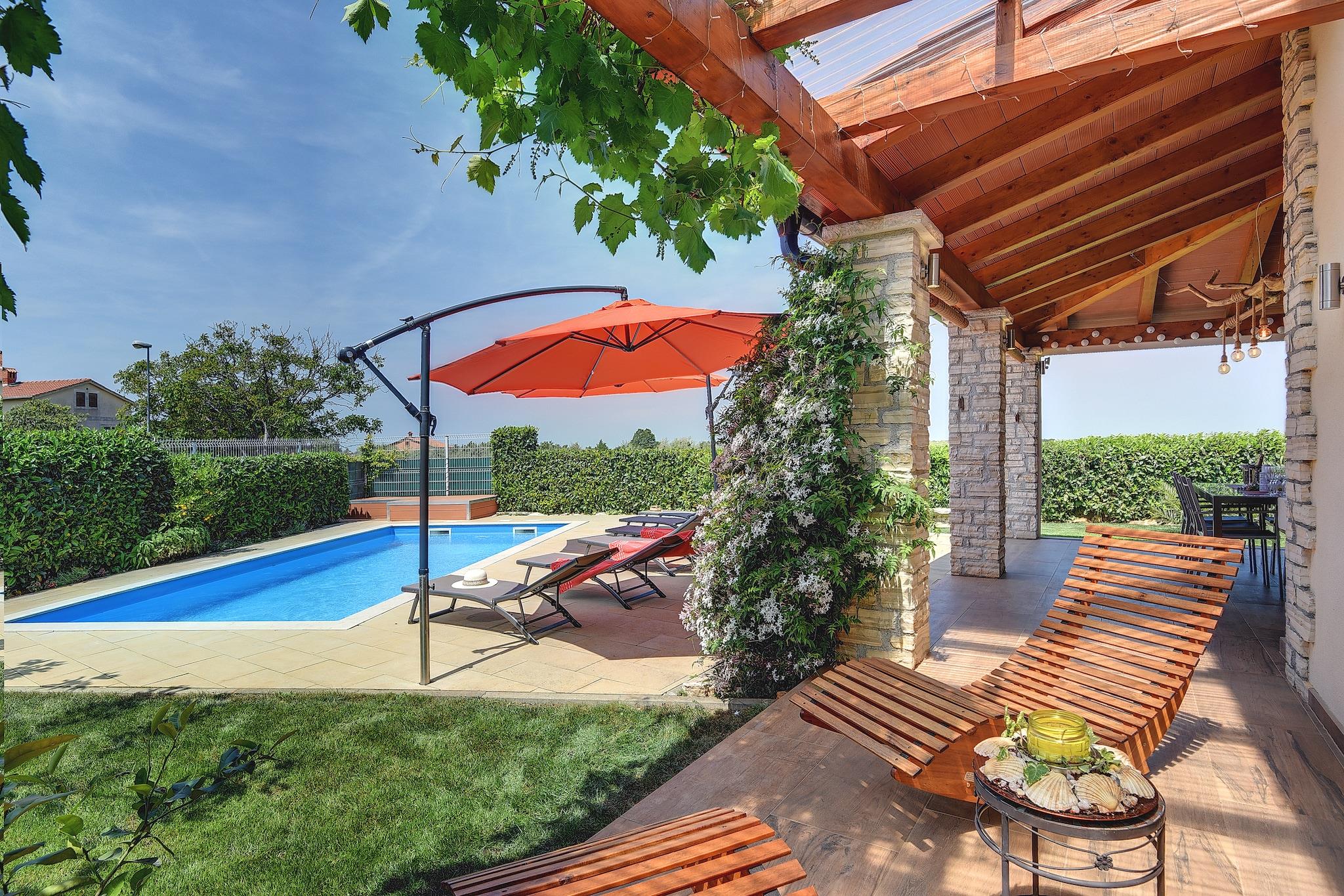 Hvis du er på utkikk etter en bekymringsløs ferie og vil ha det bra, er denne moderne villaen stedet for deg. Du vil bo i nærheten av den fantastiske Novigrad. Denne villaen ligger i fullt inngjerdet område, har et attraktivt utvendig og har et stort svømmebasseng, balkong og privat terrasse. Det er parkeringsplass for to biler. Dette feriehuset, omgitt av grønne felt, vil absolutt ikke skuffe deg. I tillegg vil du straks legge merke til den lyse atmosfæren med moderne interiør og møbler i komfortable rom. Alle soverommene i første etasje har klimaanlegg og eget bad. La ferien følelsen ta over; Slapp av og nyt et godt glass vin på den overbygde terrassen. La ferien begynne! Du kan få all shopping innen 2,5 km og det er en restaurant bare 100 meter unna. Du er basert i den vakre Novigrad med sine fine landlige omgivelser. Det er bare noen få kilometer til kysten med sjøen og strendene. Varmepumpe på forespørsel (minst 2 uker før ankomst).