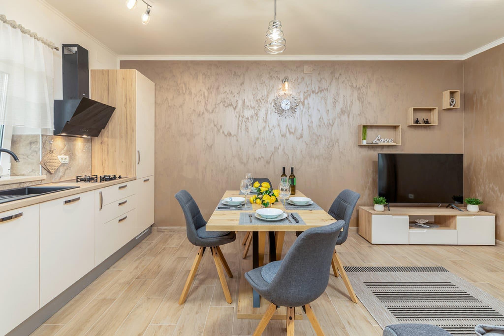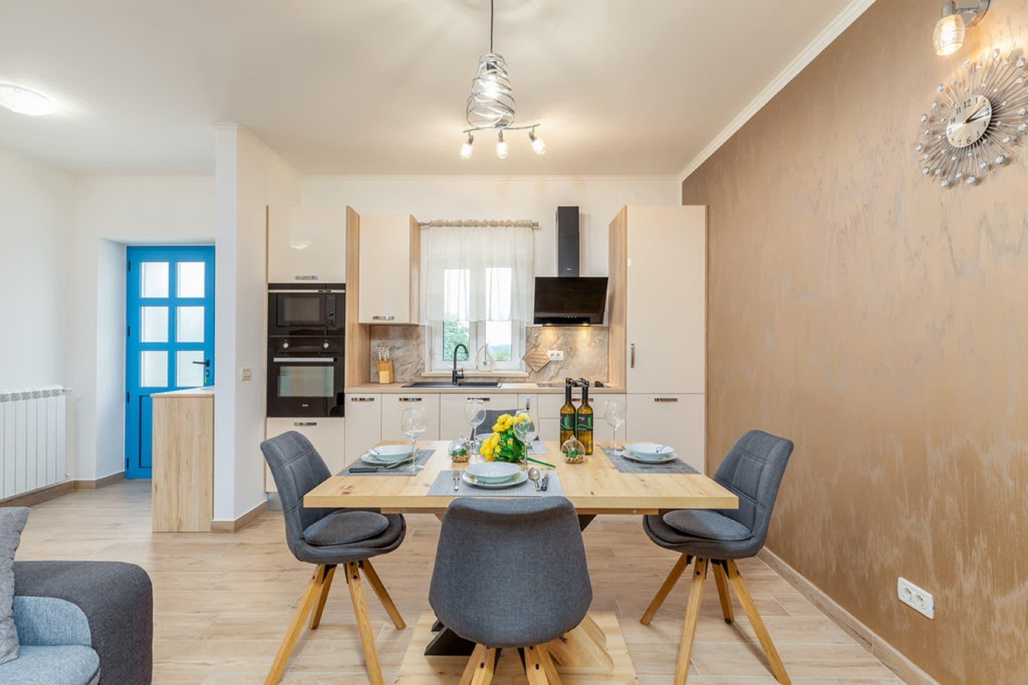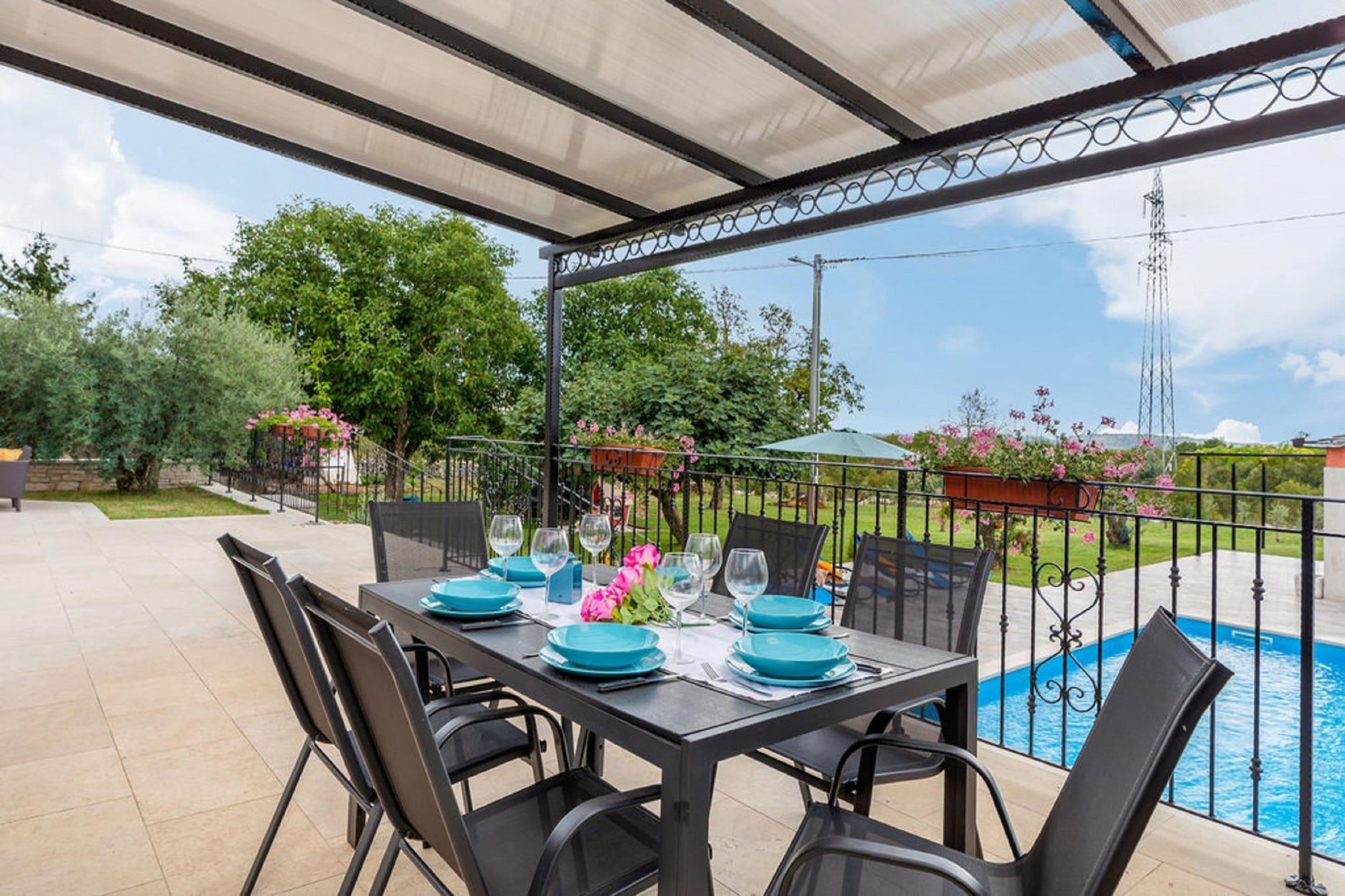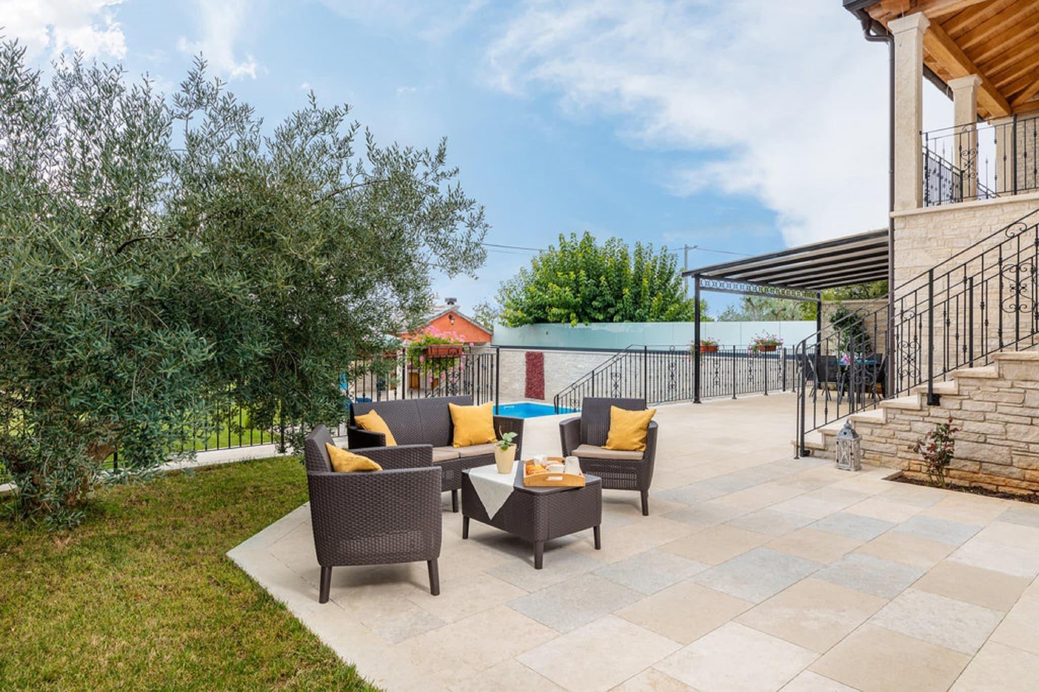 Denne romslige villaen med 3 soverom ligger i den fredelige landsbyen Cepic, og tilbyr et avslappende tilfluktssted for opptil 8 gjester. Bare 3 km fra sentrum og 15 km fra havet og stranden, er det en flott base for å utforske Istrias landskap og kyst, med Buje kun 12 km unna. Det private bassenget, hagen og utendørskjøkkenet gjør det ideelt for solfylte ferier. Innvendig har villaen to stuer, to kjøkken og to bad, pluss en koselig peis, satellitt-TV og klimaanlegg overalt. Soverommene har to dobbeltsenger og et tomannsrom, mens sovesofaer tilbyr ekstra soveplass. Kjøkkenet er fullt utstyrt med kaffemaskiner, oppvaskmaskiner, ovner og til og med en juicepresse. Utendørs kan du nyte den inngjerdede hagen med grill, solsenger, trampoline, bordtennis og lekeapparater. Det er privat parkering, gratis Wi-Fi og et sesongbasert basseng (åpent mai–september). Et morsomt og familievennlig tilfluktssted i hjertet av Istria.
