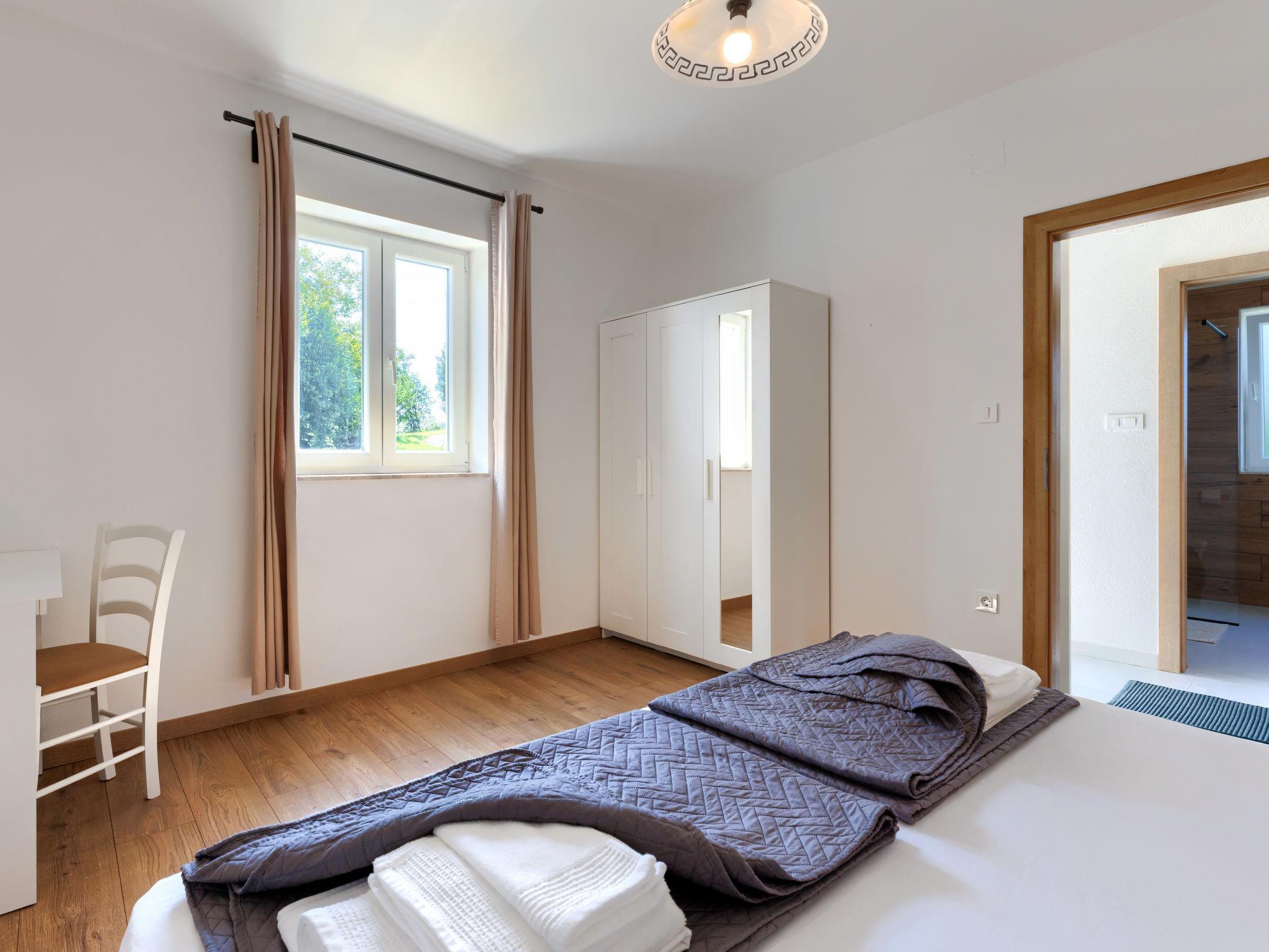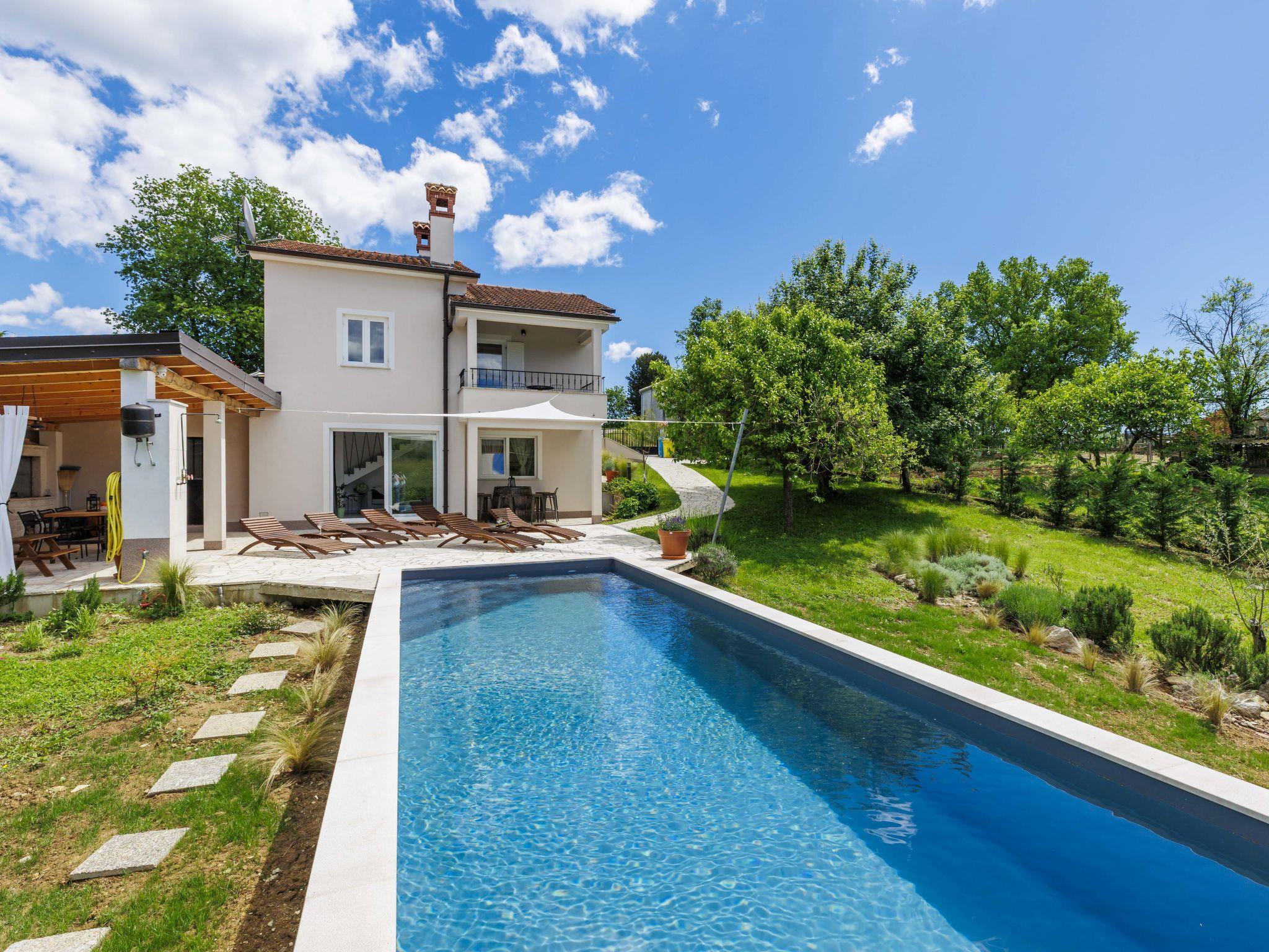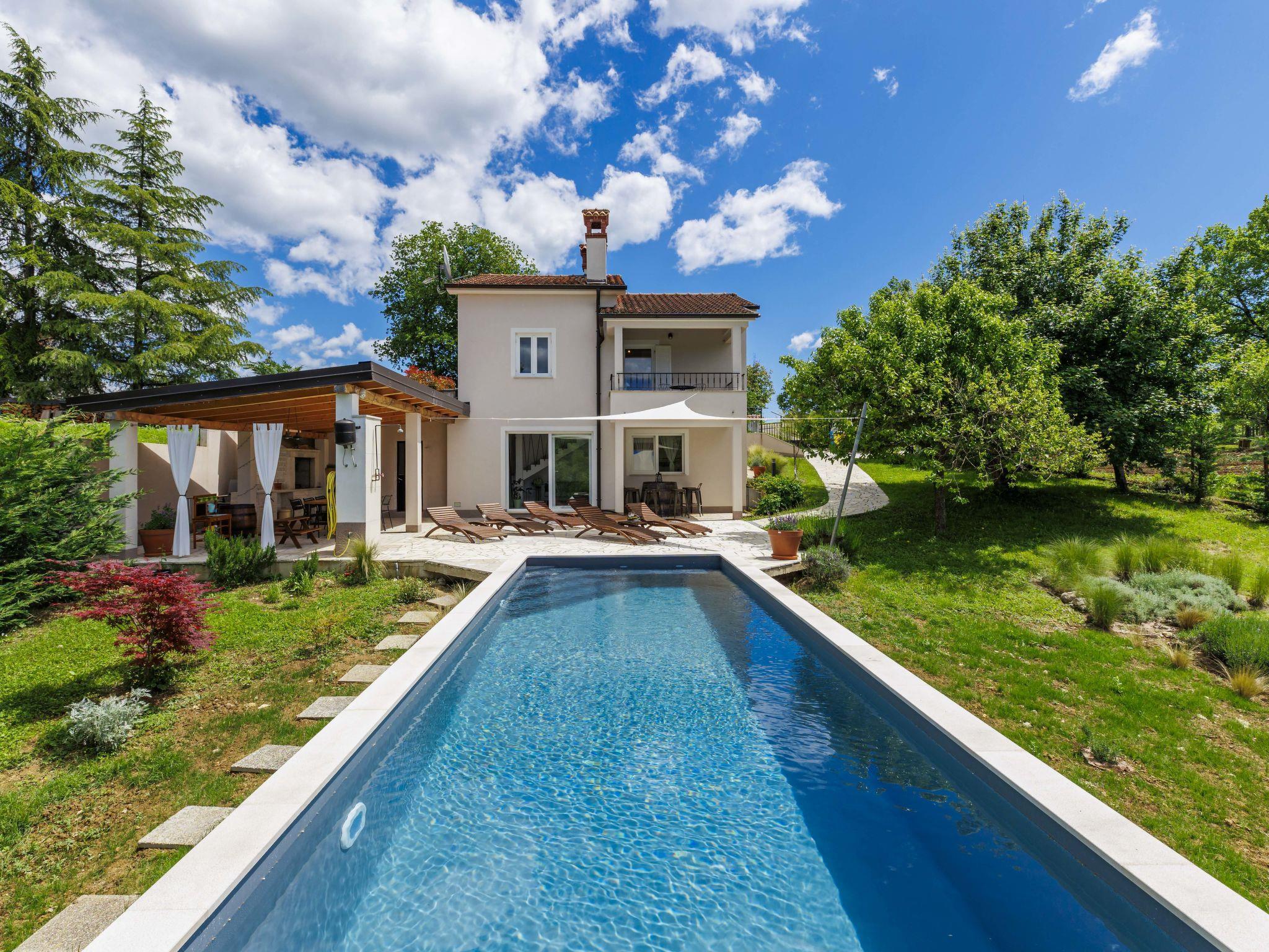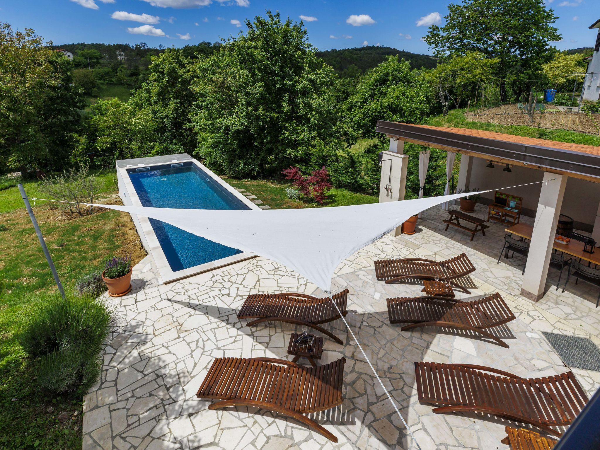 Single-family house "Klementini", 2 storeys, renovated in 2023. 8 km from the centre of Pazin, 22 km from the centre of Roc, in a sunny position, 40 km from the sea. Private: property 1'300 m2, lawn, swimming pool (9 x 3 m, depth 140 cm, seasonal availability: 01.May. - 01.Oct.) with internal staircase and salt-electrolysis pool-cleaning system. Outdoor shower, terrace (40 m2), garden furniture, barbecue, pool maintenance by the owner/gardener. In the house: internet access, washing machine. Parking (for 2 cars) at the house on the premises. Shop 100 m, supermarket 8 km, restaurant 100 m, bus stop 220 m, pebble beach 40 km, public bathing area 40 km. Walking paths from the house 50 m, cycle lane 100 m. Nearby attractions: Nature park Ucka 27 km. The owner does not accept any youth groups.