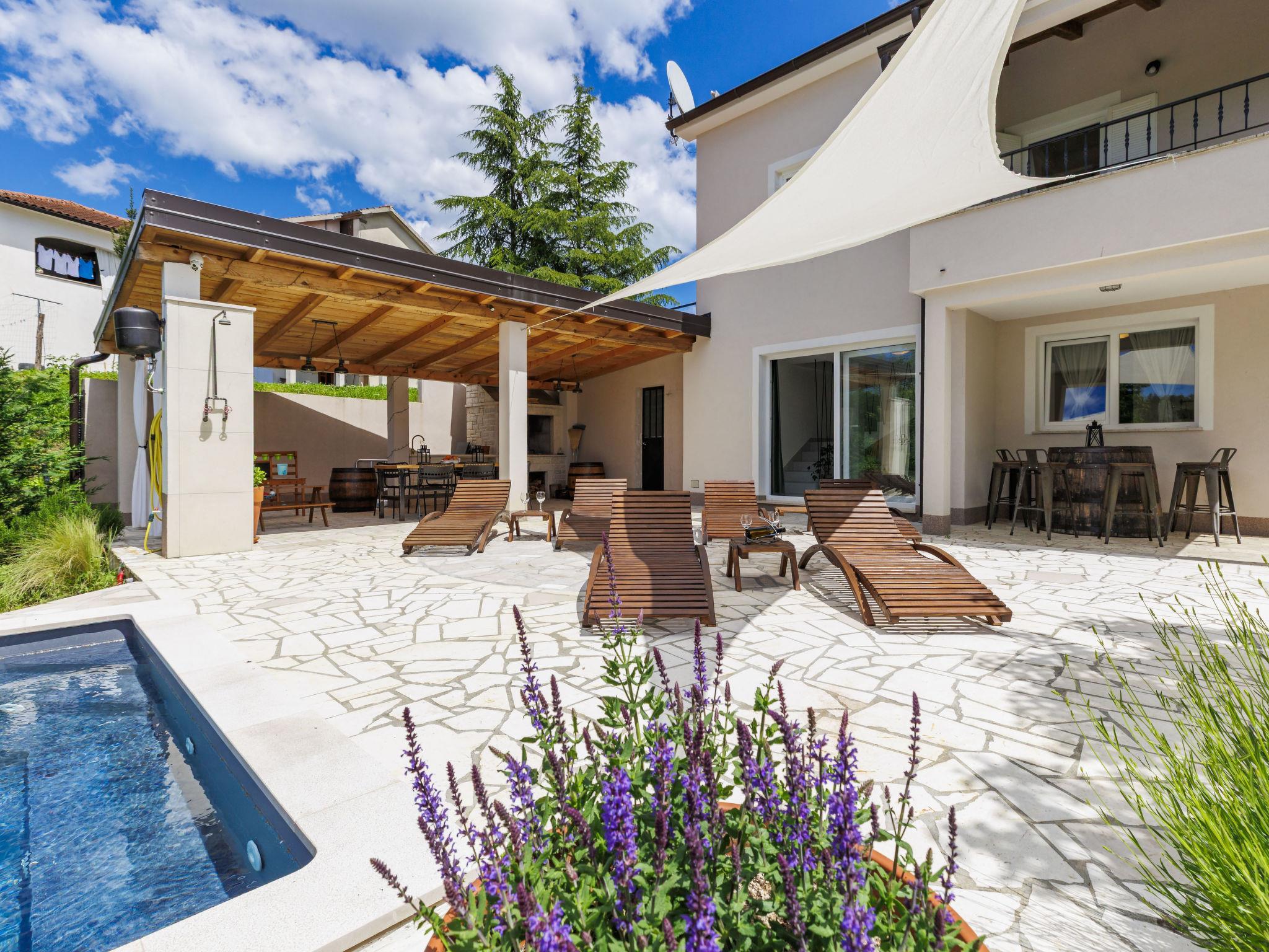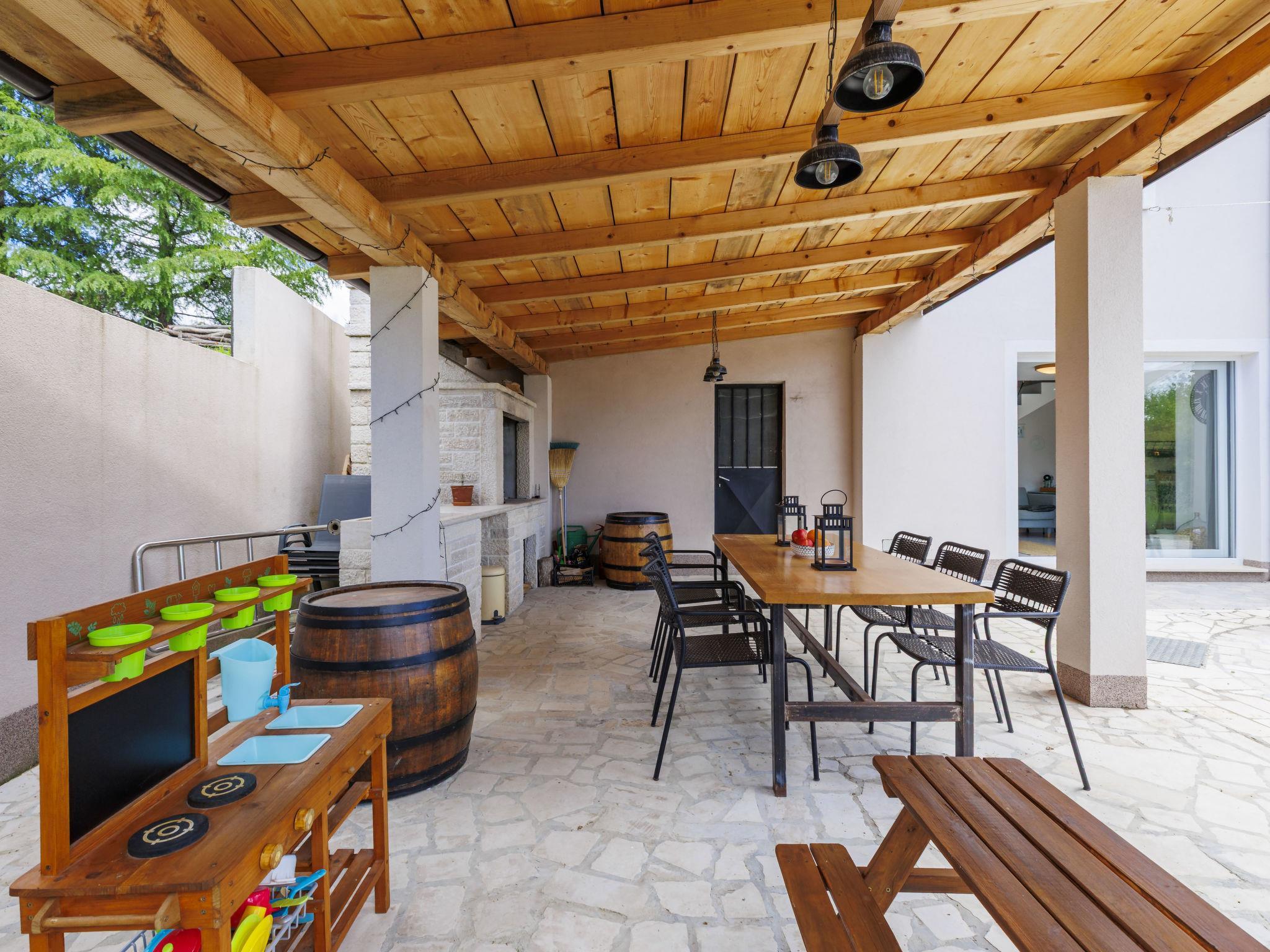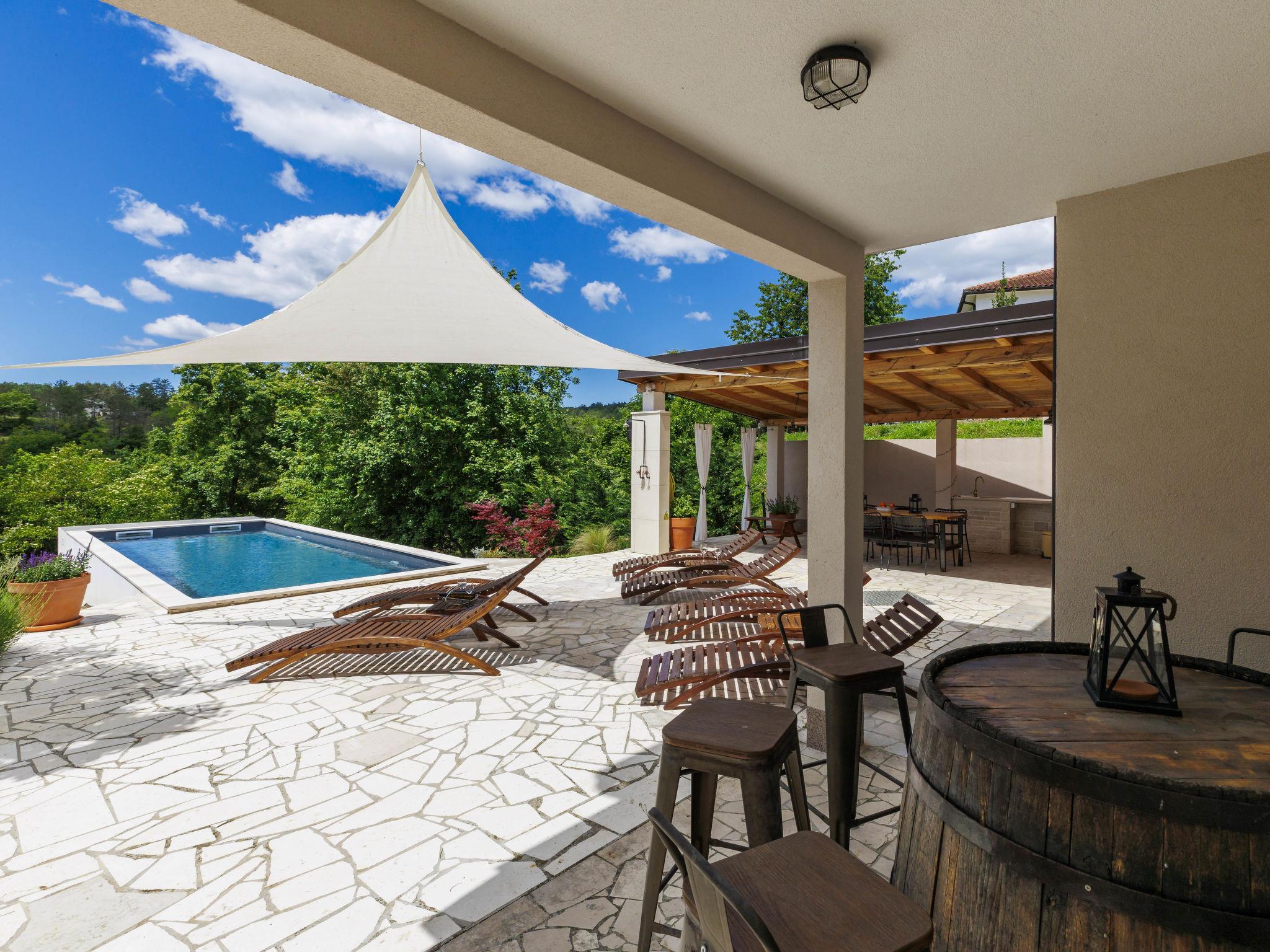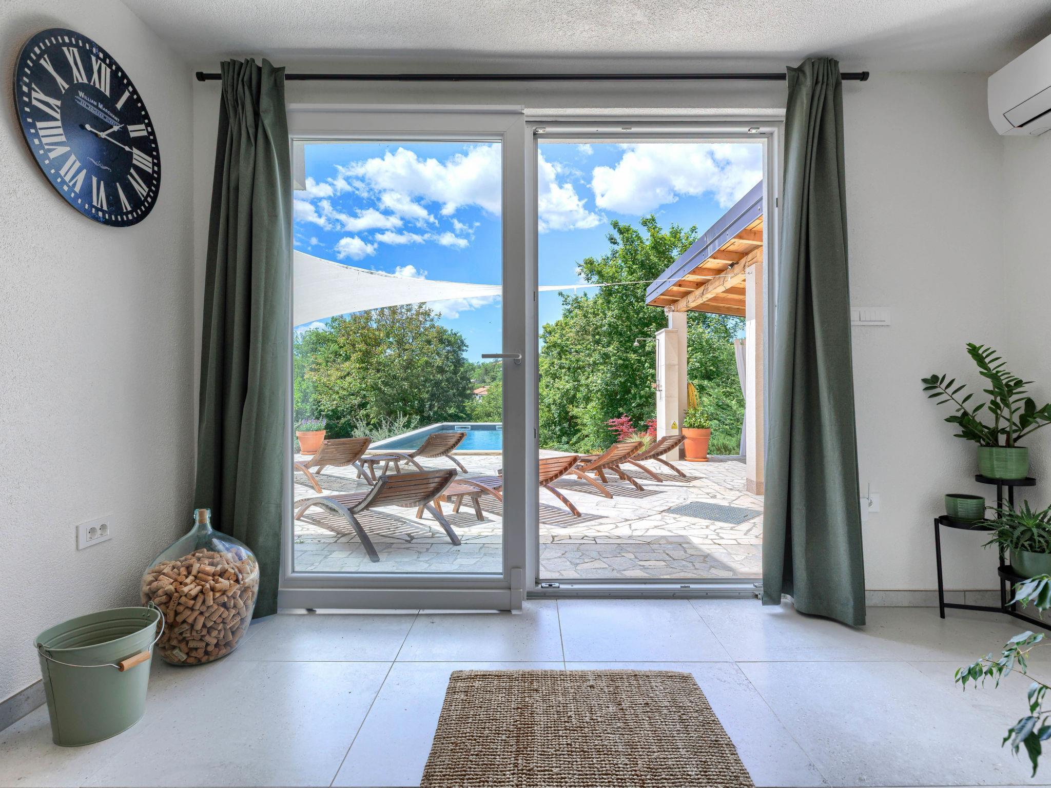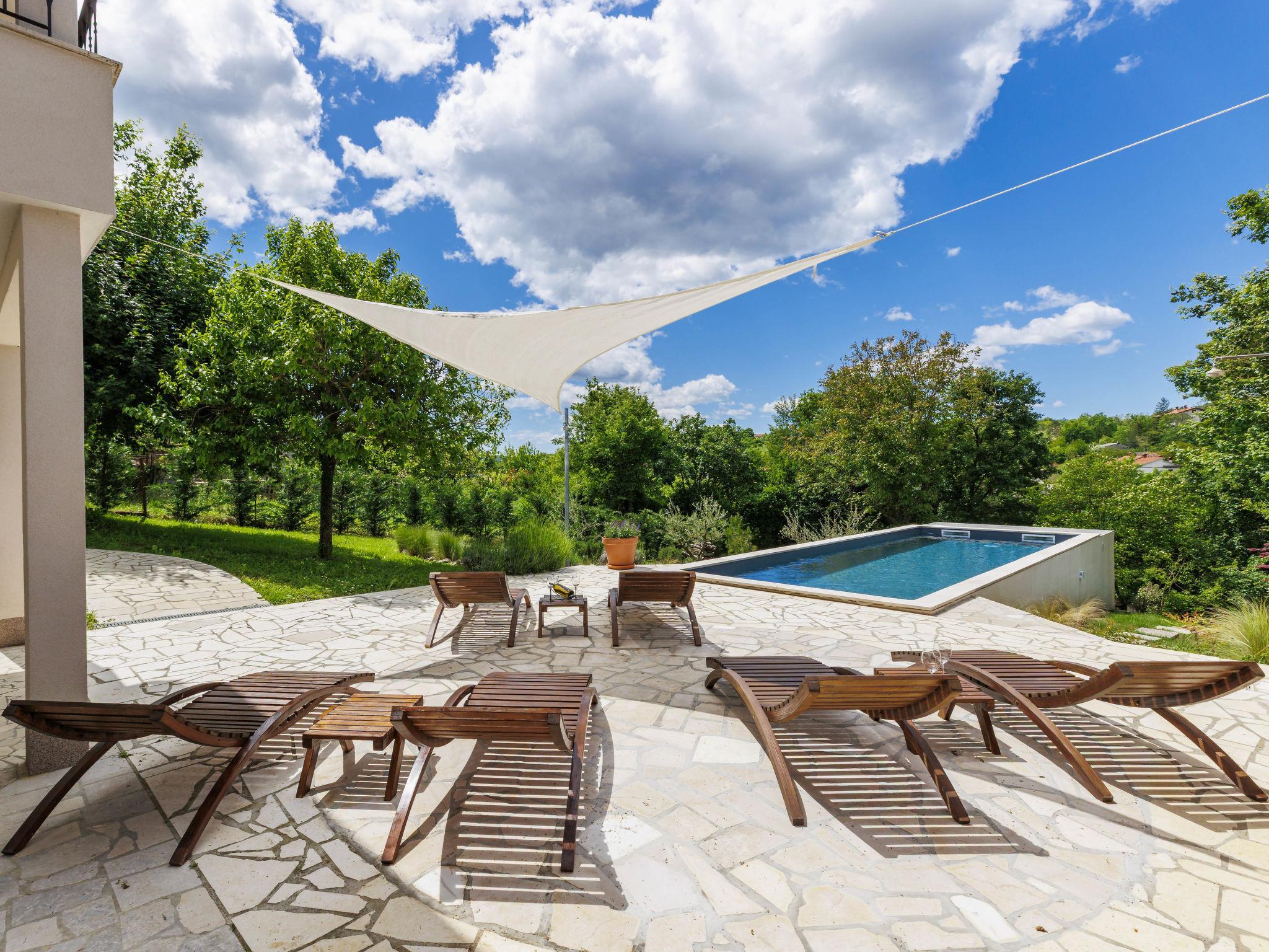 Single-family house "Klementini", 2 storeys, renovated in 2023. 8 km from the centre of Pazin, 22 km from the centre of Roc, in a sunny position, 40 km from the sea. Private: property 1'300 m2, lawn, swimming pool (9 x 3 m, depth 140 cm, seasonal availability: 01.May. - 01.Oct.) with internal staircase and salt-electrolysis pool-cleaning system. Outdoor shower, terrace (40 m2), garden furniture, barbecue, pool maintenance by the owner/gardener. In the house: internet access, washing machine. Parking (for 2 cars) at the house on the premises. Shop 100 m, supermarket 8 km, restaurant 100 m, bus stop 220 m, pebble beach 40 km, public bathing area 40 km. Walking paths from the house 50 m, cycle lane 100 m. Nearby attractions: Nature park Ucka 27 km. The owner does not accept any youth groups.