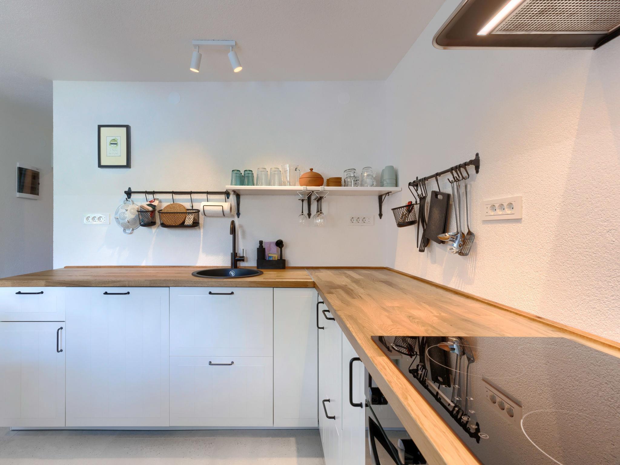 4-room house 85 m2 on 2 levels. Beautiful furnishings: living/dining room with satellite TV (flat screen), air conditioning. Exit to the terrace. Open kitchen (oven, dishwasher, 4 induction hot plates, kettle, freezer, electric coffee machine). Shower/WC. Upper floor: open living/sleeping room with 1 double sofabed (140 cm, length 200 cm), satellite TV (flat screen), air conditioning. Exit to the balcony. 1 room with 1 french bed (160 cm, length 200 cm). 1 room with 1 french bed (180 cm, length 200 cm). Shower/WC. Forced-air heating. Balcony 8 m2, terrace 8 m2, roofed. Terrace furniture, deck chairs. View of the swimming pool. Facilities: safe, baby cot, hair dryer. Internet (WiFi, free).