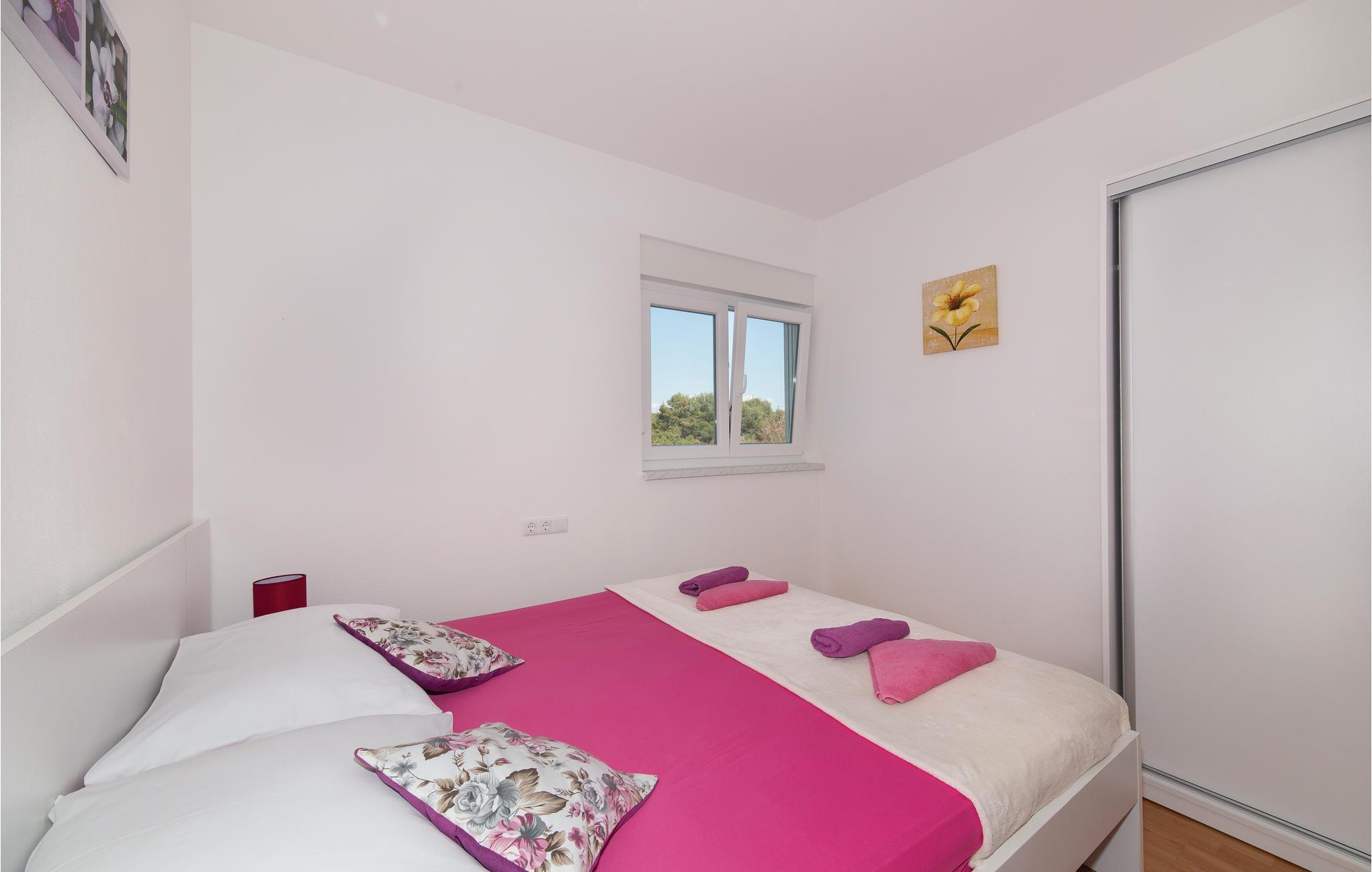 Disse komfortable leilighetene CDE570 og CDE571 ligger i første etasje og har utsikt over havet, bukten og byen Trogir. CDF846 venter på deg i første etasje. Leilighet CDE570 består av to soverom, hvorav det ene har to enkeltsenger og det andre en dobbeltseng. Denne leiligheten har også en moderne stue med kjøkken og en terrasse. Flat CDE571 vil fortrylle deg ved første blikk med sine stilige møbler og den vakre solnedgangen bak øyene. Den består av entré med toalett, et soverom, en stue med kjøkken og også en terrasse. Besøk den nærliggende gamlebyen i Trogir, rik på historie og kultur og et UNESCOs verdensarvliste.
