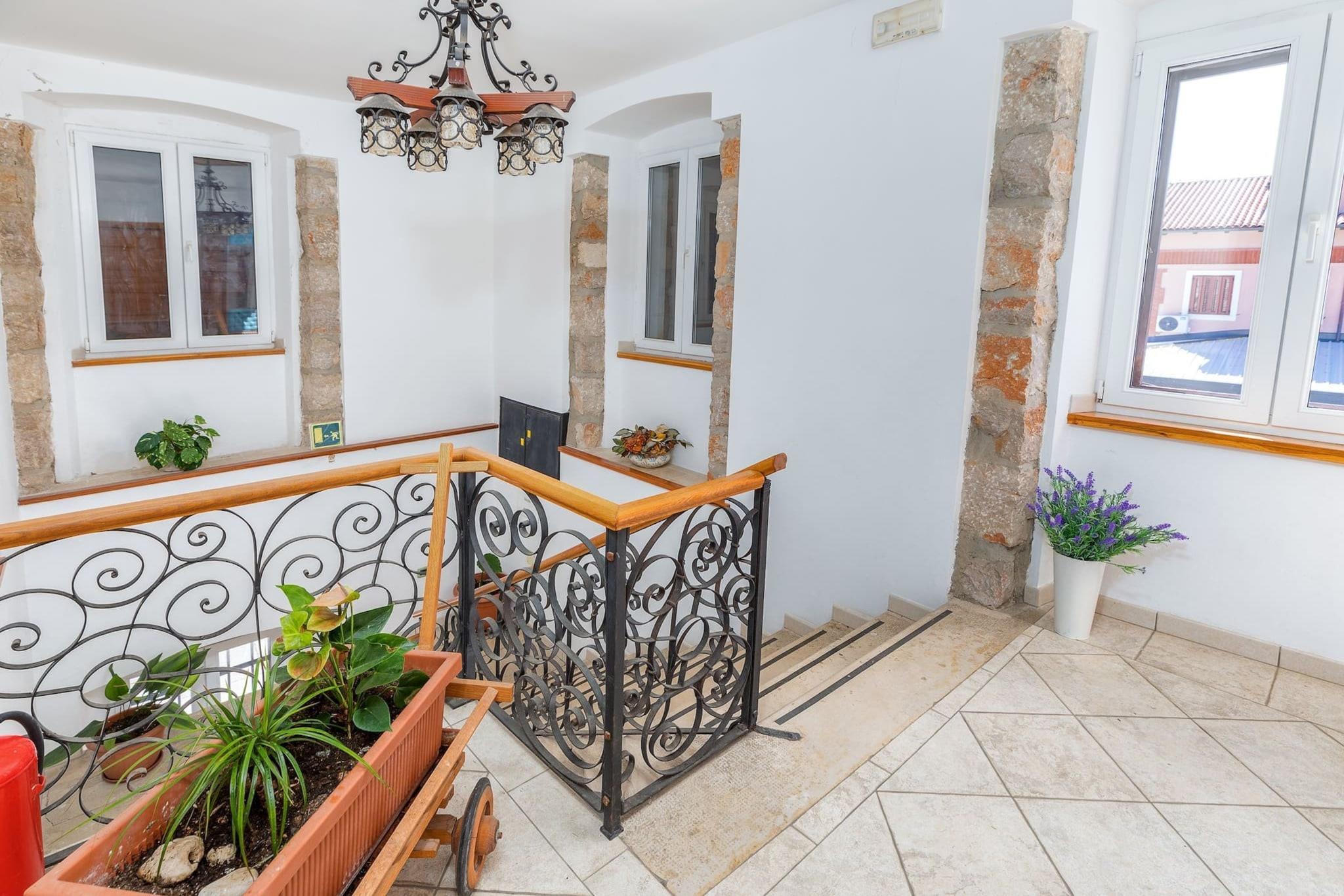 Denne sjarmerende leiligheten tilbyr et koselig opphold for opptil 5 gjester, med komfortable sovemuligheter med en dobbeltseng på soverommet i galleristil og tre enkeltsenger i hovedstuen. Leiligheten er kjæledyrvennlig og inkluderer en stor felles terrasse med vakker havutsikt, perfekt for utendørs måltider eller avslapning, utstyrt med grill og spiseplass. Stuen er gjennomtenkt designet med et spisebord ved siden av en konvertibel seng, noe som tilbyr fleksibilitet for gjestene. Et fullt utstyrt kjøkken, klimaanlegg og Wi-Fi er også inkludert for din bekvemmelighet. For de med barn kan en barneseng tilbys på forespørsel. Leiligheten ligger i hjertet av den pittoreske byen Cres, bare noen skritt fra den pulserende gamlebyen med sin middelhavssjarm. Gjestene kan utforske den fantastiske historiske arkitekturen, nyte havbrisen og nyte lokale delikatesser på nærliggende restauranter og kafeer. Stranden er lett tilgjengelig, noe som gjør den ideell for de som ønsker å slappe av ved vannet. En fergetur fra Brestova-Porozina forbinder øya med fastlandet, mens parkering er tilgjengelig innen 300 meter til 1 km fra eiendommen, noe som sikrer enkel tilgang. Den sentrale beliggenheten gjør det enkelt å utforske byens kulturelle landemerker og naturlige skjønnhet. Eiendommen har et fullt utstyrt kjøkken med åpen planløsning med viktige apparater, inkludert kjøleskap, mikrobølgeovn, komfyr og vannkoker. Badet har en kombinasjon av dusj og badekar samt hårføner for ekstra bekvemmelighet. Leiligheten har også en TV med satellittkanaler, som sørger for underholdning under oppholdet.