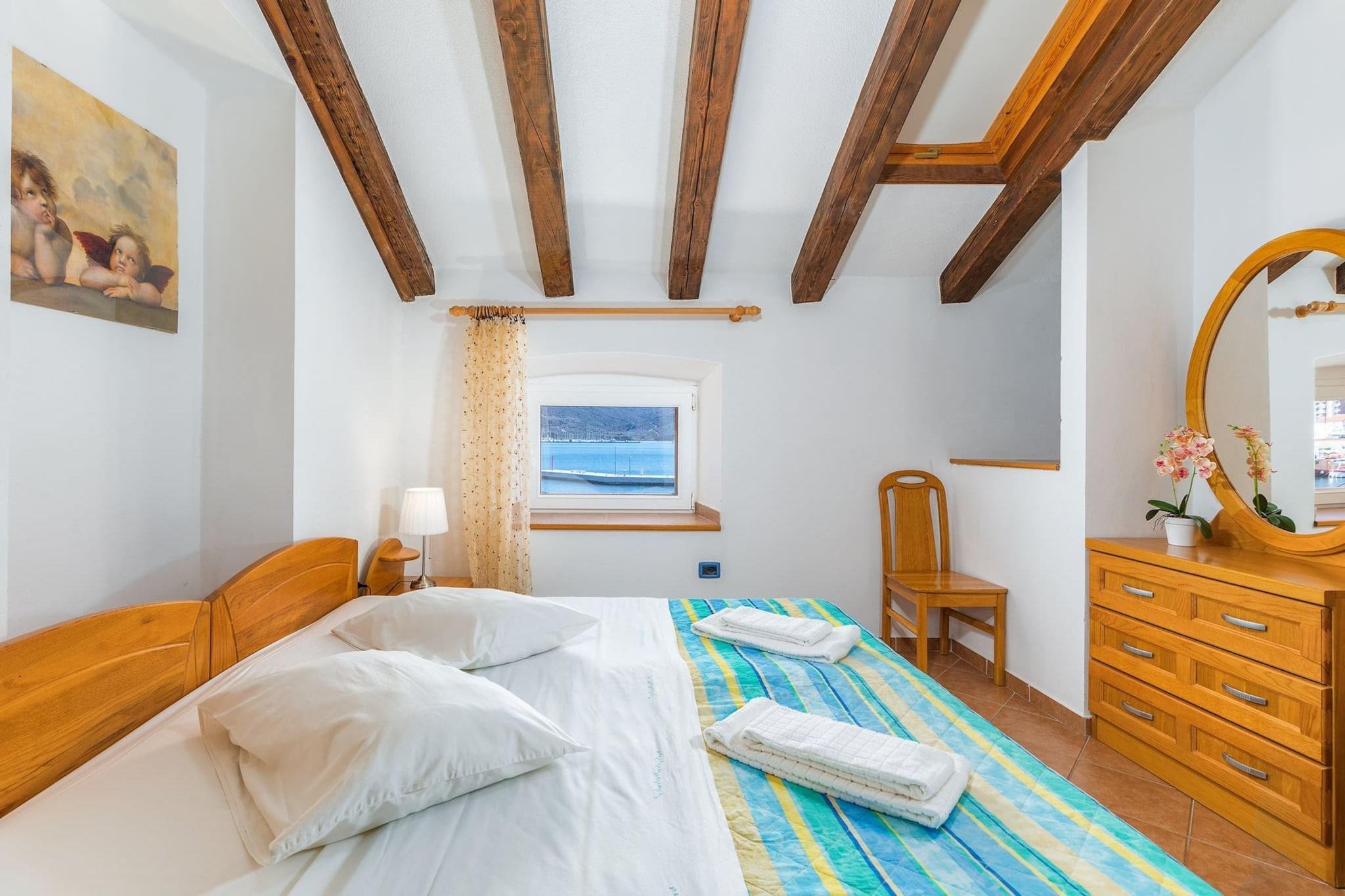 Plassert i hjertet av den pittoreske byen Cres, tilbyr leilighetene en perfekt ferie med en blanding av middelhavssjarm og moderne komfort. Denne nydelige leiligheten i første etasje har plass til opptil 5 gjester, og har en fortryllende havutsikt fra kjøkkenvinduet. Stuen inkluderer en fleksibel seng ved siden av spisebordet, mens soverommet i galleriet tilbyr en fantastisk havutsikt og en dobbeltseng med en ekstra enkeltseng. Badet har både dusj og badekar for din bekvemmelighet. Gjestene vil nyte lett tilgang til den vakre gamlebyen i Cres, bare noen skritt fra bygningen. Utforsk de sjarmerende gatene og nyt middelhavsatmosfæren. Selv om eiendommen ikke tilbyr parkering på stedet, finnes det flere parkeringsmuligheter 300 meter til 1 km unna, og du kan midlertidig parkere ved siden av bygningen for å losse bagasjen. For ekstra bekvemmelighet har gjestene tilgang til et felles vaskerom med vaske- og strykeutstyr (tilgjengelig etter gjensidig avtale med eieren). Øya Cres er tilgjengelig med ferge, og dens rike historie og naturlige skjønnhet vil garantert fengsle enhver besøkende. Området er perfekt for bading, turer i naturen eller for å utforske de omkringliggende øyene, inkludert Krk i nærheten. Med klimaanlegg, Wi-Fi og TV, gir denne leiligheten et komfortabelt og avslappende opphold, ideelt for de som søker et fredelig tilfluktssted med en historisk rik beliggenhet. Kjæledyr er tillatt (mot en ekstra avgift), noe som gjør det til et godt valg for familier eller kjæledyreiere.