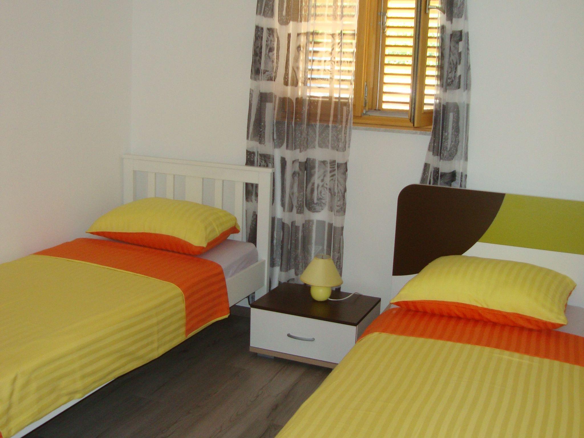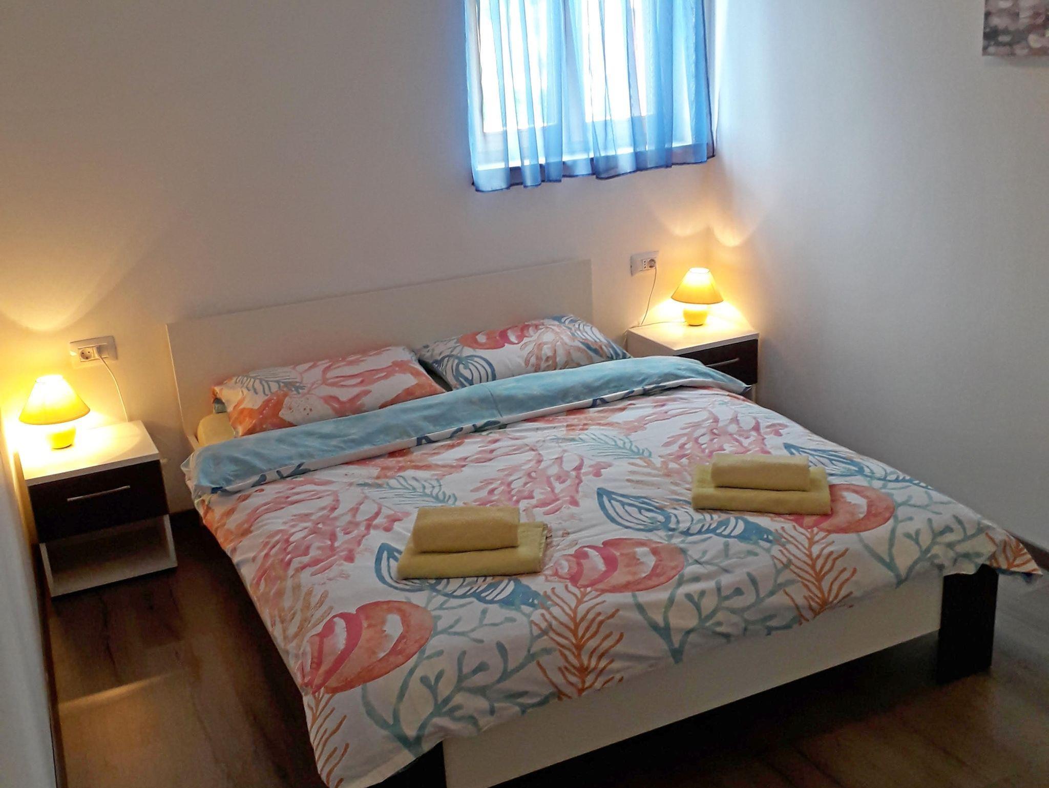 Ferienwohnung bietet Platz für 4 Gäste. Die Betten sind in Schlafzimmern, die es 2 gibt, innerhalb einer Gesamtfläche von 72m2, angeordnet. Die Gäste haben eine eigene Terrasse zur Verfügung, auf der sie in warmen Sommernächten genießen können. Für vollen Genuss und Entspannung gibt es einen privaten Grill für Gäste dieser Unterkunft. IM PREIS INBEGRIFFEN: Kurtaxe, Endreinigung, Klimatisierung, Parkplatz, Internet, Bügeleisen, Bügelbrett, Föhn. VERBINDLICHE ZUSÄTZLICHE KOSTEN: Aufzahlung für Kurzaufenthalte (prozentualer Zuschlag pro Nächtigungsanzahl: 30% - 1, 20% - 2, 10% - 3). Die Verfügbarkeit zusätzlicher Dienstleistungen in Ihrem reservierten Termin und die Preise derselben (falls nicht aufgeführt) müssen im Voraus überprüft werden. Zusätzliche Dienstleistungen die in der Zahlungsaufforderung nicht aufgeführt sind werden direkt beim Vermieter bezahlt, angenommen der Gast nutzt auch diese. Ermäßigung auf den Grundpreis: Gratistag 14=13 (bei einem Aufenthalt von 14 Tagen oder mehr erhalten Sie einen Gratistag für den Aufenthalt bis 31.12.26).