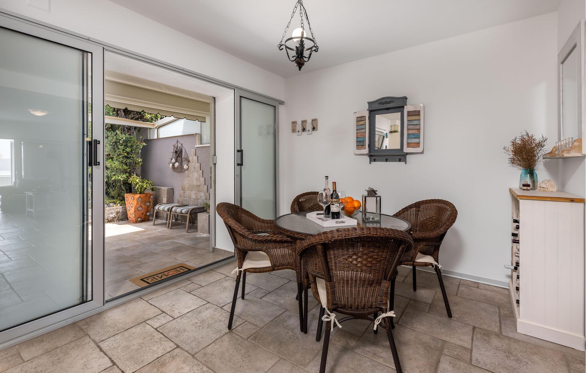 Denne koselige og romslige ferieleiligheten ønsker deg velkommen bare noen få skritt fra stranden. Her kan du trylle frem middelhavsretter med ferske råvarer fra markedet, planlegge eventyrene dine over harmoniske måltider og runde av en lang dag under solen med en koselig kveld foran en film.
