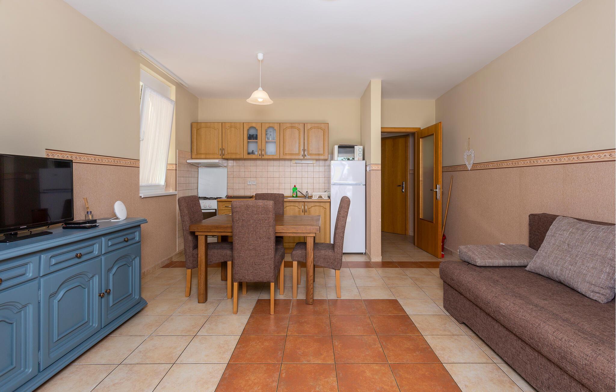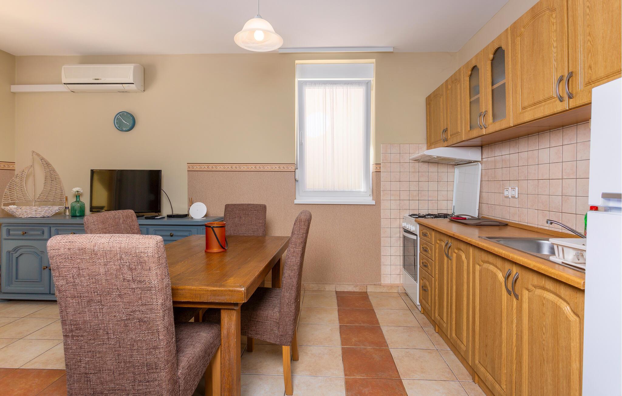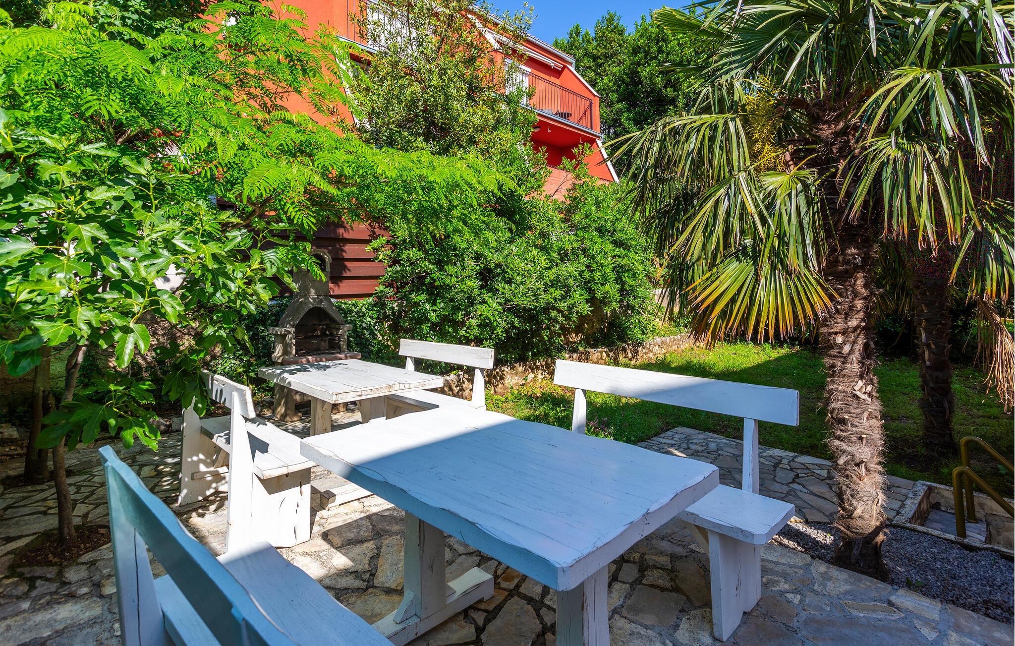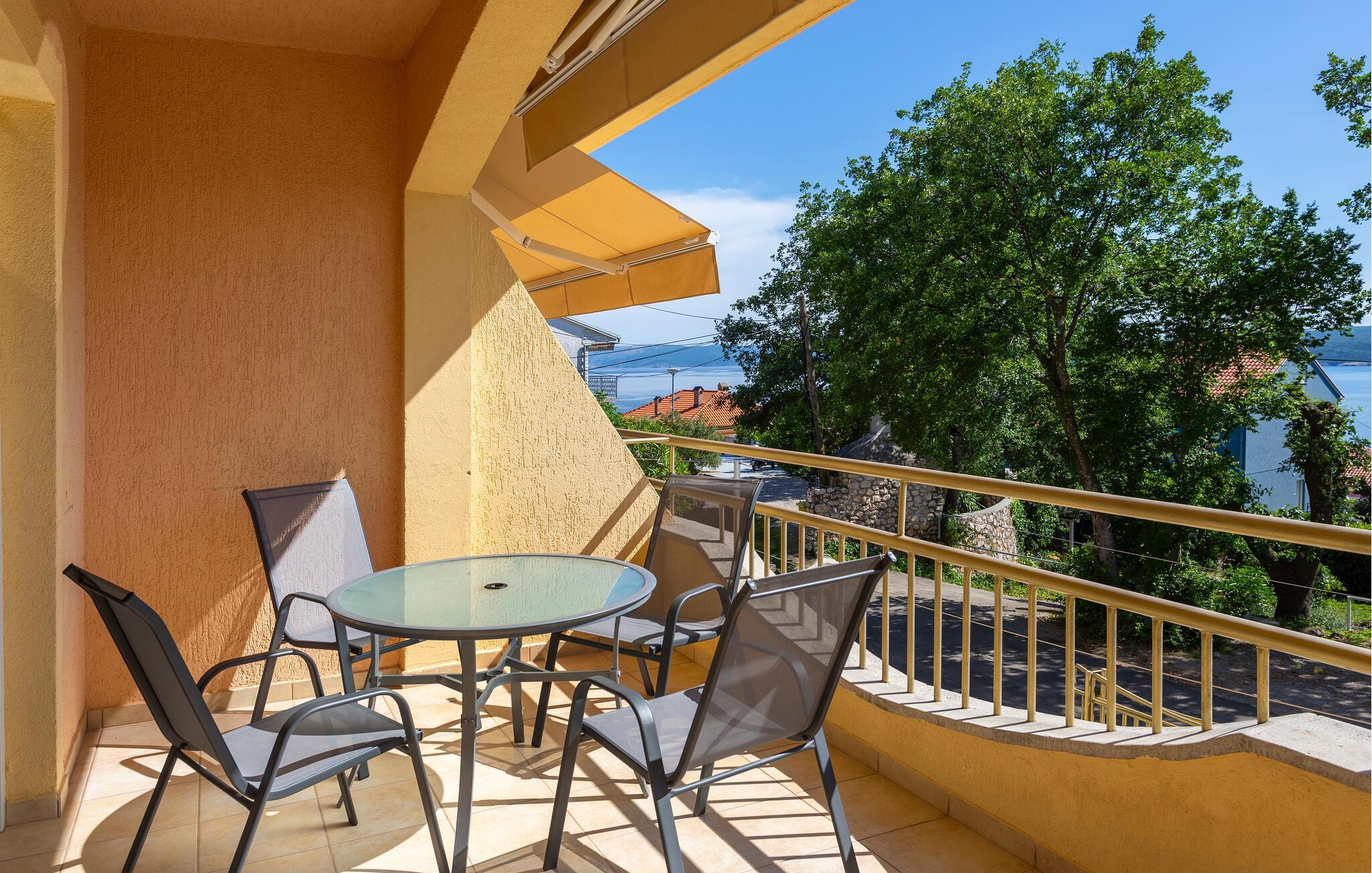 Reis med familien til Kvarnerbukten og opplev en fredelig og avslappende ferie i denne hyggelige ferieleiligheten. Huset har flere leiligheter, noe som gjør det mulig å dele ferien med venner eller storfamilien, avhengig av tilgjengelighet. Her finner du alt du trenger, og du kan nyte frokosten på de koselige balkongene med utsikt over havet.